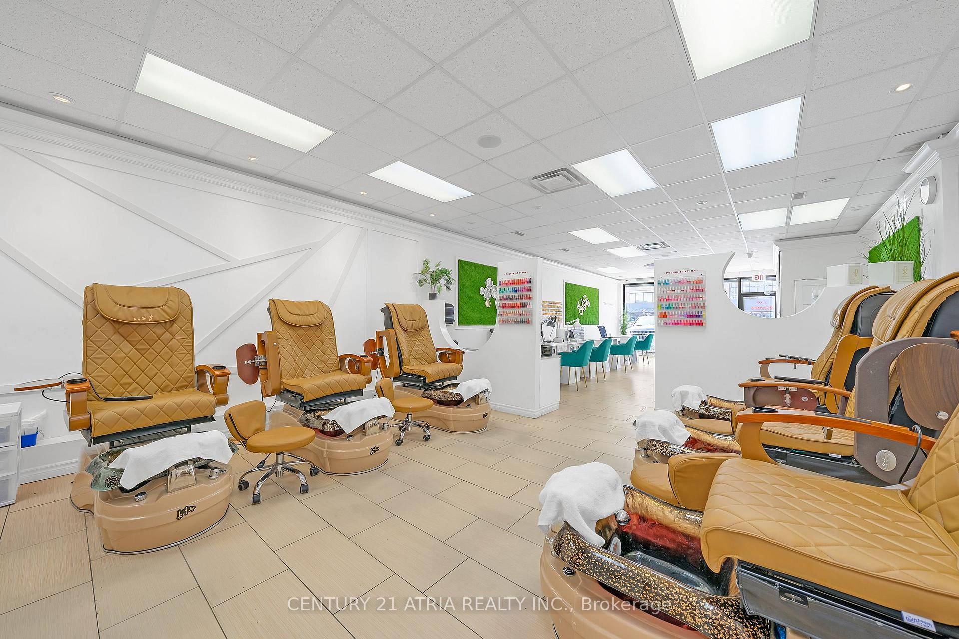This is your chance to own an incredible well-established turnkey nail salon located in a heartof mississauga. This plaza with excellent visibility, constant foot traffic , and plenty ofcustomer parking both front and back of the building. This salon is fully equipped and ready tooperate, compete with quality furniture, tools and inventory, allowing for a seamlesstransition to new ownership. The salon featuring 2 treatment rooms and a generously sized openconcept with 6 manicure and 6 pedicure station, complemented by a welcoming reception area. Thecurrent owner is retiring-so the hard work has already been done for you. Start from day one. All that's missing is your vision to take this salon to the next level. With low monthly rent,and an established reputation, this is a rare opportunity to step into a thriving business withendless growth potential.