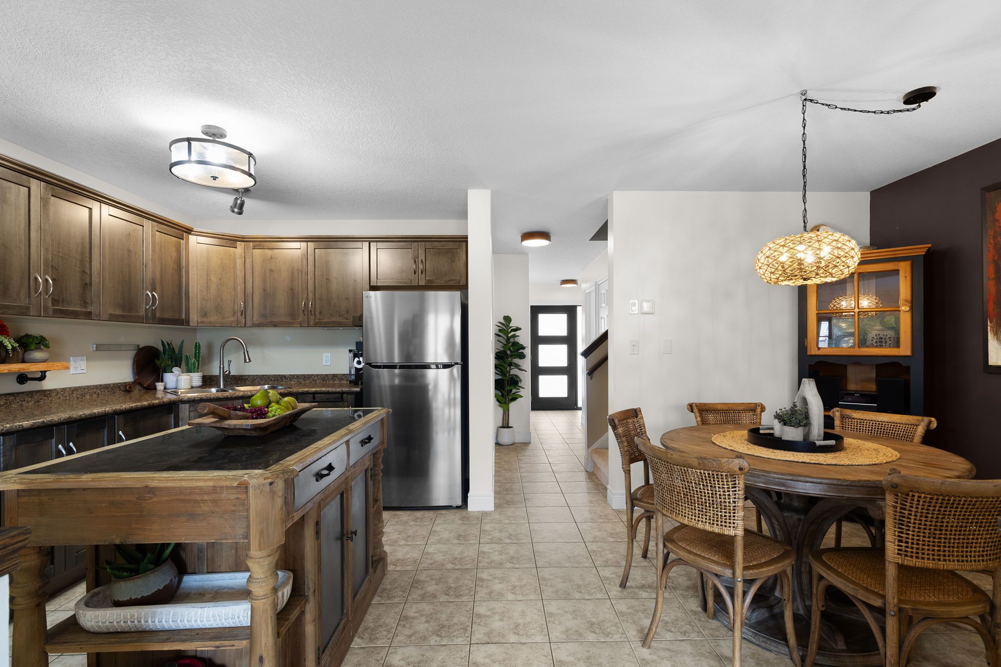 Rare townhome with walkout basement in sought-after lackner woods! This spacious 3-bedroom, 4-bathroom home offers the perfect blend of comfort, functionality, and family-friendly living in one of kitchener's most desirable communities. Step inside to a bright, open-concept main floor designed for everyday living and entertaining, featuring pot lights, a generous living and dining area, and a walkout to your private deck, ideal for relaxing evenings or hosting family and friends. Upstairs, the primary suite includes a walk-in closet and a private 3-piece ensuite, while two additional well-sized bedrooms and a full 4-piece bathroom provide plenty of space for a growing family. The walkout basement with a 2-piece bathroom offers incredible flexibility to create the perfect rec room, home office, playroom, or even a potential in-law suite tailored to your needs. Additional highlights include convenient main floor laundry with direct garage access, adding ease to your daily routine. Located close to top-rated schools, scenic parks, walking trails, public transit, and just minutes from chicopee ski & summer resort, as well as major highways for easy commuting. This home delivers both tranquility and convenience. A rare opportunity in a quiet, established neighbourhood. Book your private showing today!