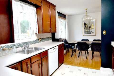 • Bright living spaces with a well-preserved kitchen and cherry wood cabinetry.