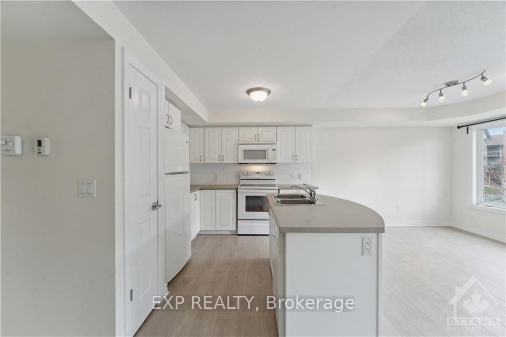 Bright and spacious 2-bedroom condo in the heart of barrhaven, conveniently located near vimy memorial bridge, riverside south, public transit, and everyday essentials like grocery stores, tim hortons, and restaurants just across the street. This carpet-free, open-concept unit features large windows that fill the space with natural light, a private balcony, and modern luxury vinyl flooring throughout. The bright kitchen includes an island with extra seating and flows seamlessly into the dining and living area, perfect for comfortable living and entertaining. The unit offers two spacious bedrooms, in-suite laundry, an oversized utility room, two linen closets, and ample storage to keep everything organized. Accessibility is made easy with a ramp and stairlift leading directly to the unit. The parking spot is conveniently located right in front, with visitor parking also available. Rent includes exterior maintenance, snow removal, and lawn care. Tenants are responsible for utilities, hot water tank rental, and tenant insurance. No smoking and no large pets. A rental application, equifax credit check, proof of income, recent pay stubs and photo id are required. Available march 1.