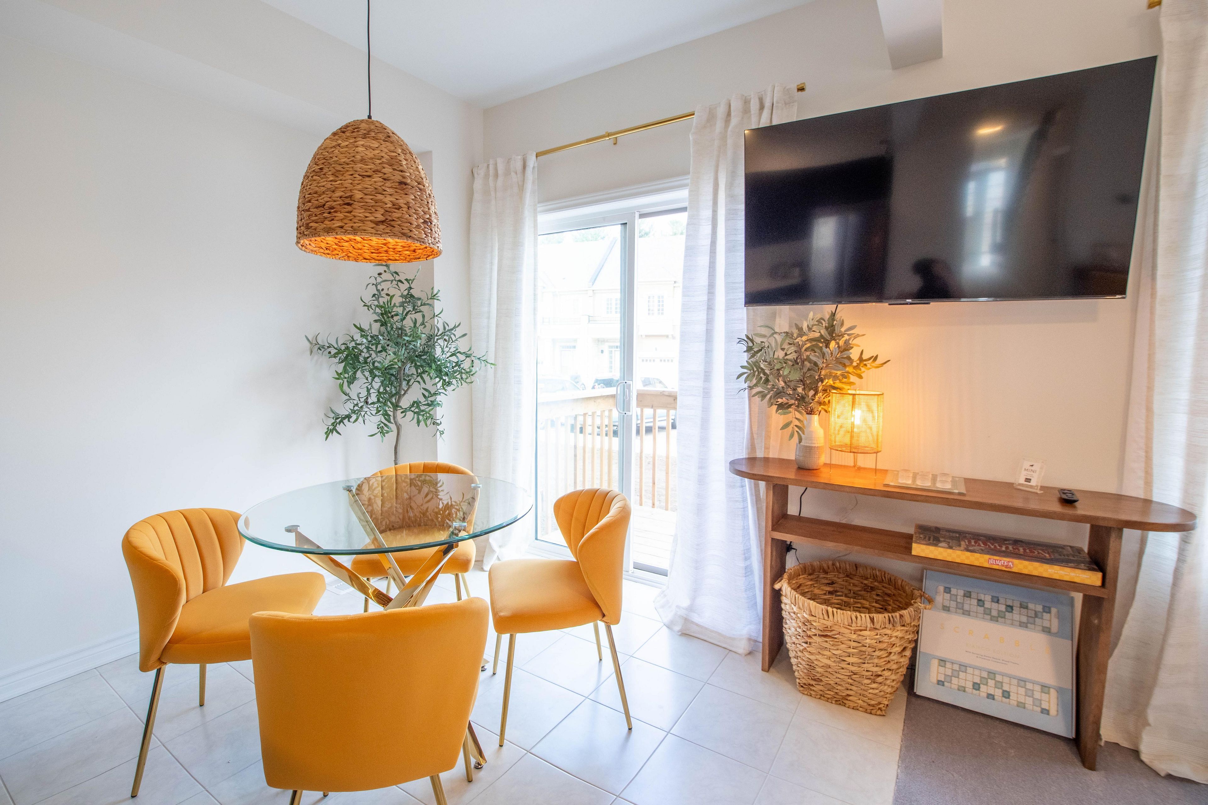 Welcome to an executive-level end-unit townhome in the heart of ancaster's prestigious treescapes community. This beautifully designed 3-bedroom, 3-bathroom residence offers over1,600 sq ft of luxurious living space, thoughtfully furnished with high-quality, designer pieces selected for comfort, elegance, and modern living. Offering privacy with its coveted end-unit position, this home is the perfect retreat for corporate professionals, relocating executives, or those seeking a turnkey luxury residence. The main level features an upgraded gourmet kitchen with premium stainless steel appliances, quartz countertops, and a stylish dining area ideal for hosting guests or enjoying meals at home. A bright, open-concept living room flows seamlessly,the primary bedroom includes a spa-like 4-piece ensuite and large windows that invite natural light throughout the day. Two additional spacious bedrooms share a beautifully appointed 4-piece bathroom, perfect for guests or family. This home is being offered fully furnished with a bit higher price or unfurnished with the listed price, sophisticated decor and top-tier furniture curated to suit executive lifestyles-simply move in and enjoy. Located minutes from premium amenities, trails, shopping, restaurants, highway access, and top private and public schools, this property combines convenience with upscale comfort. Ideal for aaa tenants,corporate leases, and professionals seeking a luxury rental experience. Application to include full credit report, employment verification, and proof of income.