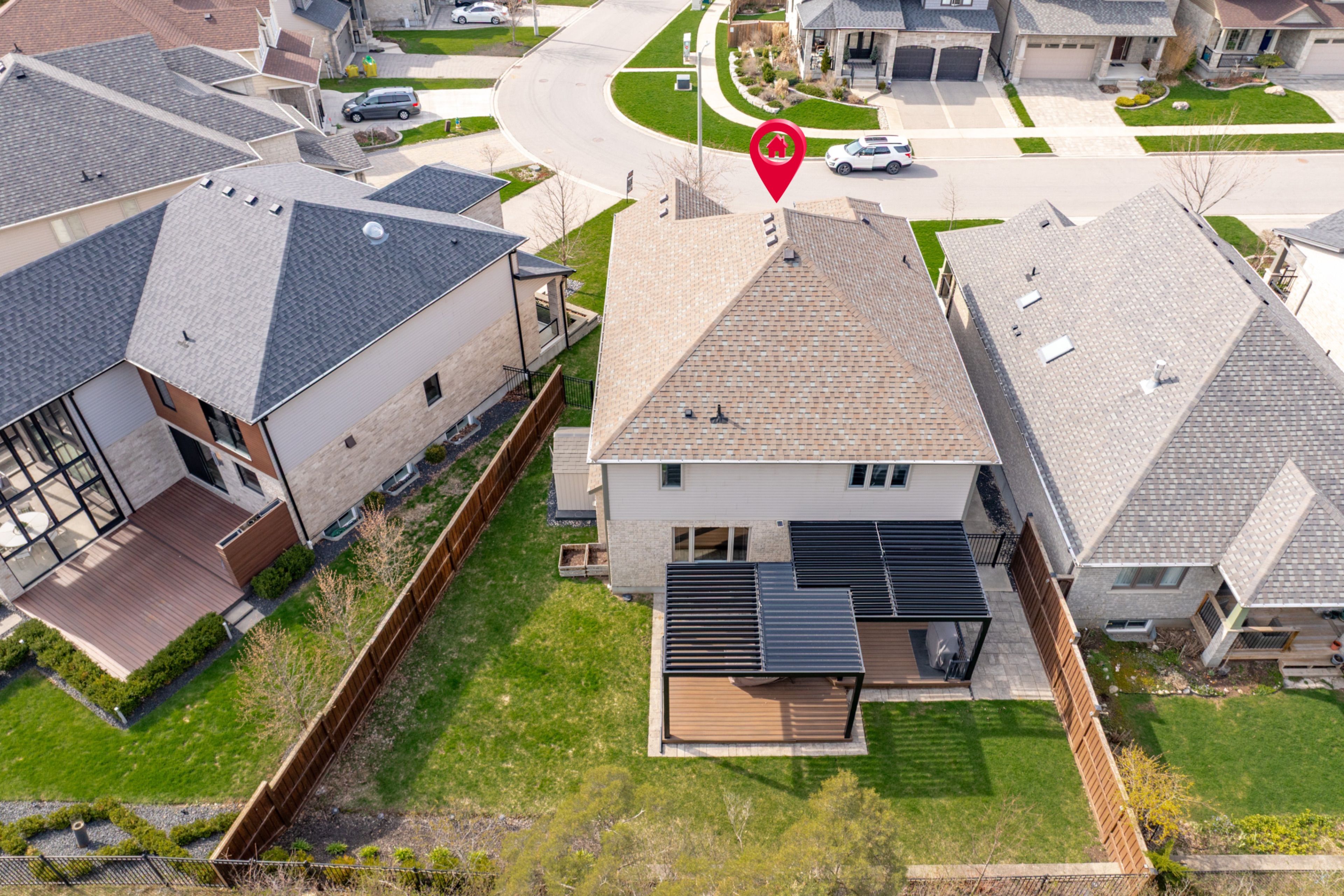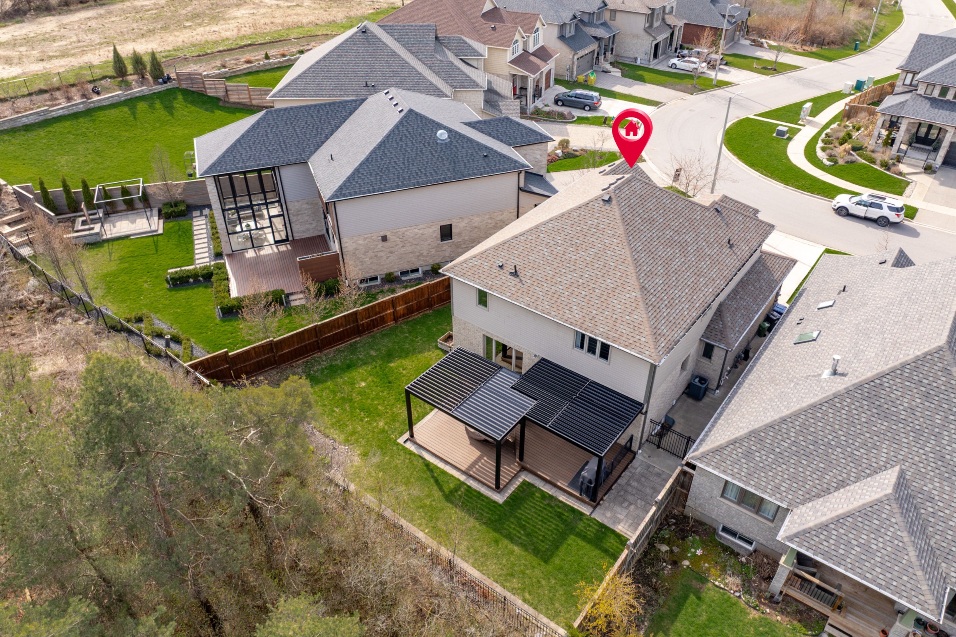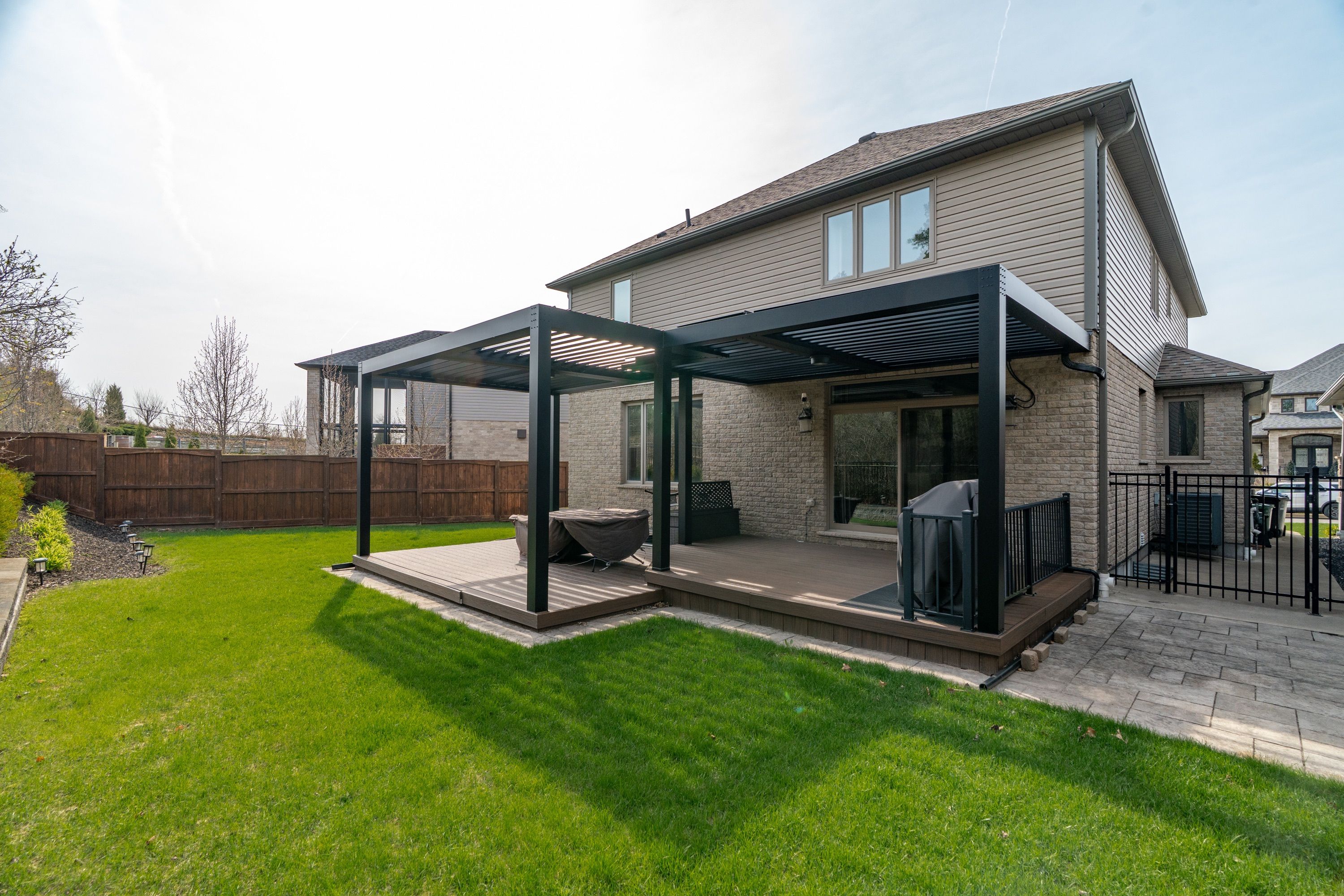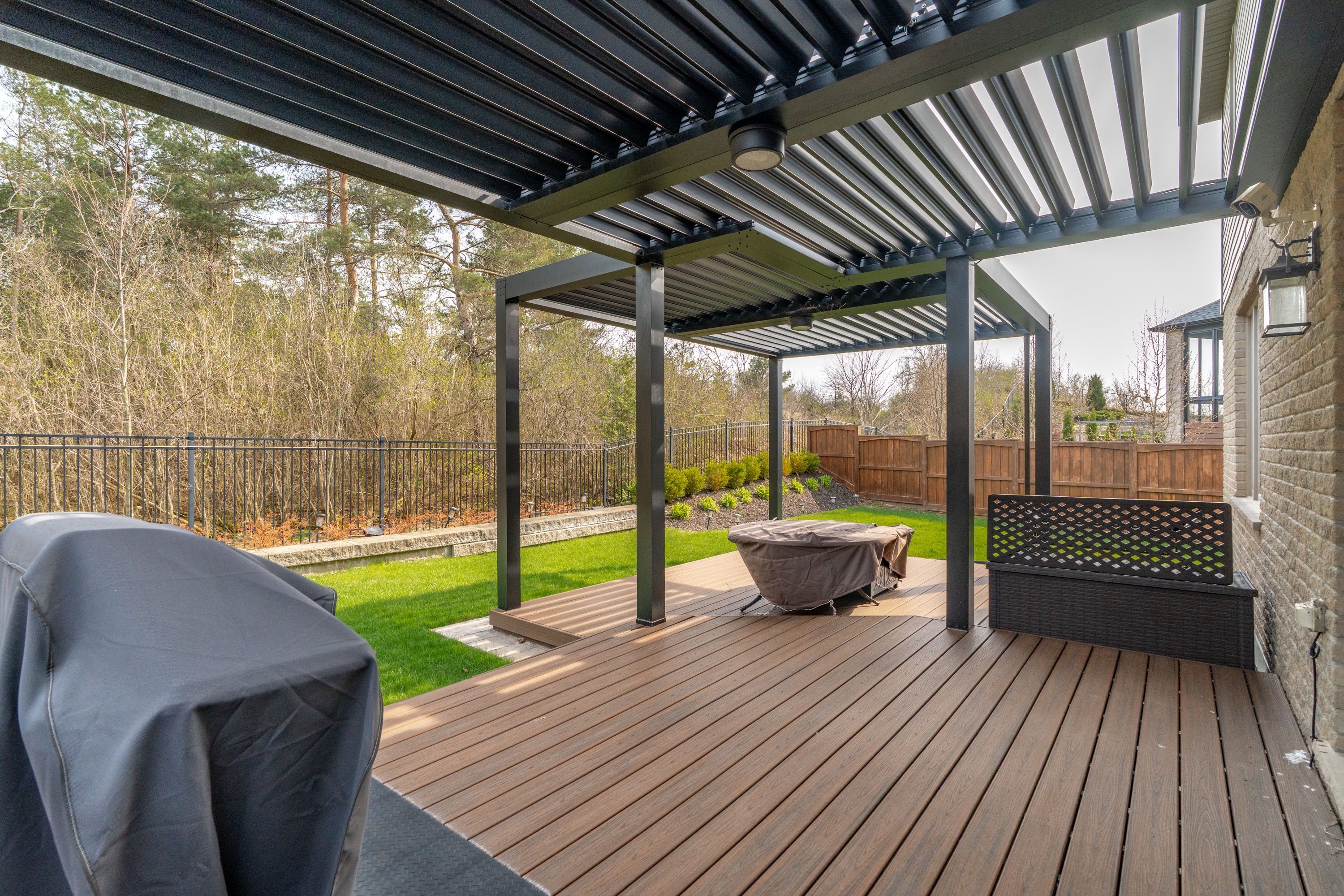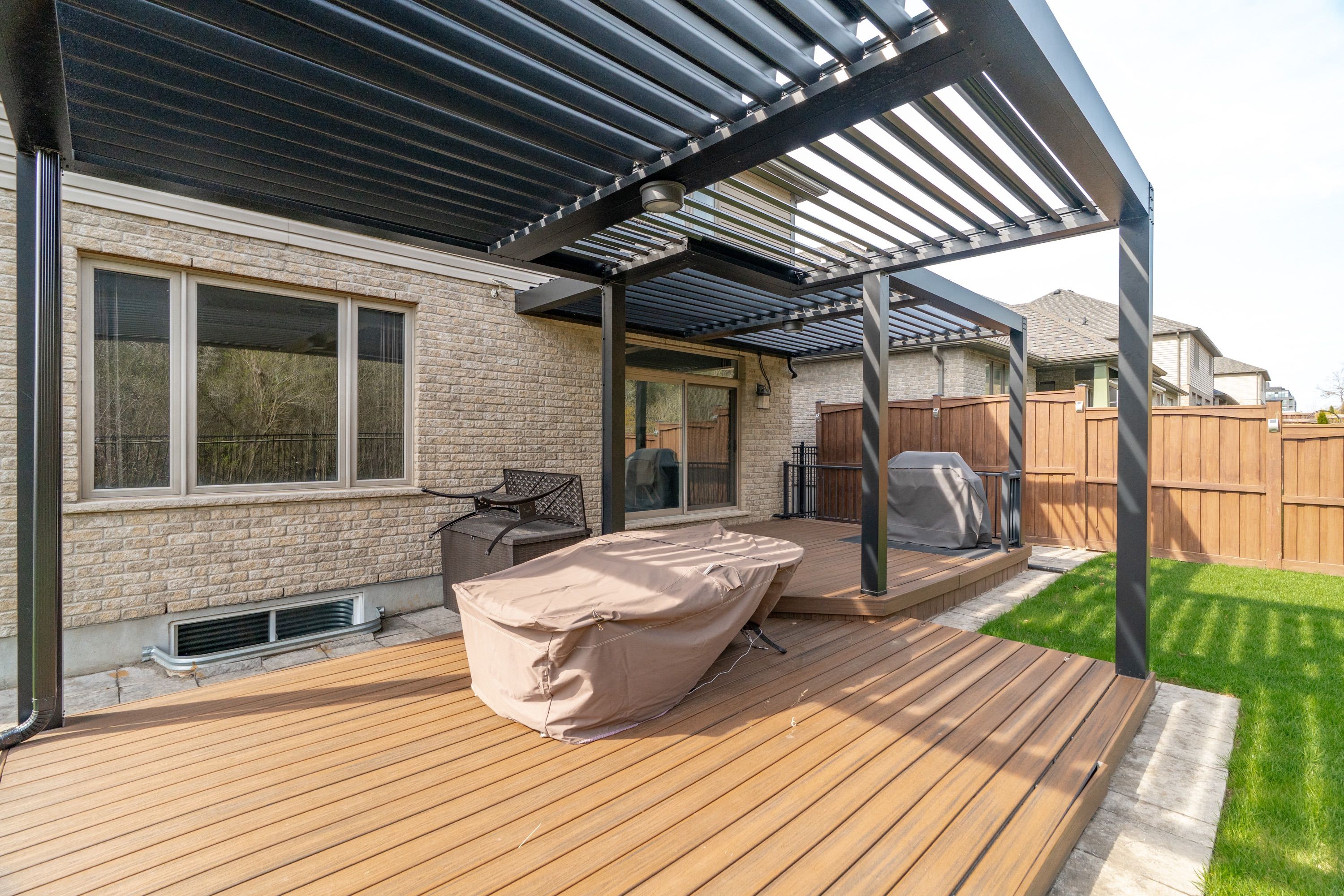 • Private pie-shaped yard featuring double decks and a motorized gazebo.