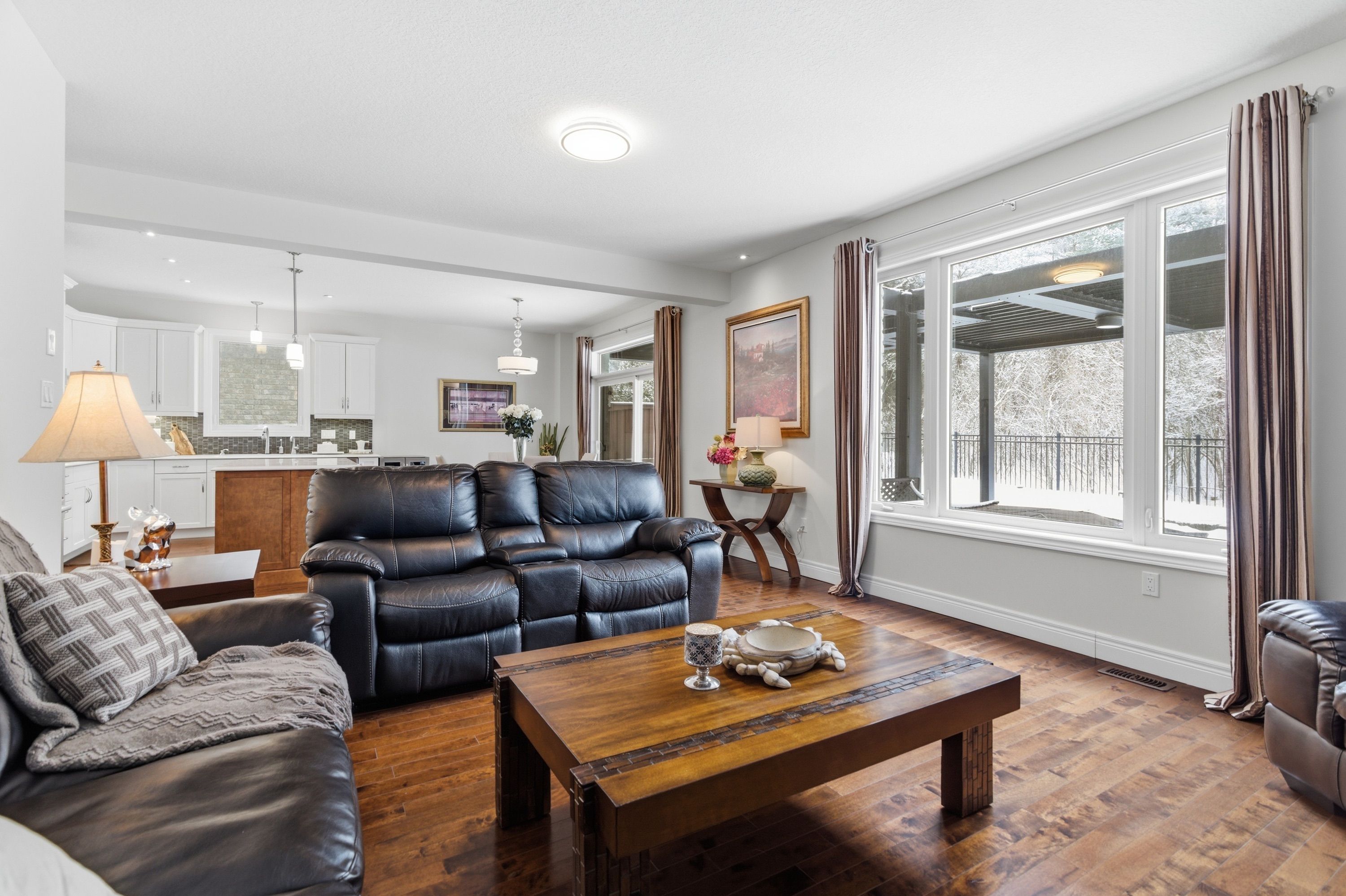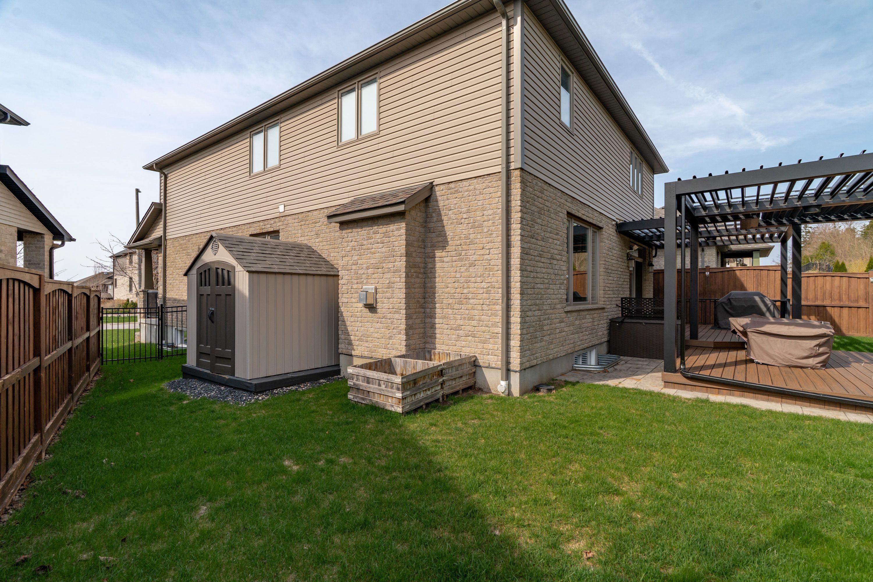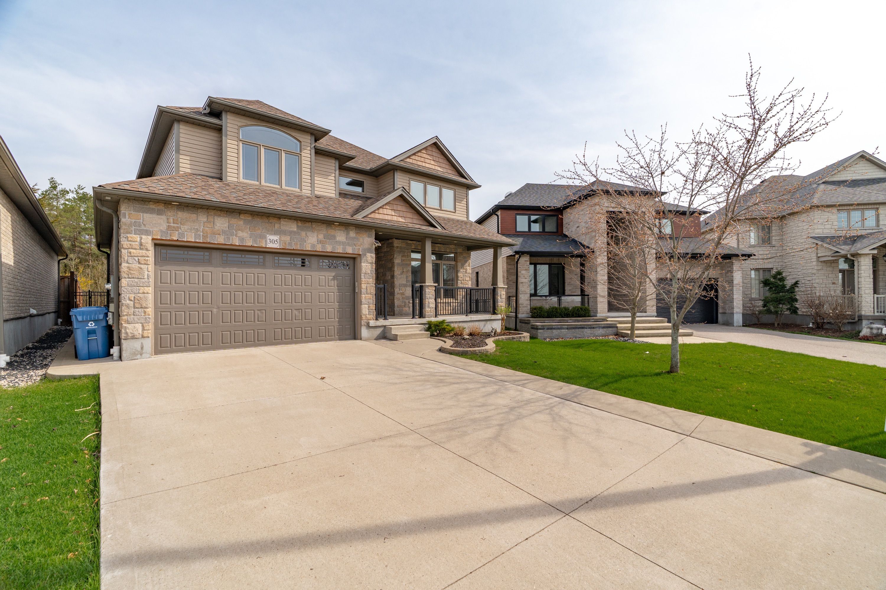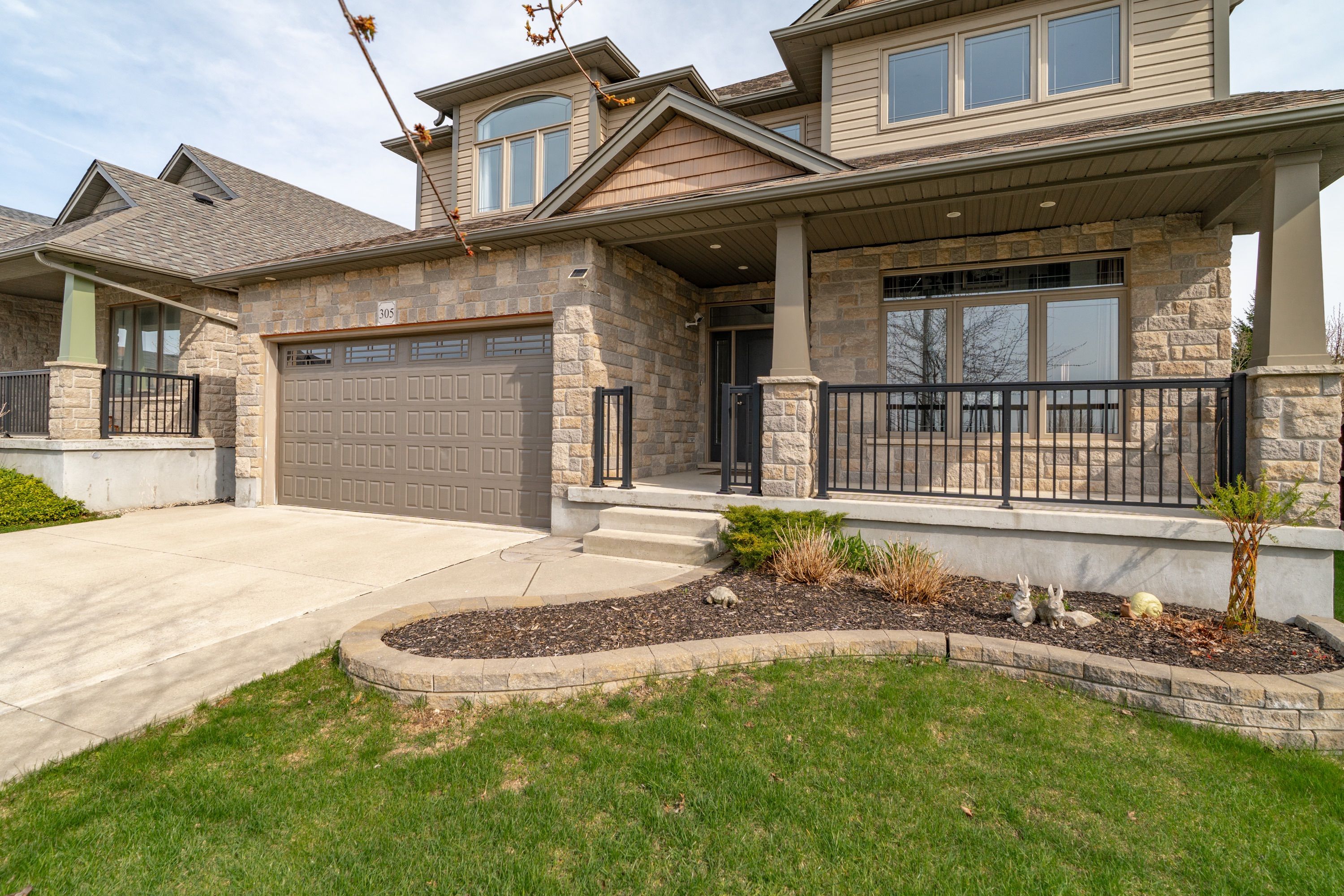 Welcome to 305 gosling gardens, a beautifully crafted home offering over 2,600 sq ft of living space, built by the reputable thomasfield homes. This residence showcases timeless design, thoughtful upgrades, and meticulous care throughout. Curb appeal is immediately evident with a double-car garage, a concrete-finished driveway accommodating up to four vehicles, a wide front porch, and a beautifully landscaped front garden. Step inside to a striking open-to-above foyer that fills the home with natural light and creates an impressive sense of space. The main level features a warm and inviting family room with a built-in fireplace. The kitchen is both elegant and highly functional, featuring a cooktop stove, premium bosch appliances, and a large centre island. The bright breakfast area overlooks the backyard, making it ideal for family meals and entertaining. A formal dining room, living room, laundry room, and powder room complete this well-designed main floor. Upstairs, a rare open-to-below home office overlooks the foyer, offering a bright and inspiring work-from-home space. The primary bedroom retreat boasts a spacious walk-in closet and a well-appointed ensuite with double sinks. Two additional generously sized bedrooms share a jack-and-jill bathroom, creating an ideal layout for families. Step outside to enjoy a rare pie-shaped lot fully fenced yard, highlighted by double decks with a professionally built, remote-controlled motorized gazebo, nearly $4k investment and offering adjustable shade for comfortable, all-season outdoor enjoyment. Ideally located in guelph's sought-after south end, this home is close to everyday amenities and future growth, including the upcoming south end community centre and bishop macdonell catholic secondary school, with quick access to highway 401 for commuters. A true hidden gem combining quality construction, elegant design, and an exceptional location-305 gosling gardens is a home you'll be proud to call your own.