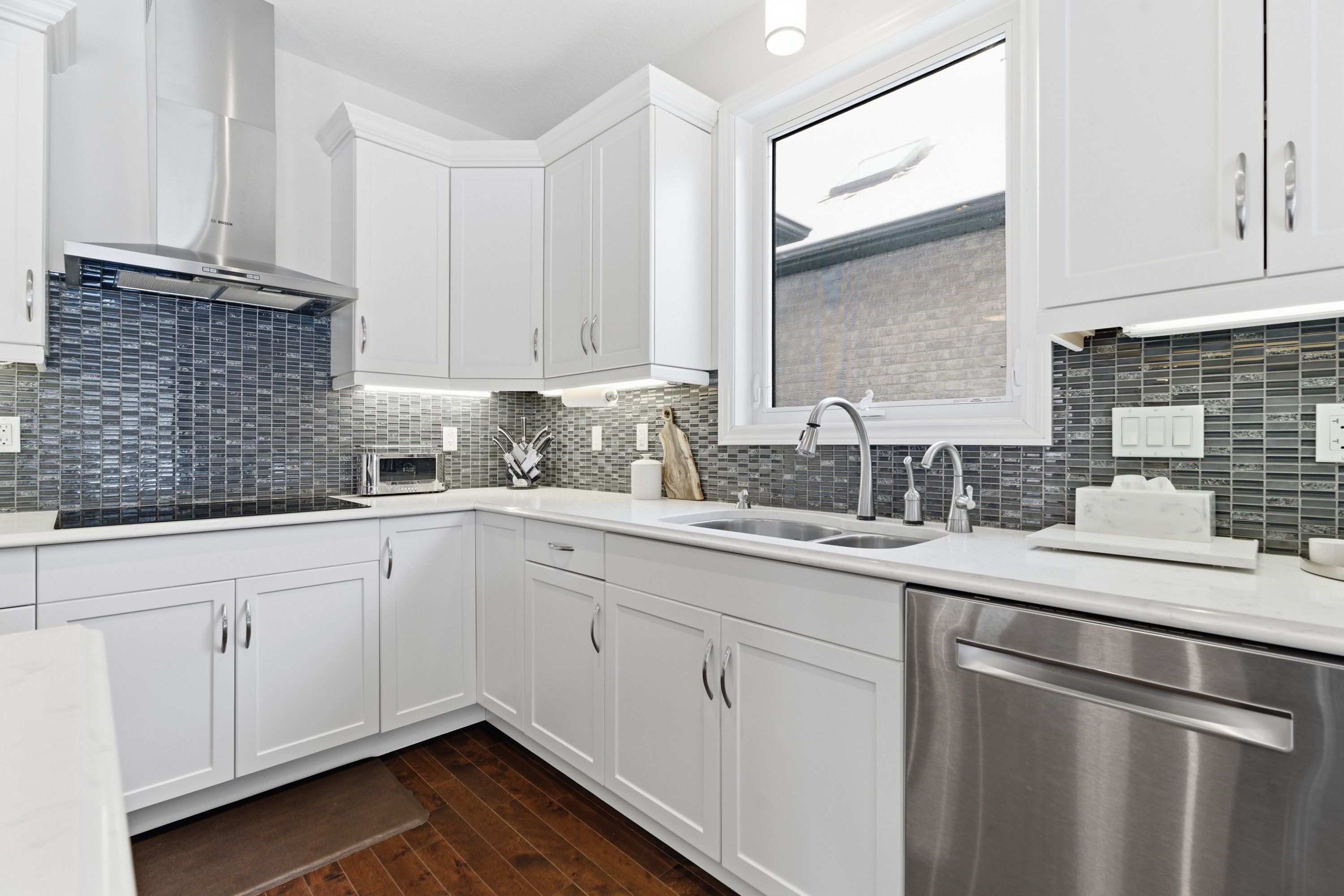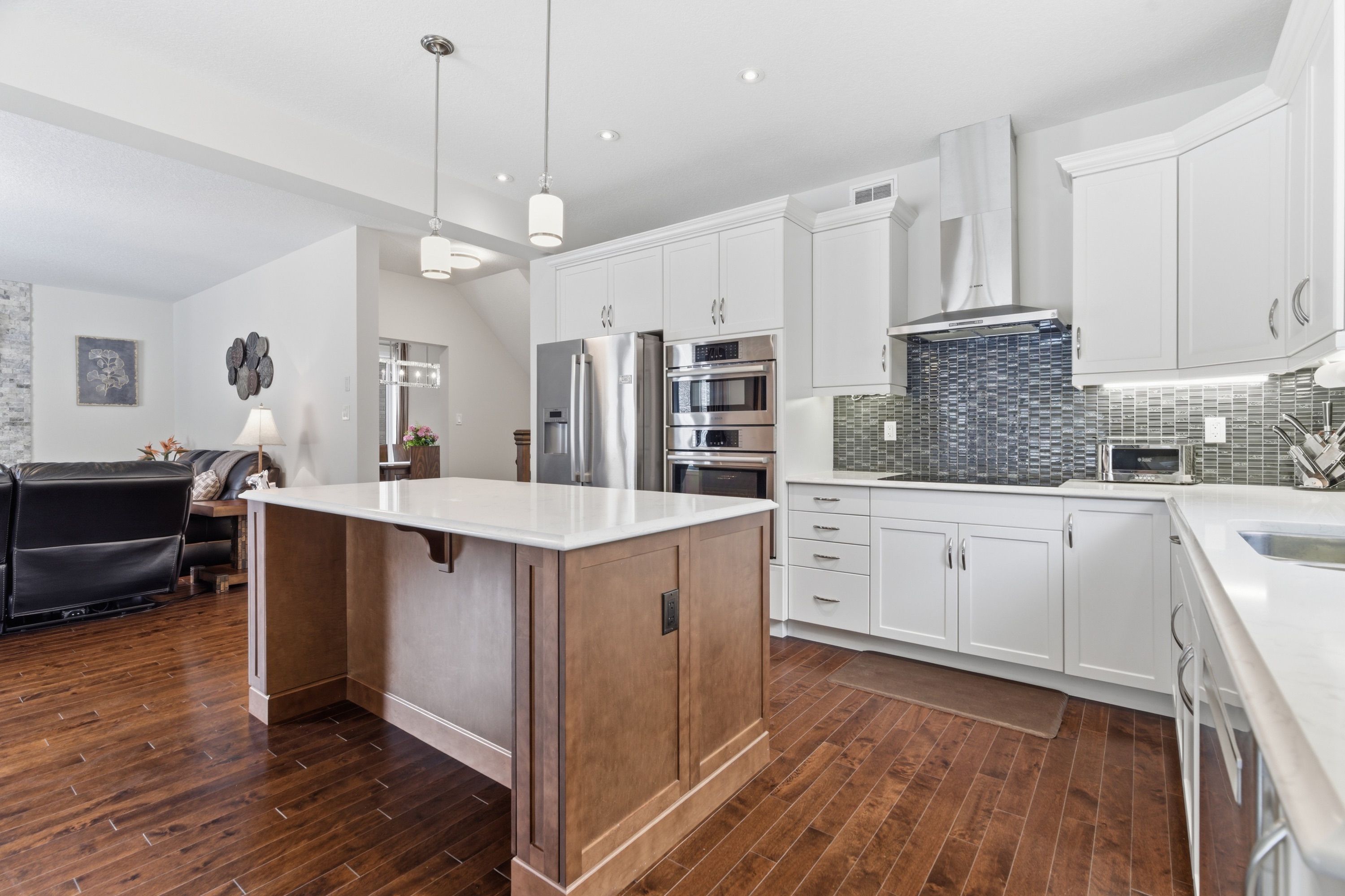 • Bright kitchen with premium Bosch appliances and large center island.