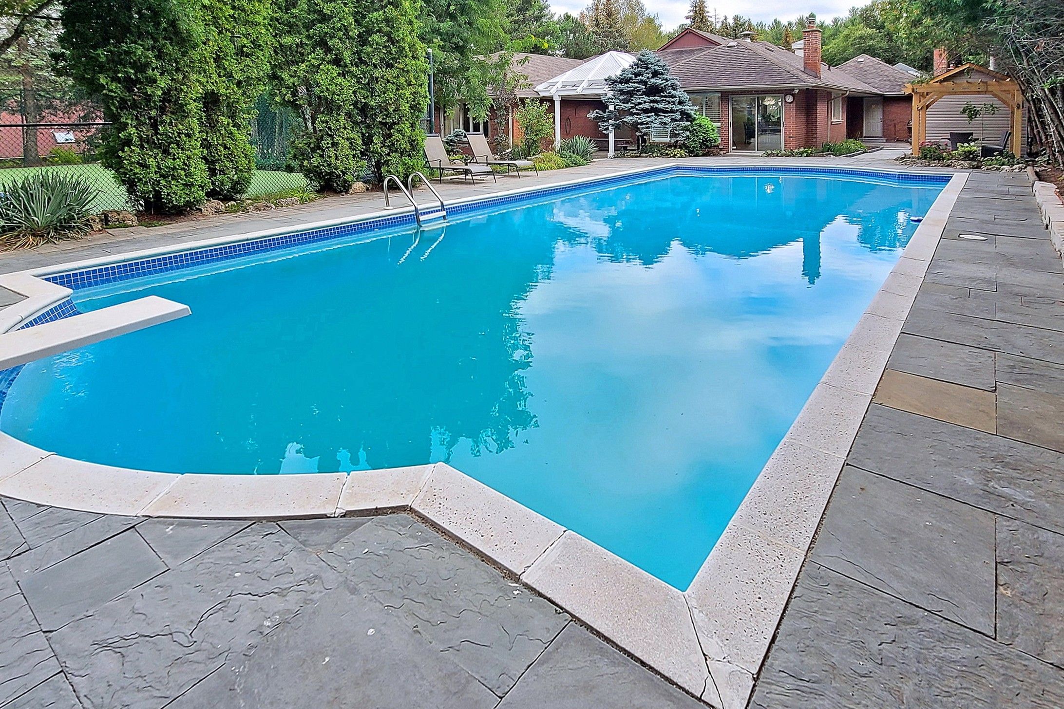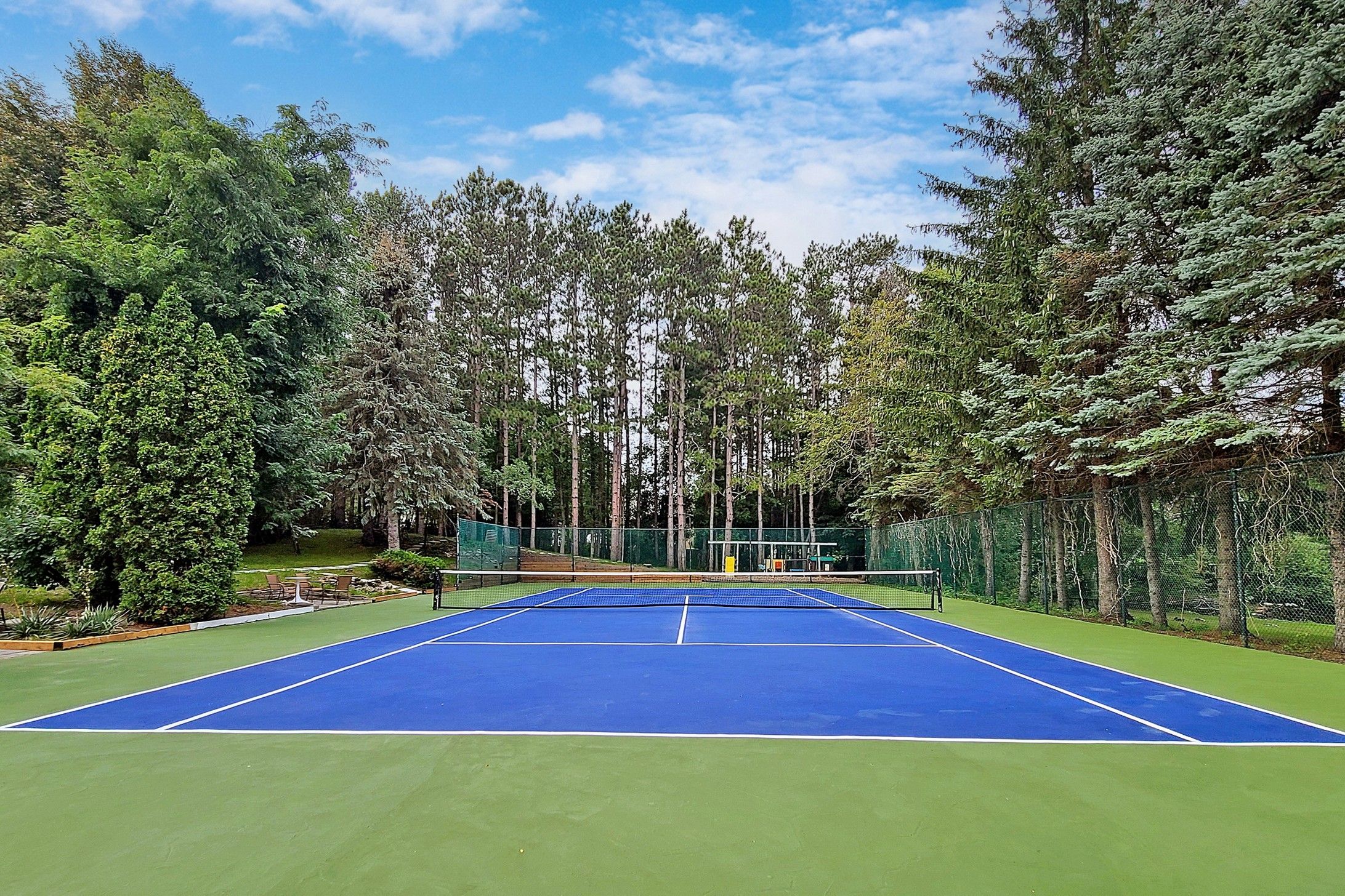 • Enjoy a private cabana, inground pool, and resurfaced tennis court.