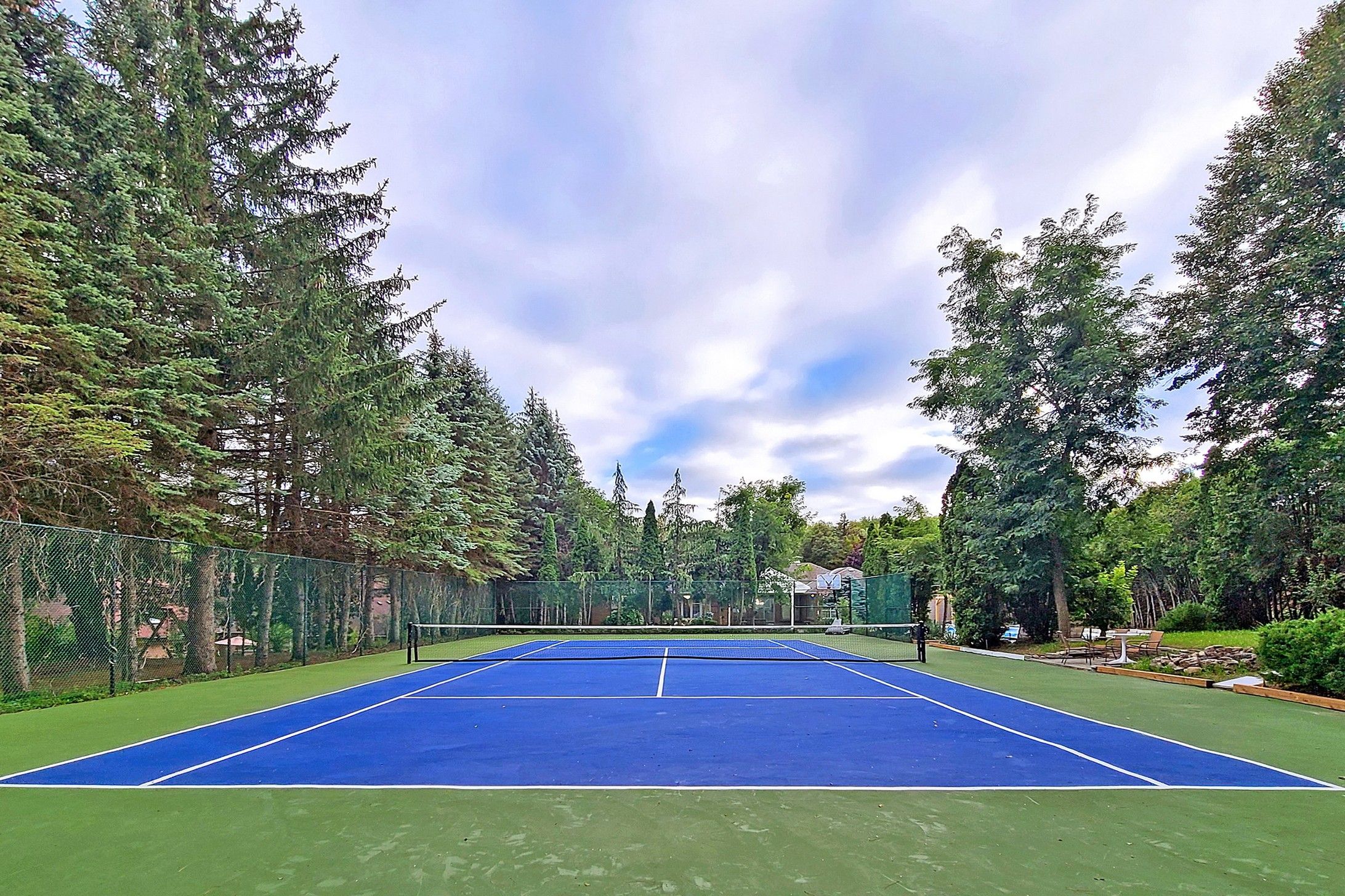 Sophisticated living awaits in this prestigious woodland acres residence, offering approx. 10,000 sq. Ft. Of living space updated luxury. Features include marble, limestone, and hardwood floors, 4 skylights, a media room, and an oversized recreation room with a dance floor, wet bar, hot tub room, and sauna. The resort-style grounds showcase two ponds, a cabana with a 3-pc bath, an inground pool, multiple seating areas, and a resurfaced tennis court. A new second kitchen and 2021 renovations complete this exceptional private oasis.