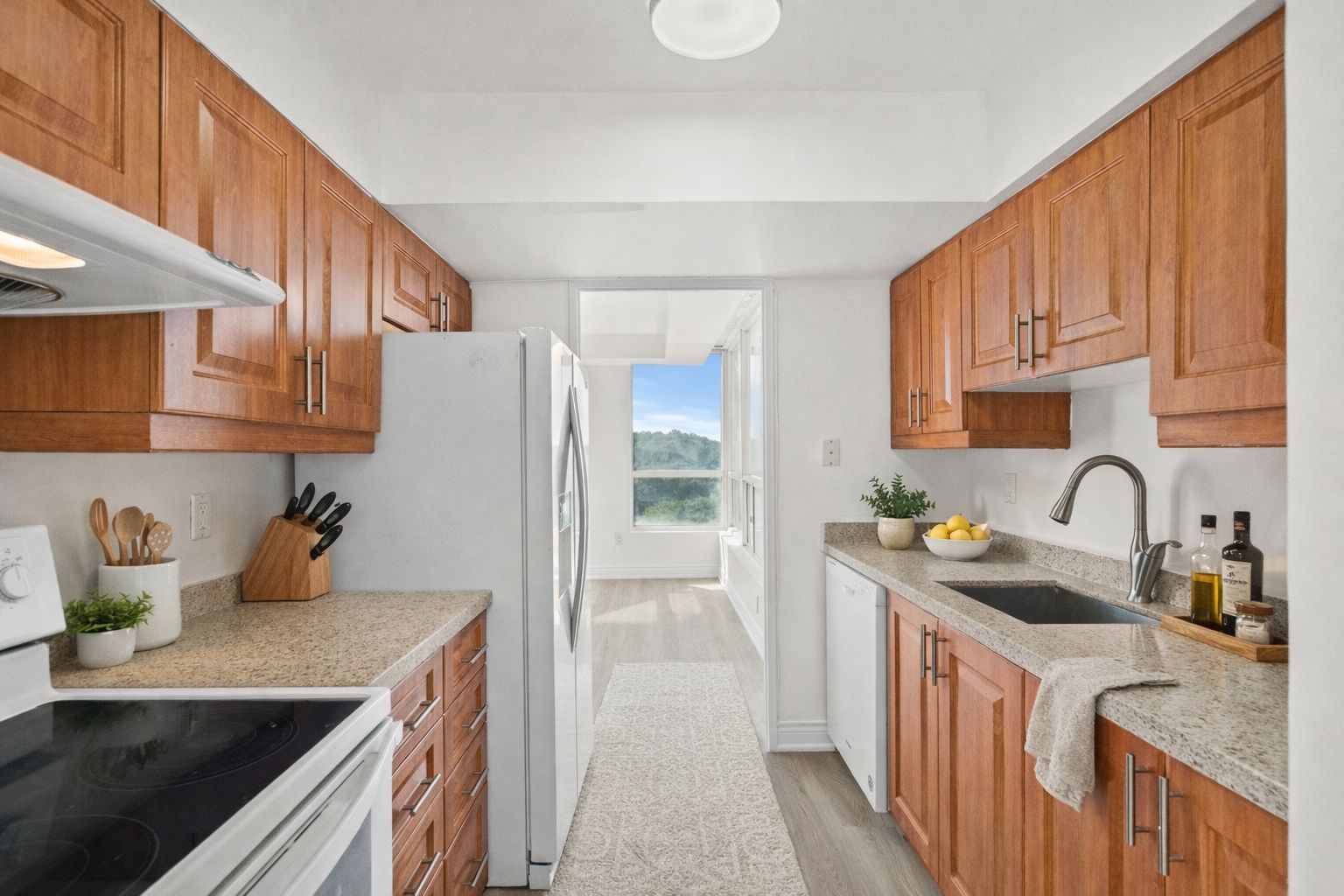 Subtype Condo ApartmentIndoor Features Carpet Free, EnsuiteAmenities Hospital, Park, Public Transit, Ravine, SchoolViews Trees/WoodsBuilding Amenities Bike Storage, Exercise Room, Guest Suites, Indoor Pool, Party Room/Meeting Room, Tennis CourtBasement NoneHeating / Cooling Forced AirHeating Fuel Gas