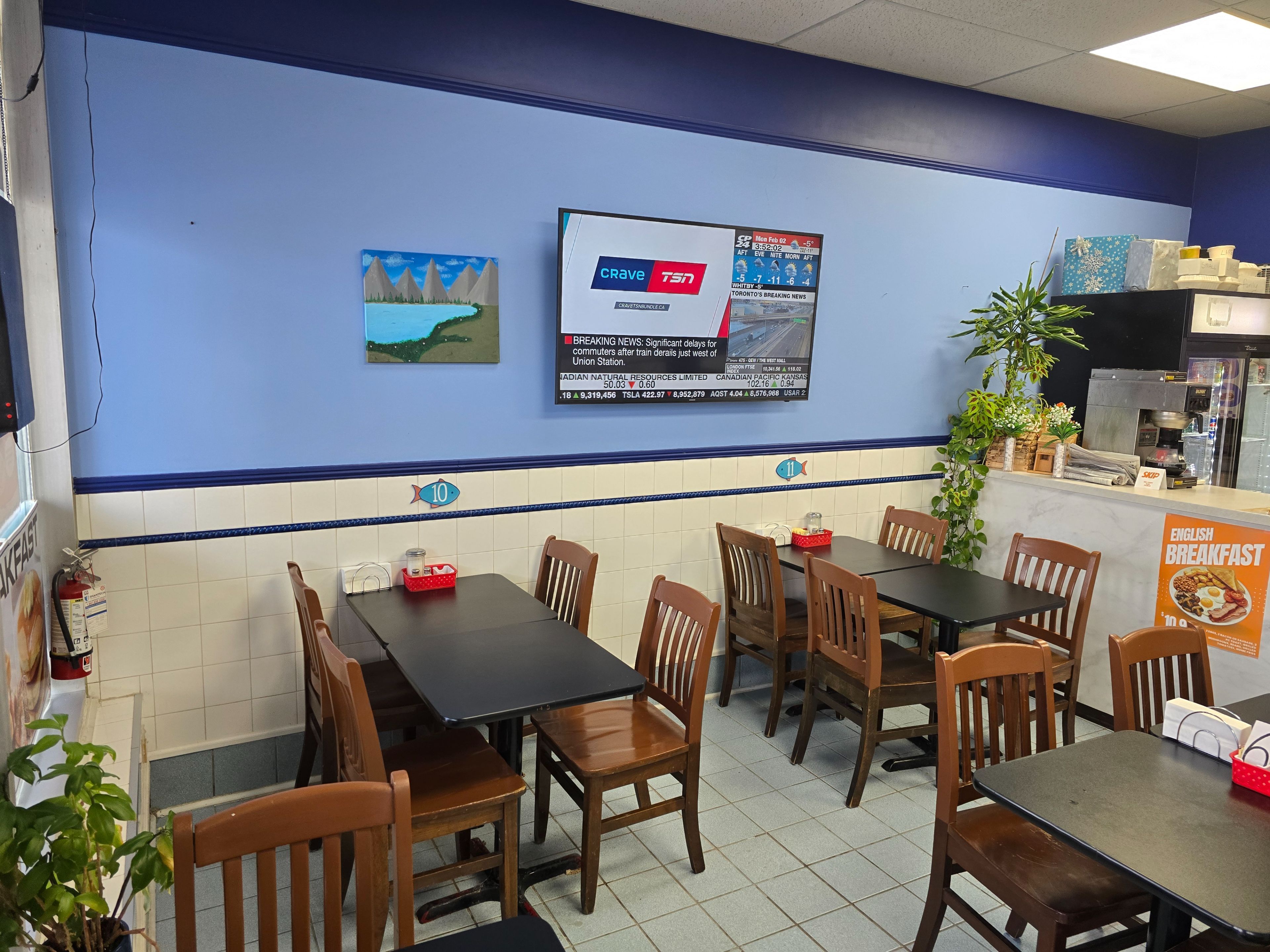 Profitable, fully turnkey all-day breakfast restaurant located in the heart of whitby town square. The restaurant is situated in a very busy plaza with strong daily foot and vehicle traffic, surrounded by well-known anchors such as no frills, td bank, shoppers drug mart, tim hortons, subway, town of whitby offices, and more than 48 other retailers. It's an easy-to-run operation, ideal for an owner-operator or first-time buyer, with everything in place to continue smoothly. The seller is willing to provide training to ensure a seamless handover and a comfortable transition for the new owner. 1,100 sq ft,50 seats,12-ft exhaust hood rent $4,700 (including tmi, hst& water)