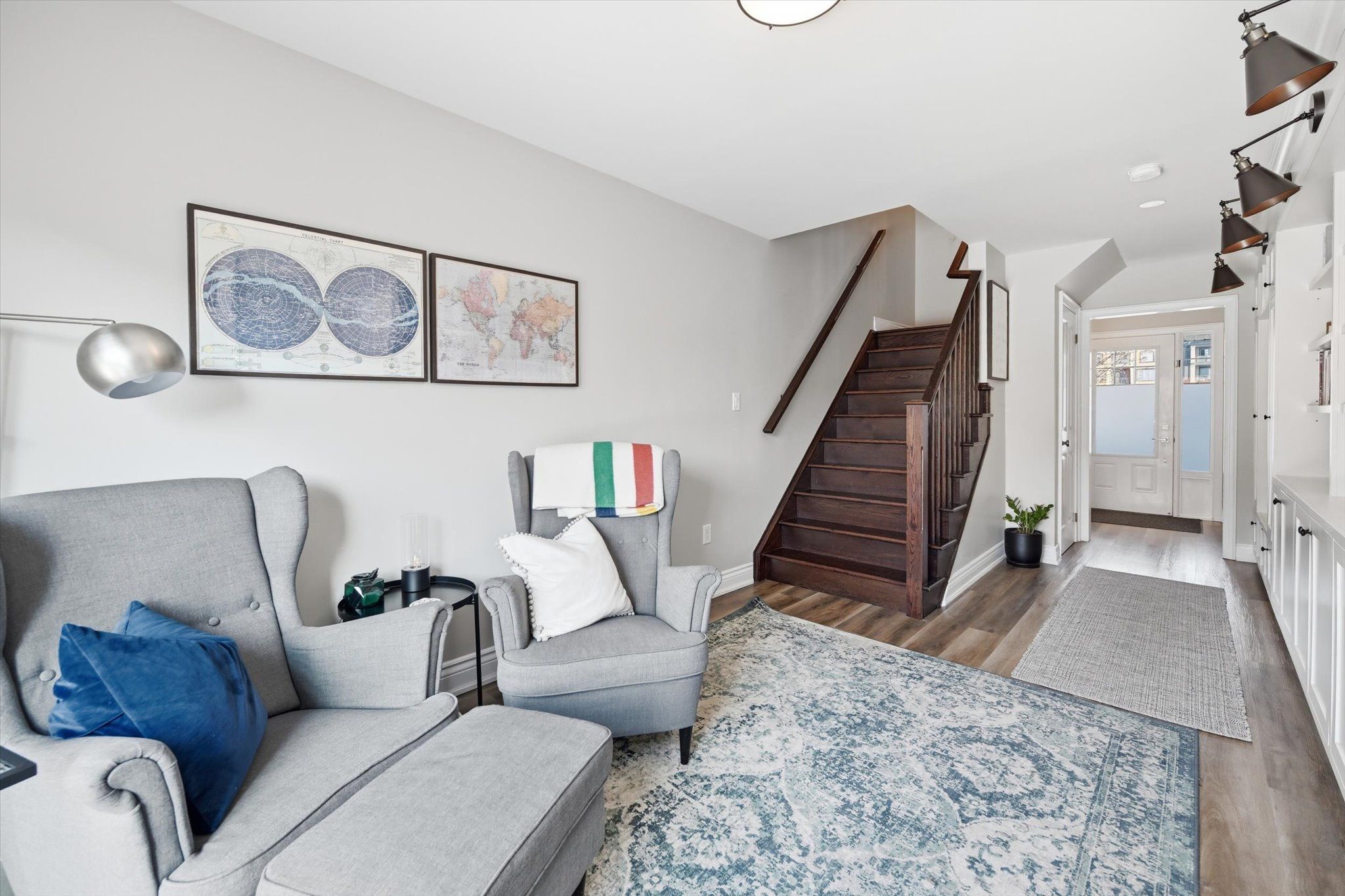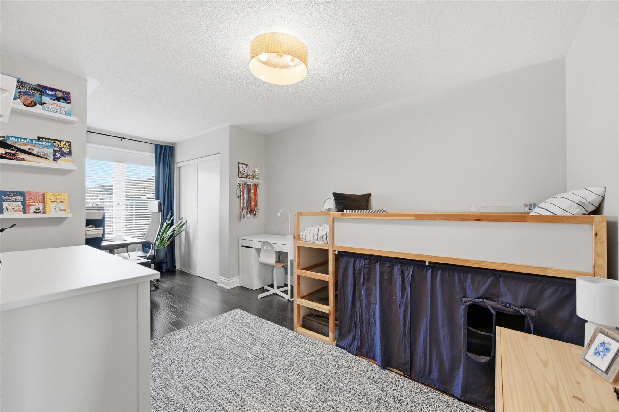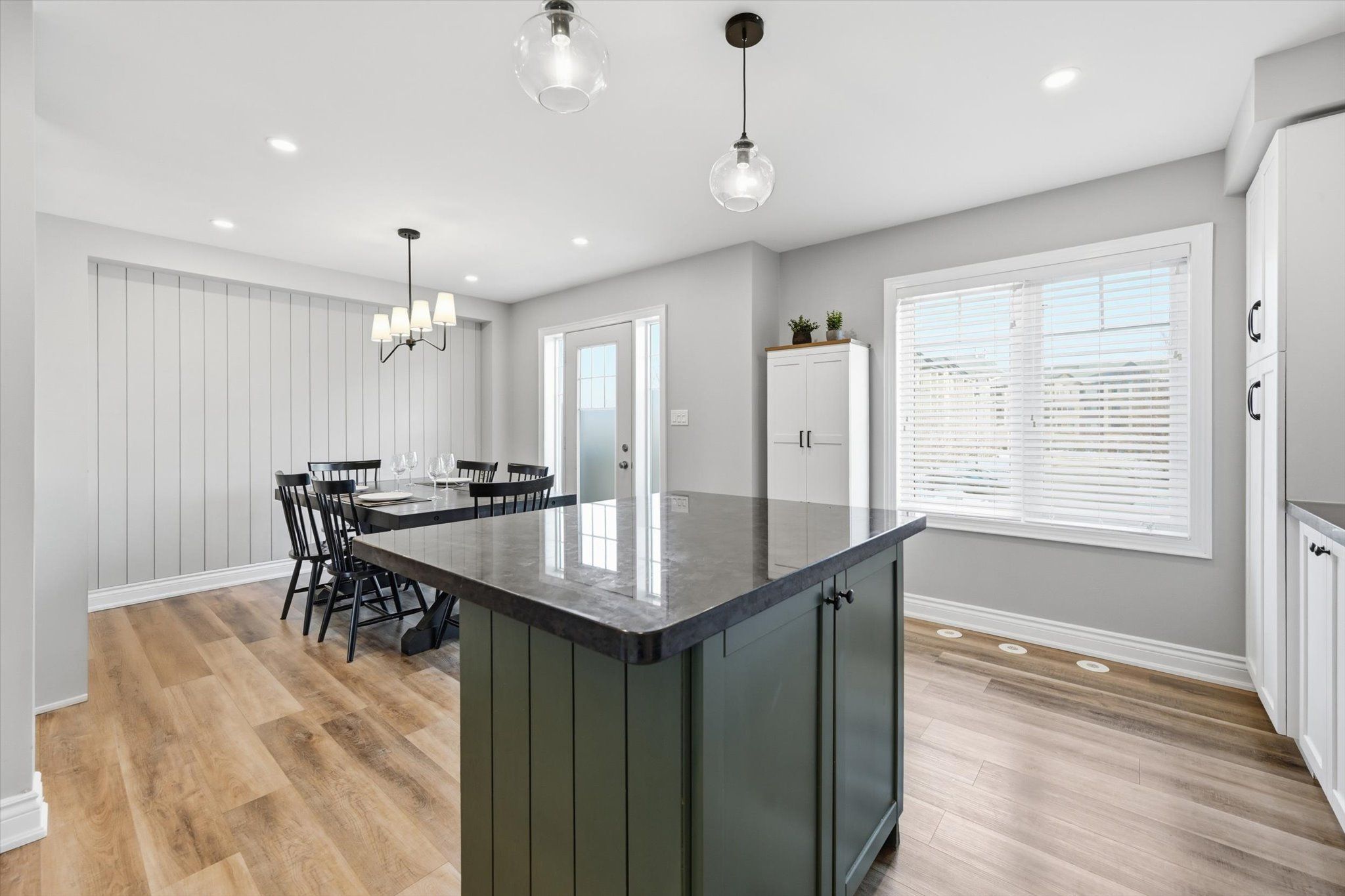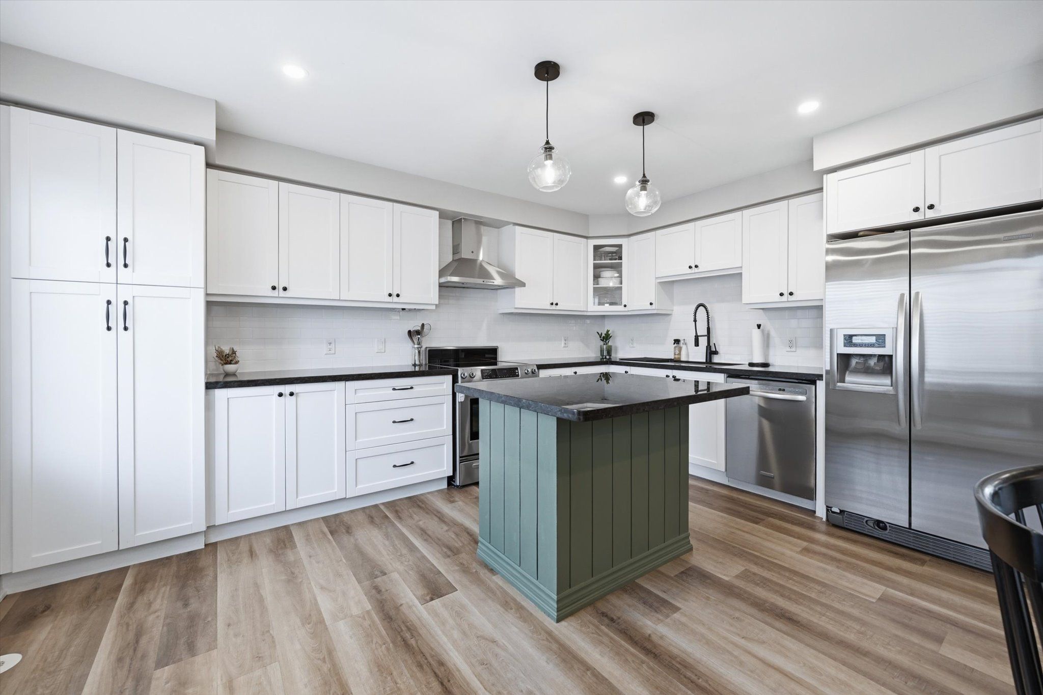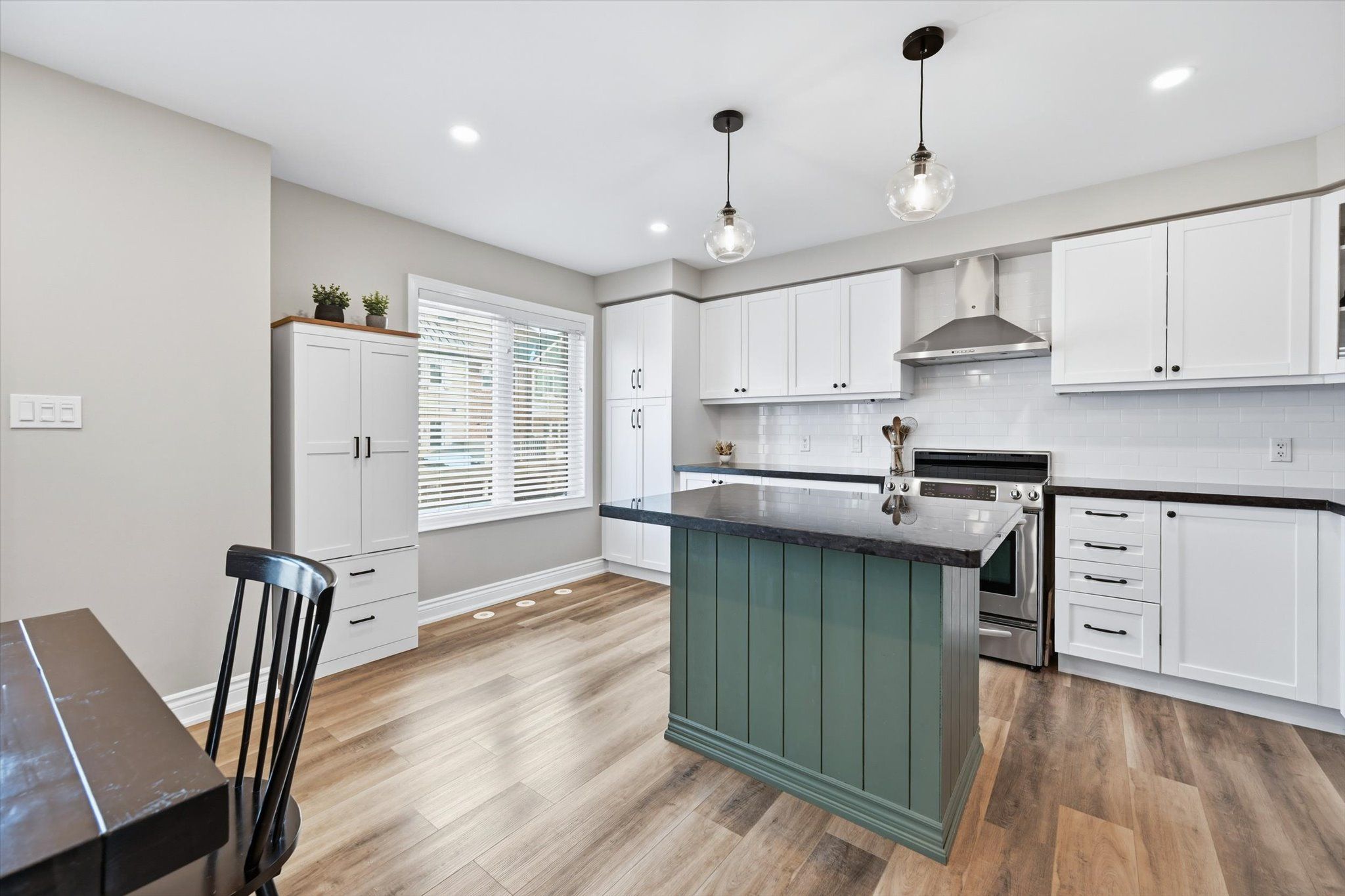 Finally! A completely renovated 3 bed, 3 bath townhouse in alton village! Which brings me to the top 7 reasons to buy #26: 1. The essential 2 full bathrooms on the bedroom level with extensive upgrades in all three bathrooms including new toilets, tiling, vanities, light fixtures, flooring, mirrors, and master ensuite shower glass enclosure with matching black accents. 2. Sought after alton village/burlington location with top schools featuring alton village elementary ranked 94th percentile in on, and dr. Frank j. Hayden secondary ranked 88th percentile in on. Short walk from the farm boy/starbucks/shoppers drug mark plaza, and only 10-15 min drive to the qew and appleby go train station. 3. Large and modern, open concept kitchen features refinished white cabinets, upgraded matte black hardware, upgraded backsplash, s/s appliances, upgraded matching black faucet, stone counters, and the coveted kitchen island with a trendy green accent color. 4. Landscaped low-maintenance backyard retreat features a deck covered in turf for proper drainage and maximum utility; a very expensive upgrade. 5. High-end finishes throughout include gorgeous engineered hardwood on the main and top floor with matching wood stairs and updated flooring across all 3 levels. Custom built-in library shelving, upgraded light fixtures incl pot lights, board and batten kitchen decor, heated floors on lower-level, eco bee smart thermostat, and a fresh coat of paint ('25). 6. Private community/laneway with private playground; includes ample visitor parking and unparalleled safety with no public access to the property. 7. Modern construction with concrete slab-on-grade (no basement leaks), copper electrical, modern plumbing, 2017 roof, and vinyl (never-rot) windows. Nothing to do but move in and enjoy! But don't hesitate, book your showing today, as when it sells there likely won't be another one like it as these models are rare!