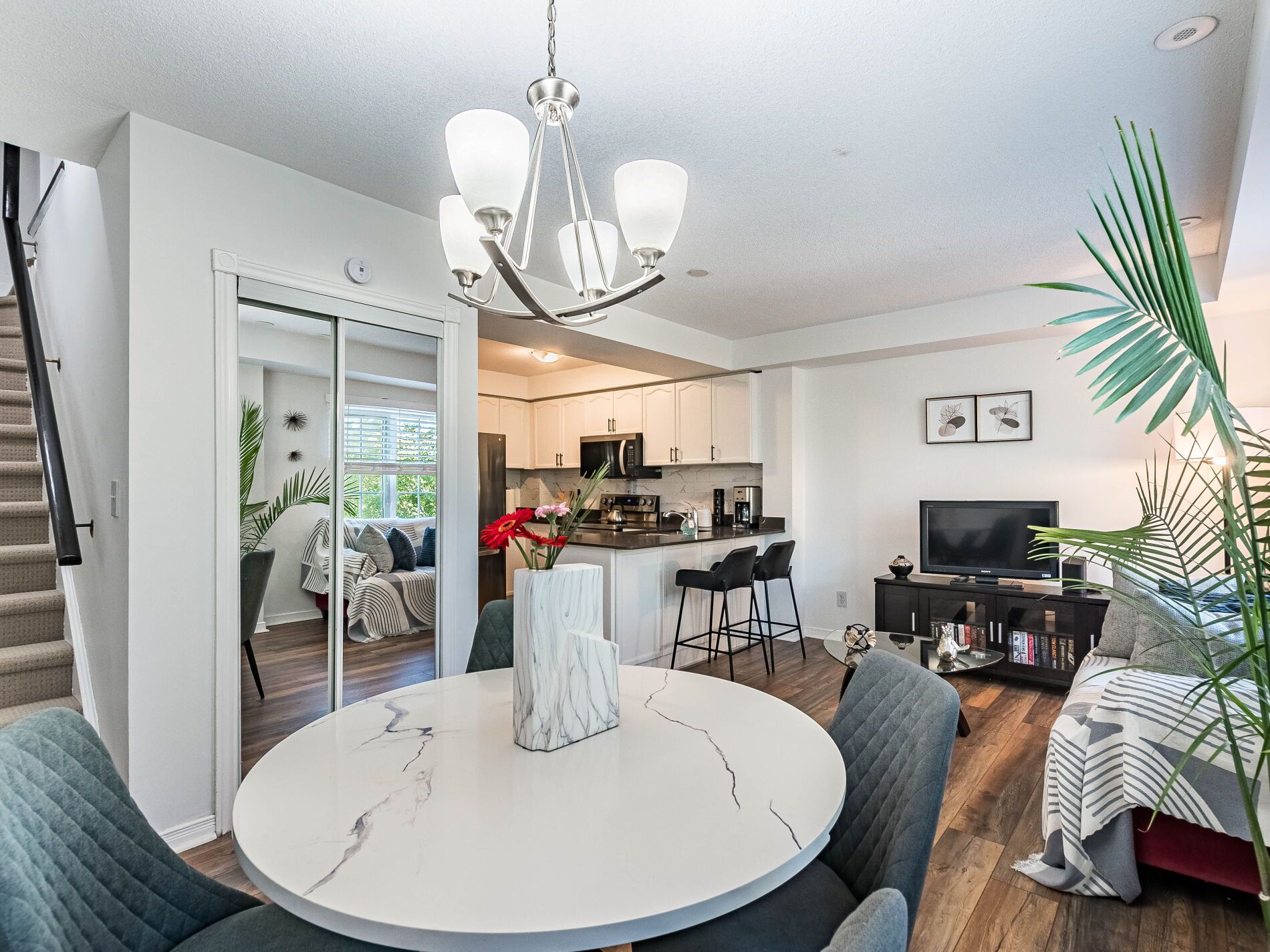 Just listed! Incredible opportunity for a starter townhome in a popular high park village complex and great neighbourhood! Multi-level design home w/2 bedrooms on the upper level and laundry area for convenience, with fully private garage & large (and very private) roof-top terrace. Step inside and you'll find a freshly painted interior, the kitchen and bathroom were tastefully upgraded 2 years ago, adding a touch of elegance to the home. Brkfts bar, upgraded elf, newer laminated floors on both levels and new berber carpet for all stairs all the way to your own roof top terrace that extends your living space from spring to fall extra 200 sq ft, a perfect and unique bonus for relaxing or entertaining family & friends. Home appliances have been thoughtfully updated to keep you comfortable and worry-free. The washer and dryer are newer in aug 2025, min to park/splashpad/school. Super convenient w/plaza next door - h depot,superstore, lcbo, shoppers dm. Ez transit w/1 bus to subway, square one, near go! 2 parking spots total & street parking overnight allowed for extra cars.