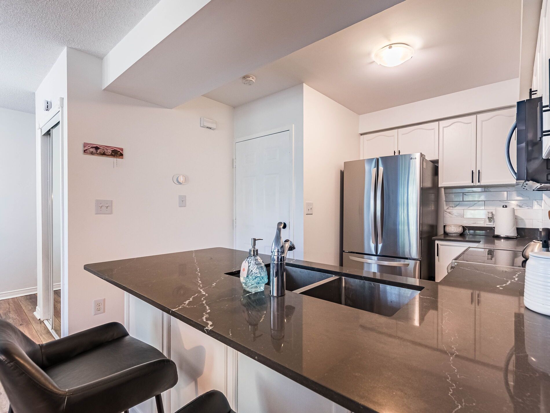 • Upgraded kitchen and bathroom provide modern elegance.