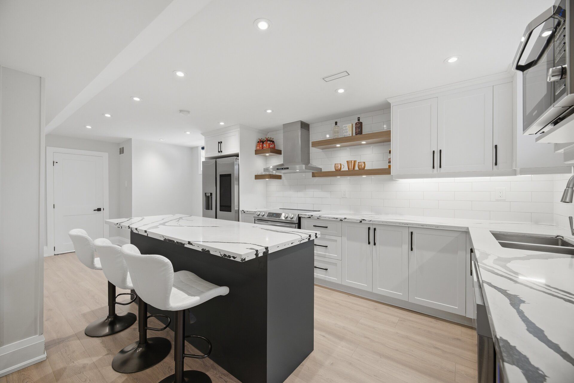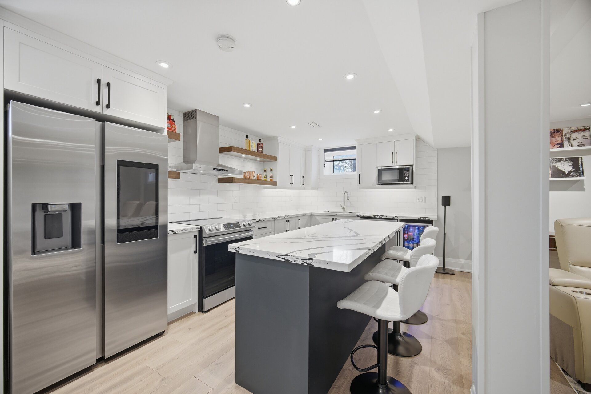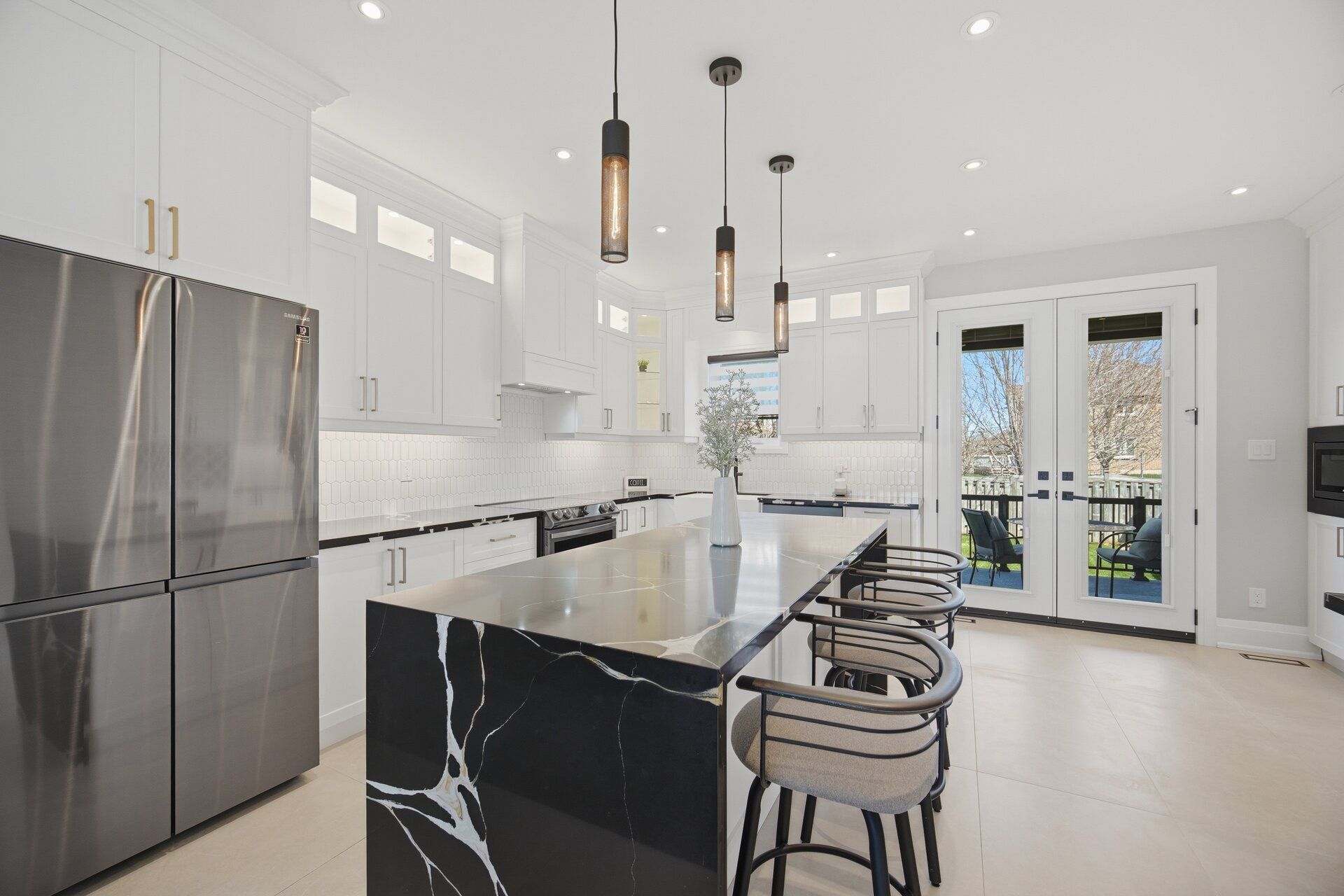 • Two custom-designed kitchens with oversized islands, great for entertaining or rentals.