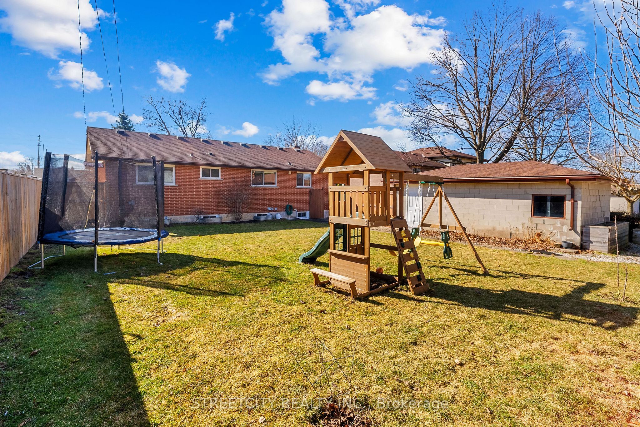 Welcome to 306 burlington crescent - a spacious, all-brick ranch featuring 2 kitchens, 3+1bedrooms, and a separate entrance, offering excellent income or in-law suite potential. Conveniently located close to schools, shopping, parks, and bus stops, this home combines accessibility with comfort. The main floor boasts 3 generous bedrooms and a bright, inviting living room with a cozy gas fireplace and large windows with california shutters. The updated kitchen features oak cabinetry, granite countertops, and a movable island, complemented by hardwood and ceramic flooring throughout. A beautifully remodeled bathroom completes this level, along with main-floor washer and dryer connections for added convenience. The fully finished lower level offers incredible versatility with a second kitchen, rec room, bedroom, and full bathroom-perfect for multi-generational living or rental income opportunities-with its own separate side entry. Step outside to a newly fenced backyard, ideal for entertaining or relaxing. The double interlocking brick driveway provides parking for up to 6 vehicles and leads to a 1. 5-cardetached garage-enhanced by no sidewalk, maximizing parking space. Located just 2. 9 km from victoria hospital and only 5 minutes to highway 401, this home ensures excellent accessibility for commuters and families alike. Additional highlights include newer windows and a complete appliance package: 2 stoves, 2fridges, dishwasher, washer, dryer, freezer, 2 microwaves, and all window coverings. An exceptional opportunity to own a move-in-ready home with built-in income potential in a prime, convenient location.