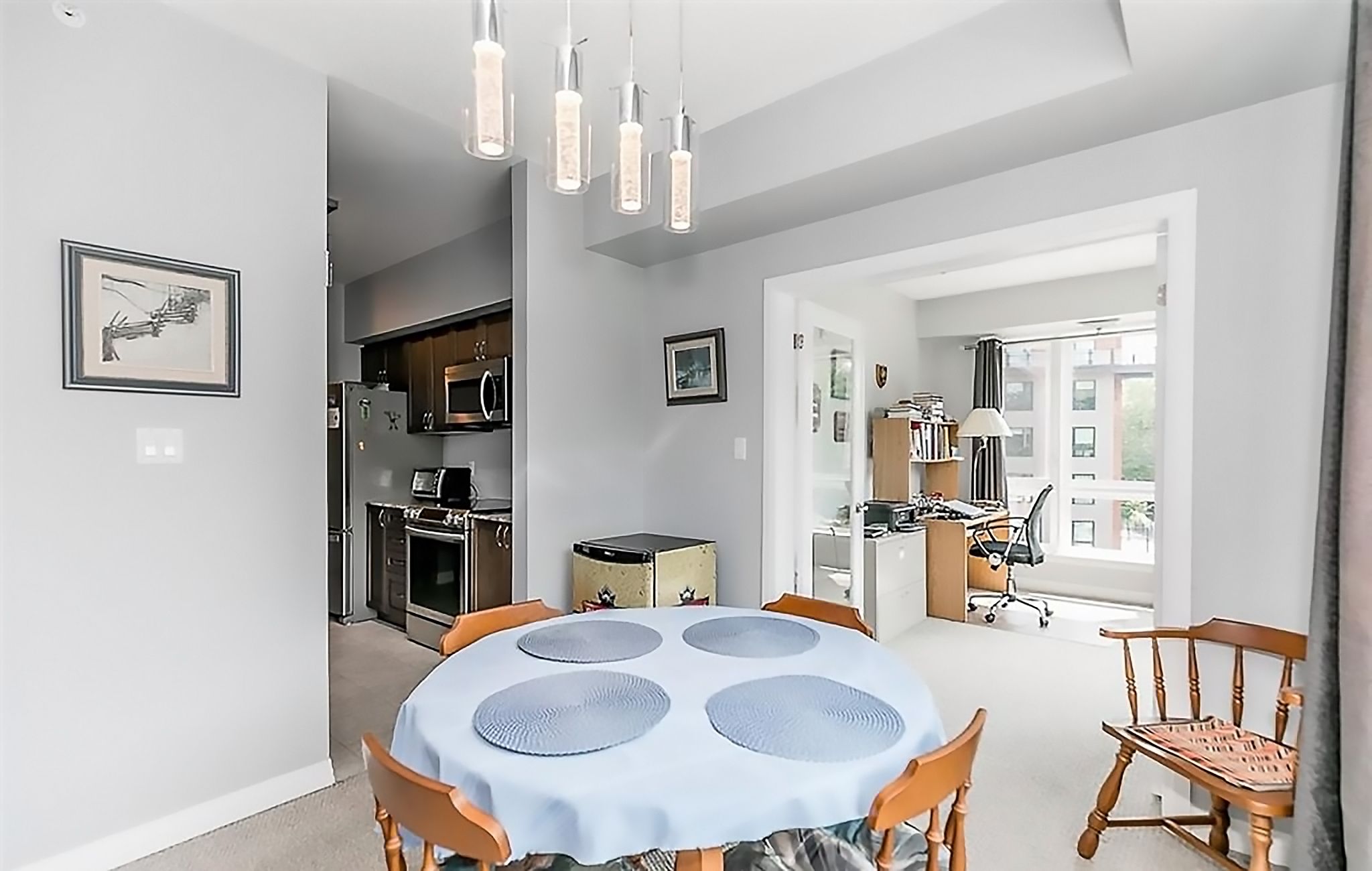 Presenting convenience of condo life at the gallery on essa road - where making the switch to a care-free lifestyle feels effortless. Say "goodbye" to mowing lawns and shoveling driveways, and say "hello" to comfort, convenience, and modern living. This sought-after corner suite offers 1,454 sq. Ft. Of bright, open-concept living, enhanced by 9' ceilings and additional windows that flood the space with natural light. The functional layout includes a spacious primary bedroom, a second generous bedroom, a versatile den/flex space for home office or study zone, and two full baths. Enjoy the convenience of ensuite laundry and the rare benefit of bbqs permitted on your private, premium wrap-around covered balcony - perfect for outdoor dining and relaxation. This condo suite includes two owned parking spots (one indoor, one outdoor) plus a dedicated storage locker. Residents of the gallery enjoy access to one of the area's best rooftop patios - ideal for al fresco dining, entertaining, morning coffee, or unwinding at the end of the day. Step outside and you're moments from ardagh bluff's scenic trails for hiking and biking, as well as a full range of amenities including shopping, services, fine and casual dining, entertainment, and all season recreation simcoe county is known for. Commuters will appreciate easy access to public transit, go train service, and major highways north to cottage country or south to the gta. Experience the ease, comfort, and convenience that condo living at the gallery has to offer. Take a look today and discover a lifestyle you'll love.
