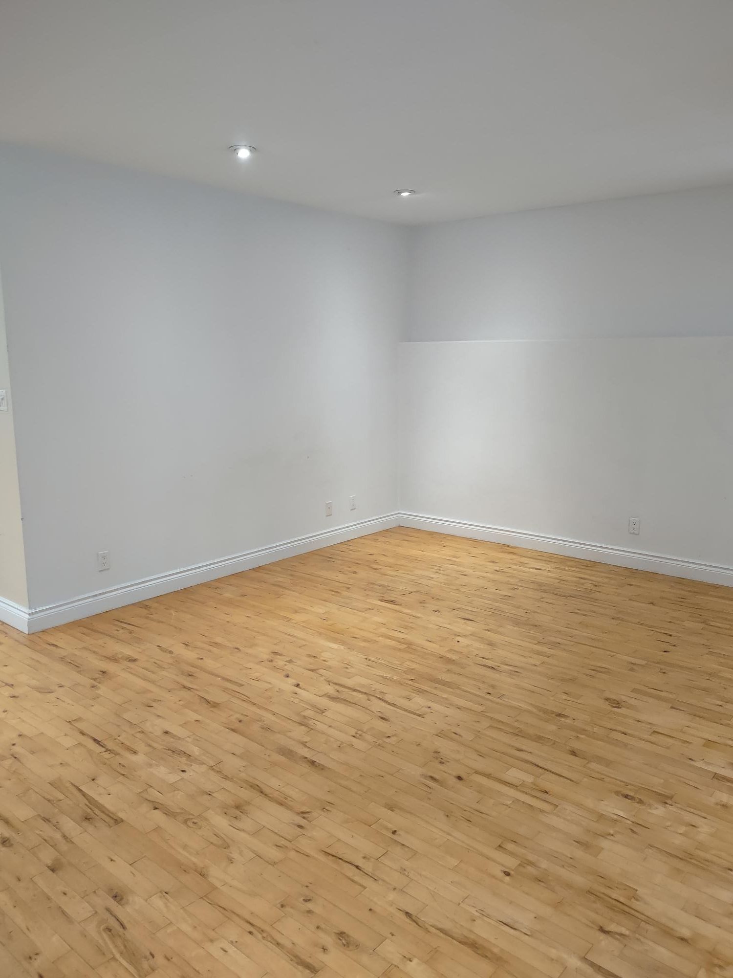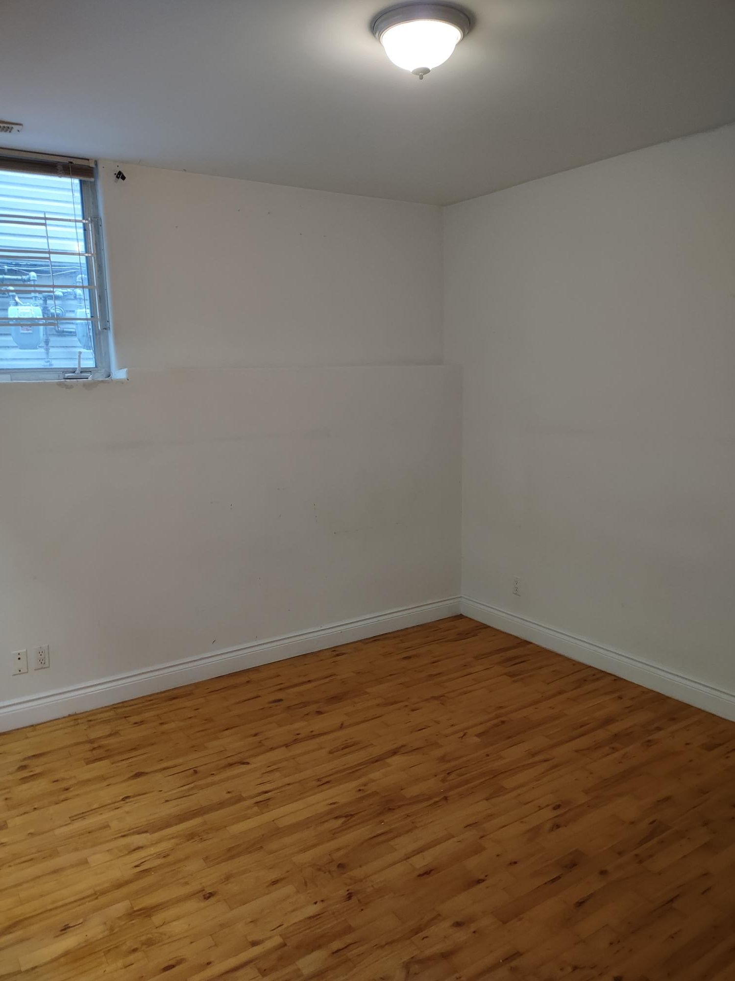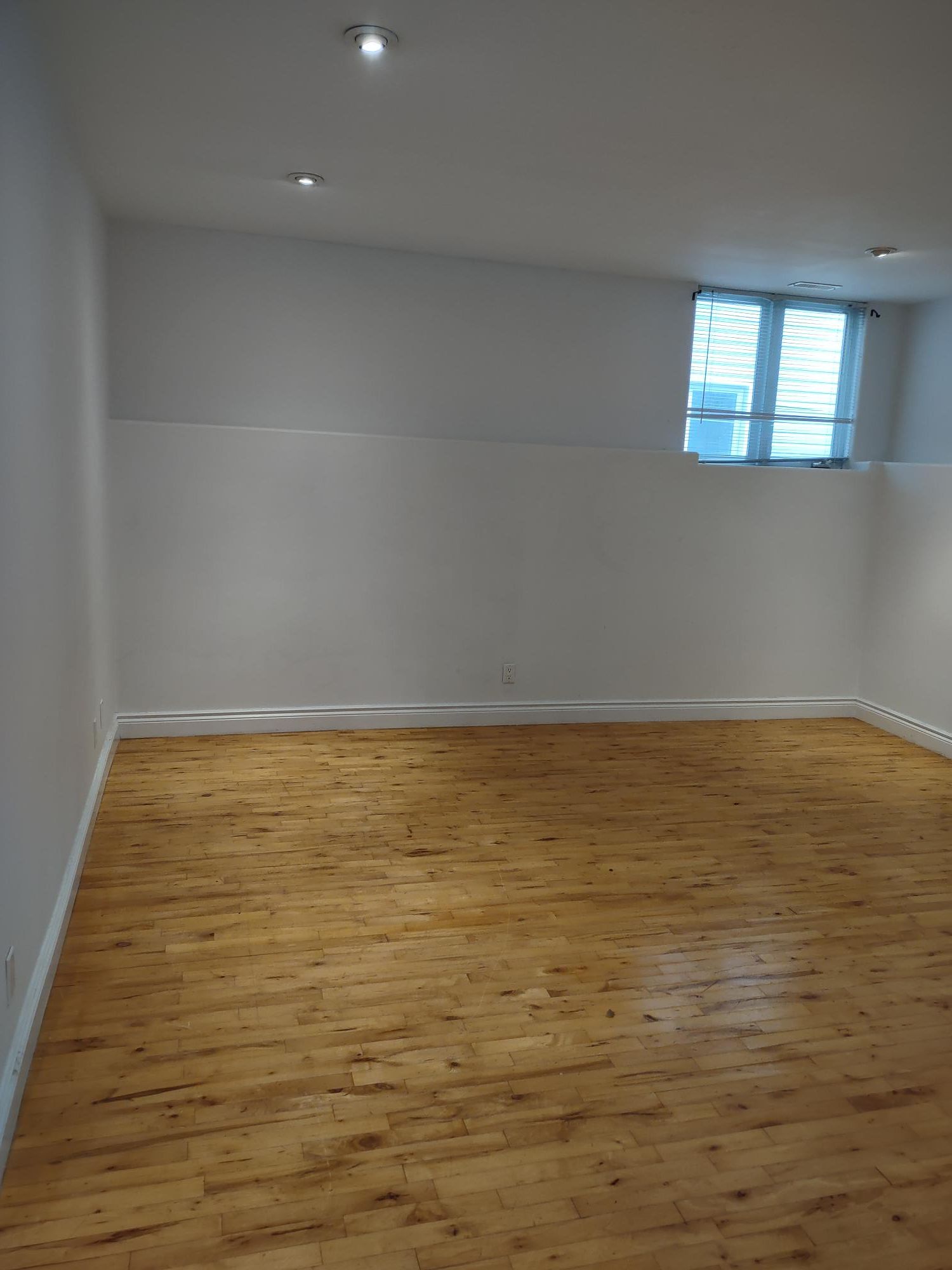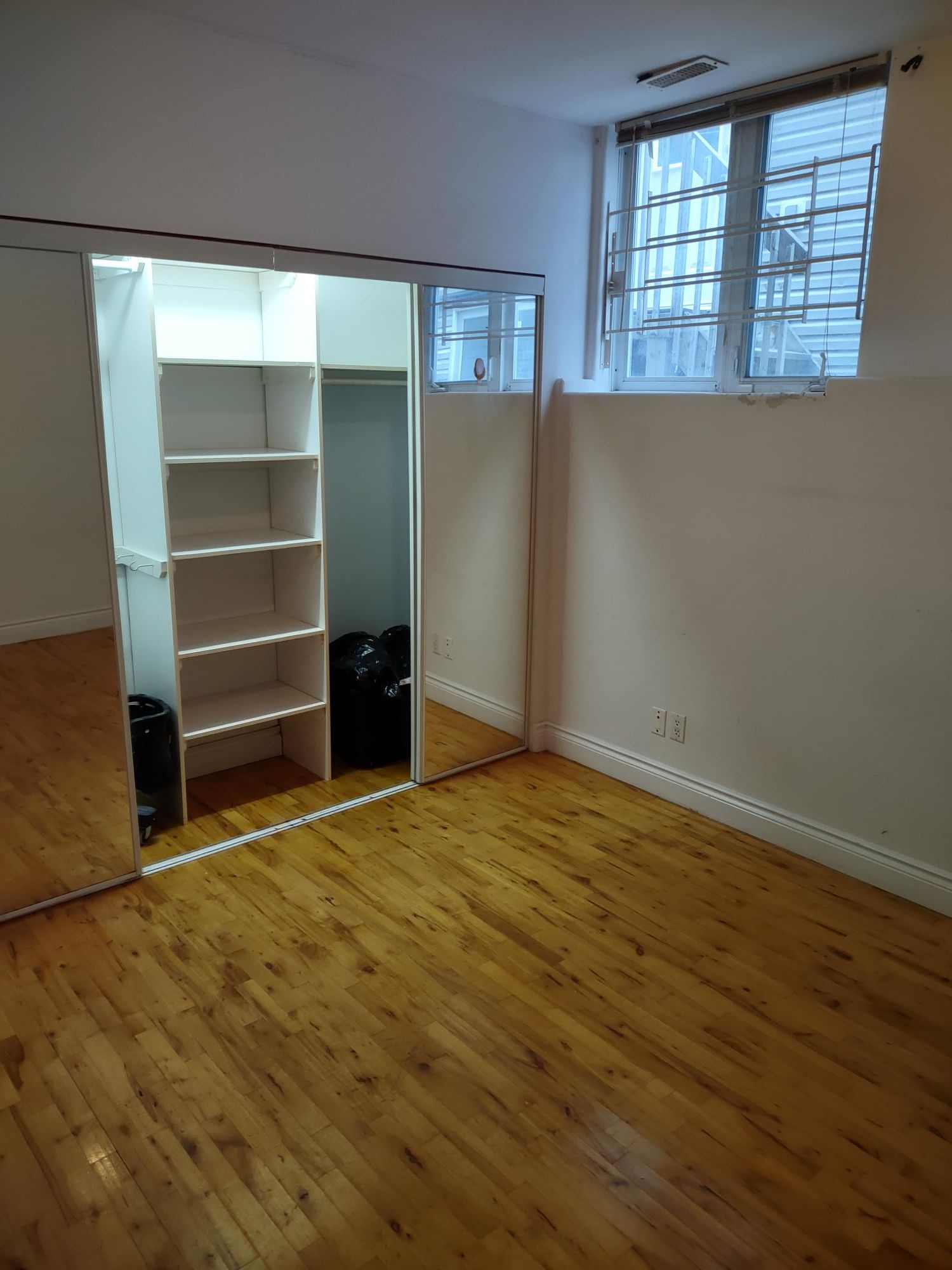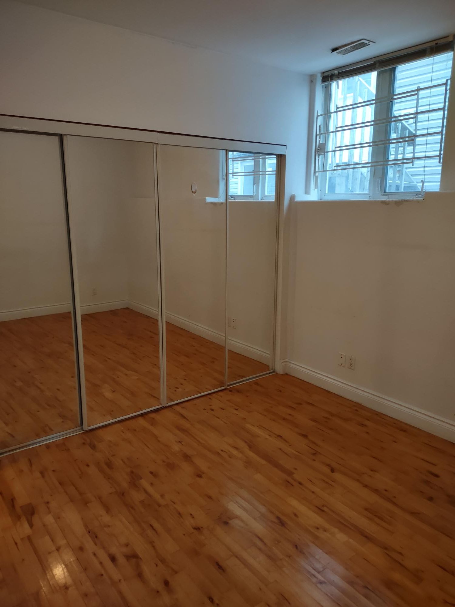 • Spacious one-bedroom sub-level apartment with high ceilings and large windows.