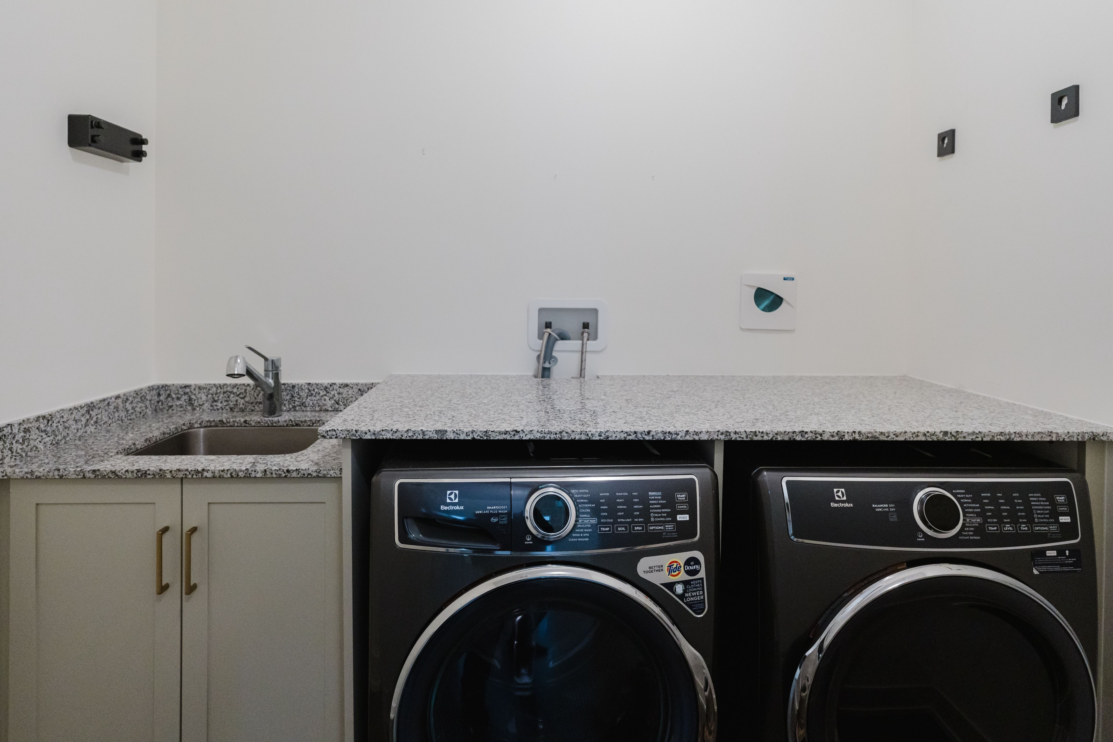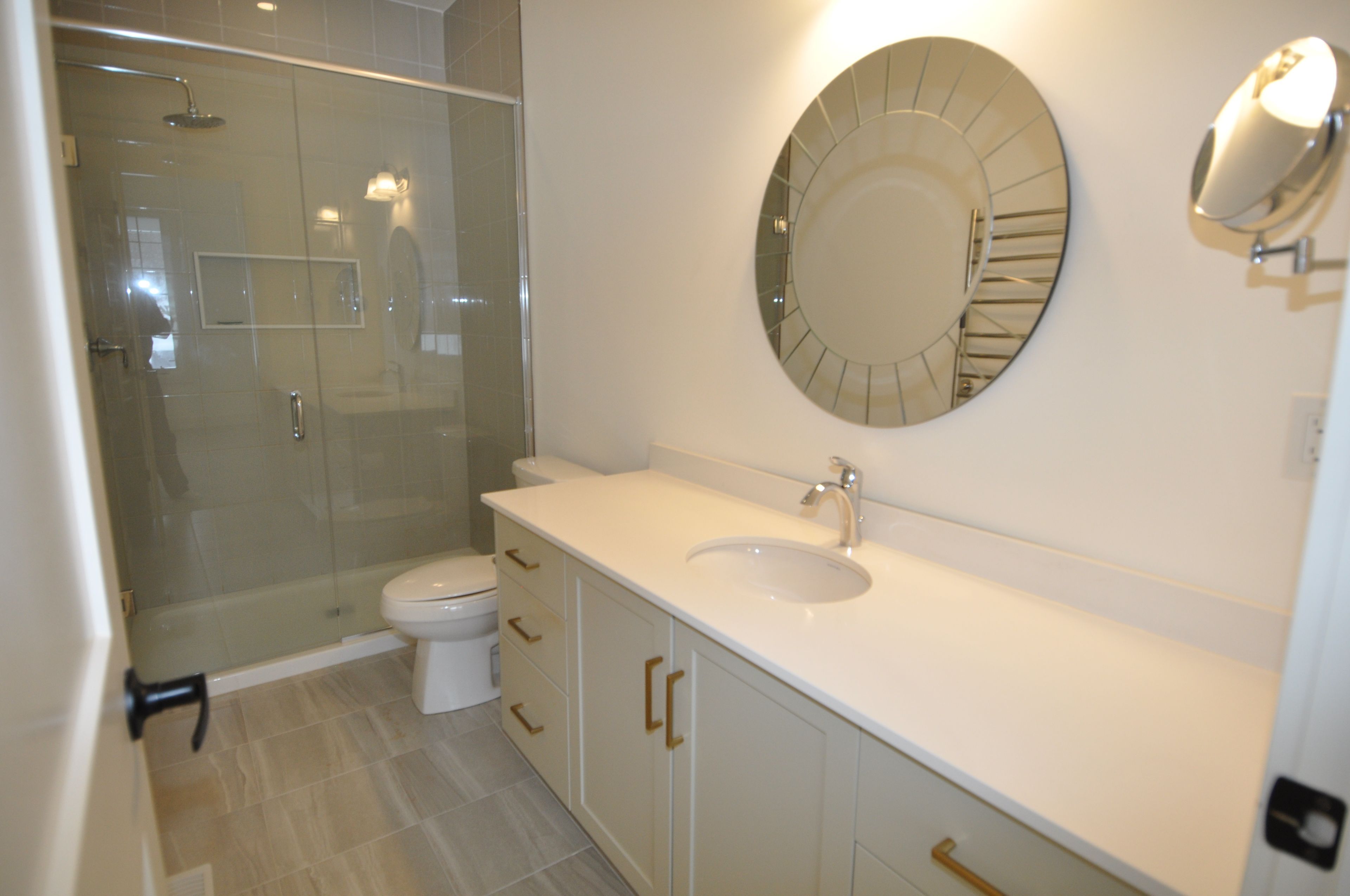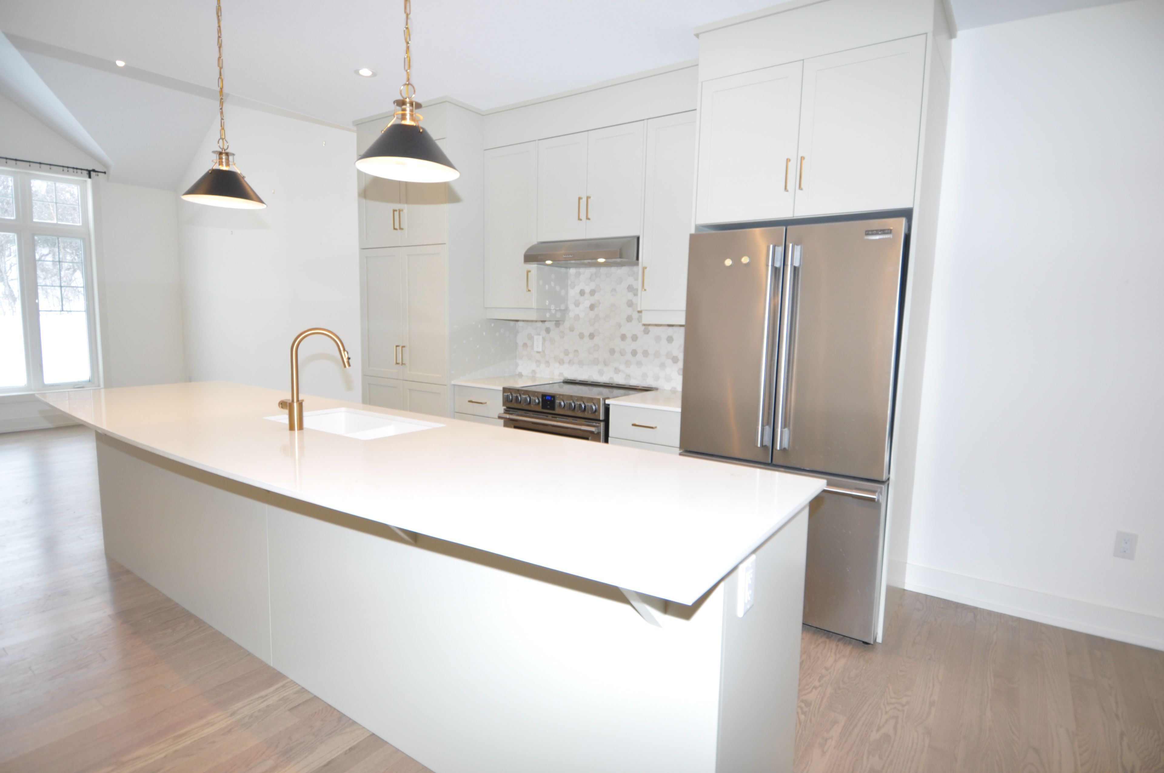 • Chef-inspired kitchen with quartz countertops and a 12-ft island for entertaining.