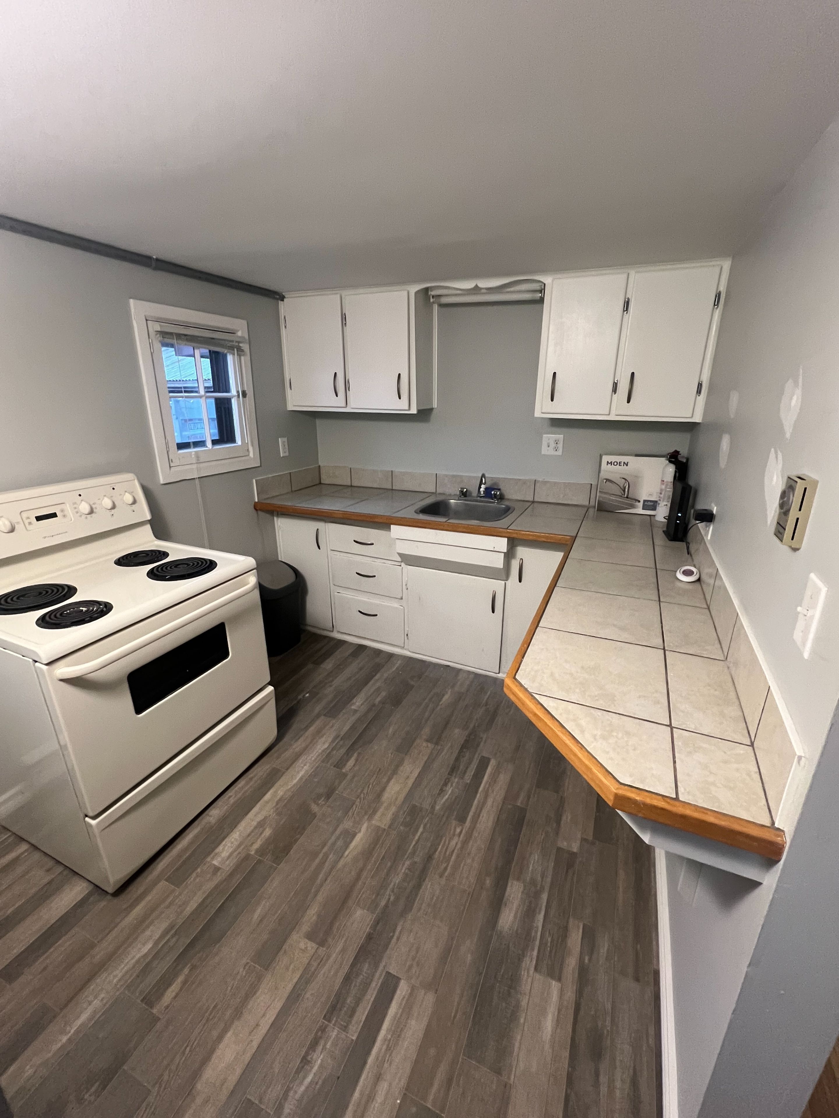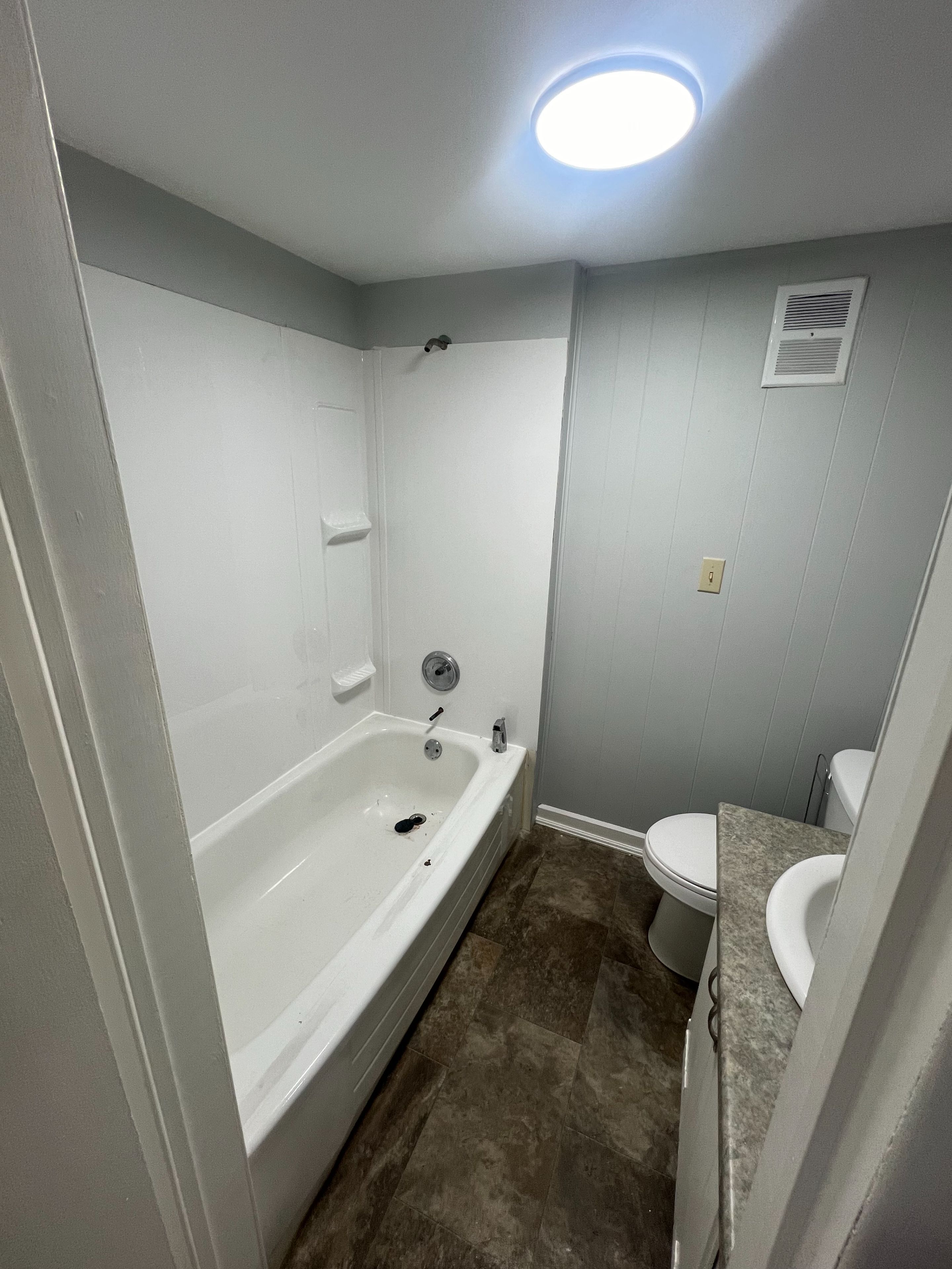 • Updated house features modern windows and bathroom amenities.