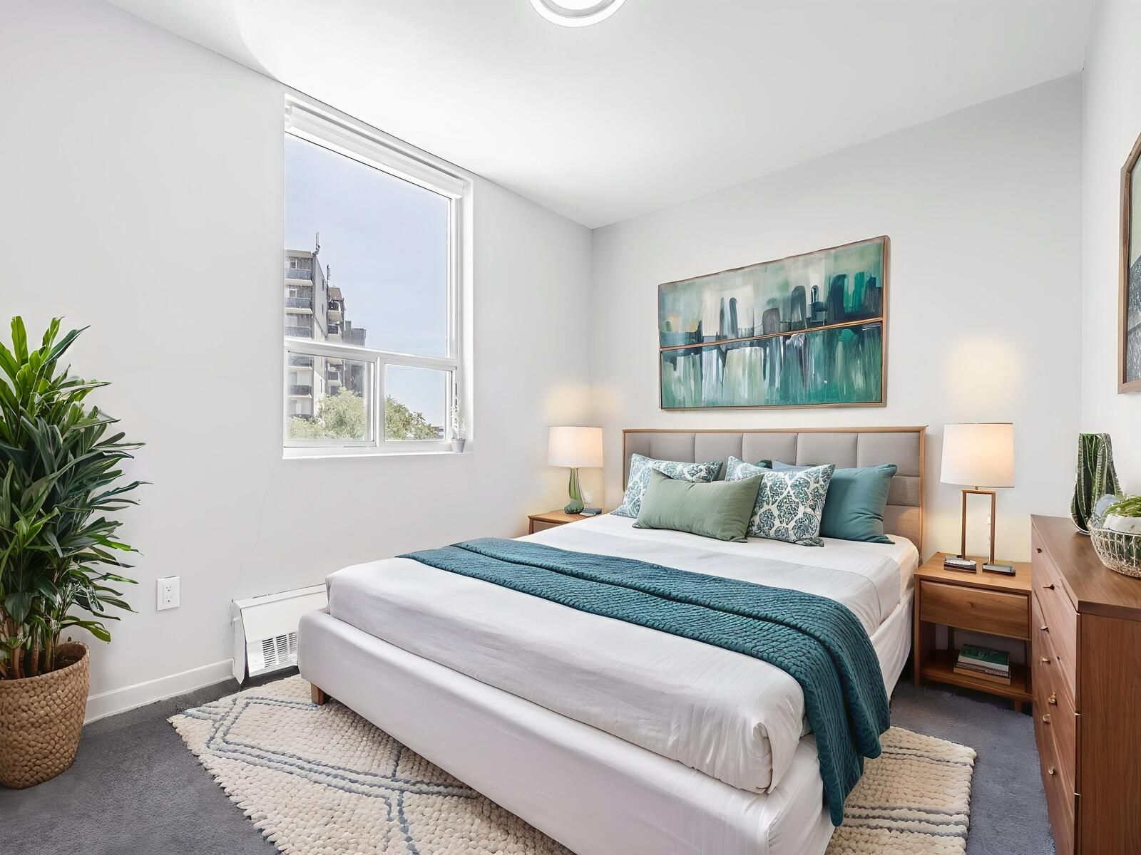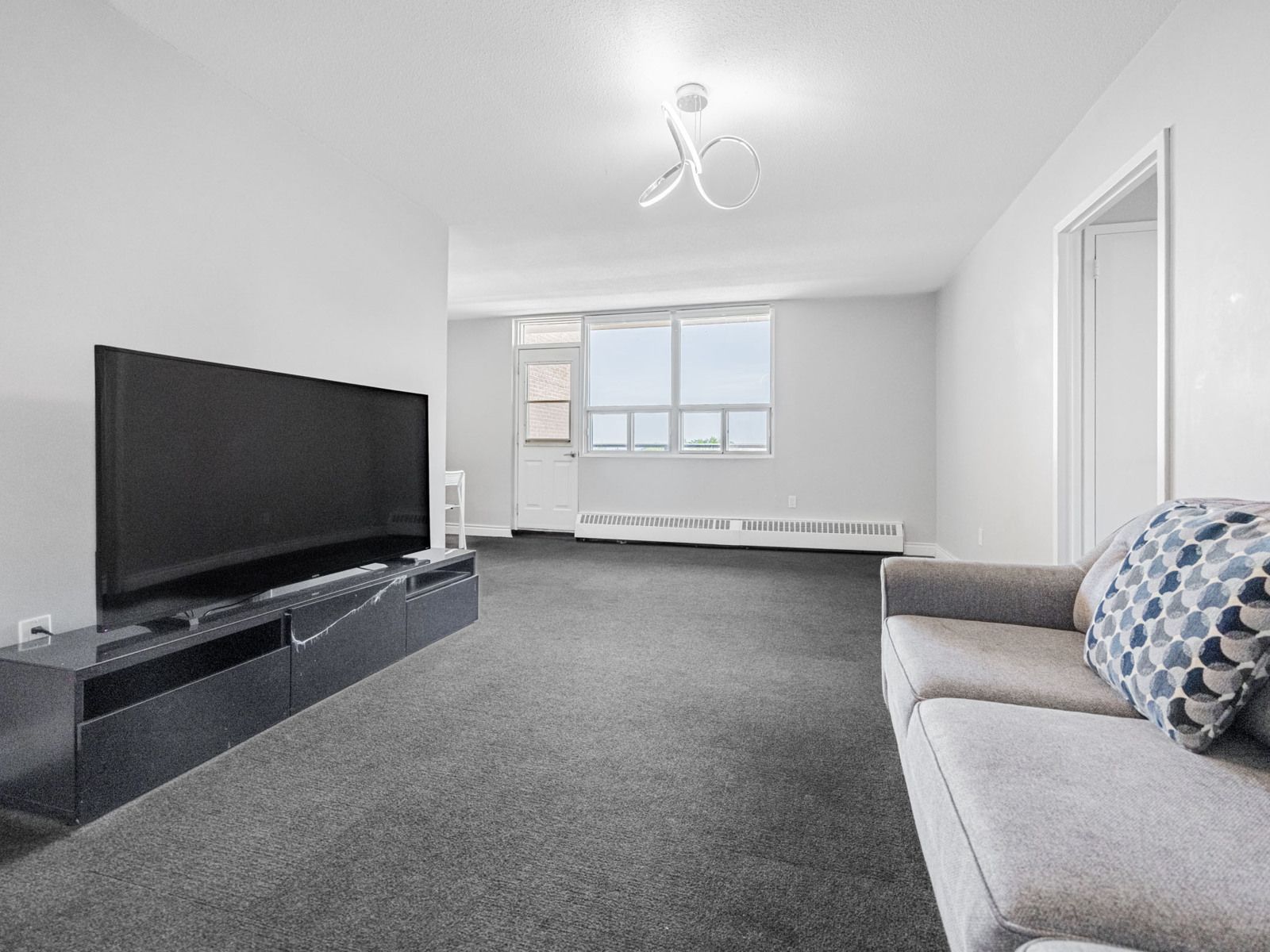 Discover the perfect balance of style and functionality in this beautifully maintained2-bedroom, 2-bathroom condo. The open-concept living and dining area welcomes you with a bright, spacious layout that flows effortlessly, ideal for both entertaining and quiet evenings at home. Walkout to your own private balcony, the perfect spot to enjoy your morning coffee or unwind with city views after a long day. Throughout the unit, upgraded carpet flooring adds a layer of comfort while making maintenance a breeze, designed with convenience in mind. Both bedrooms are generously sized, offering a peaceful retreat from the urban pace, complete with large windows that invite in natural light and ample closet space for storage. Located in a well-maintained building with convenient access to local amenities, including shops, restaurants, plazas, parks, schools, and public transit, providing everything you need for a lifestyle of comfort, convenience, and contemporary living. Don't miss your chance to own this exceptional condo!