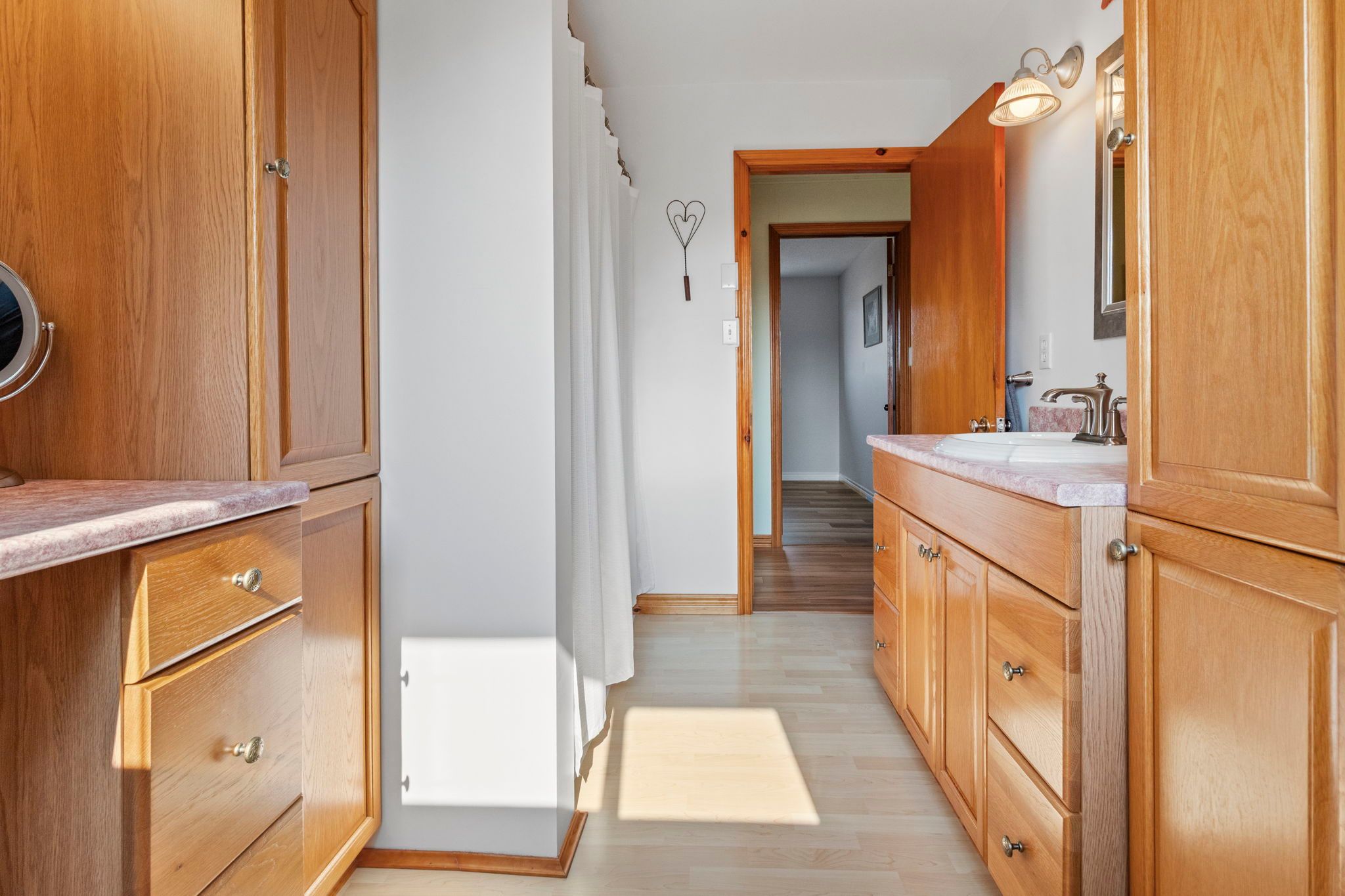 • Insulated two-car garage provides ample space for vehicles and storage.