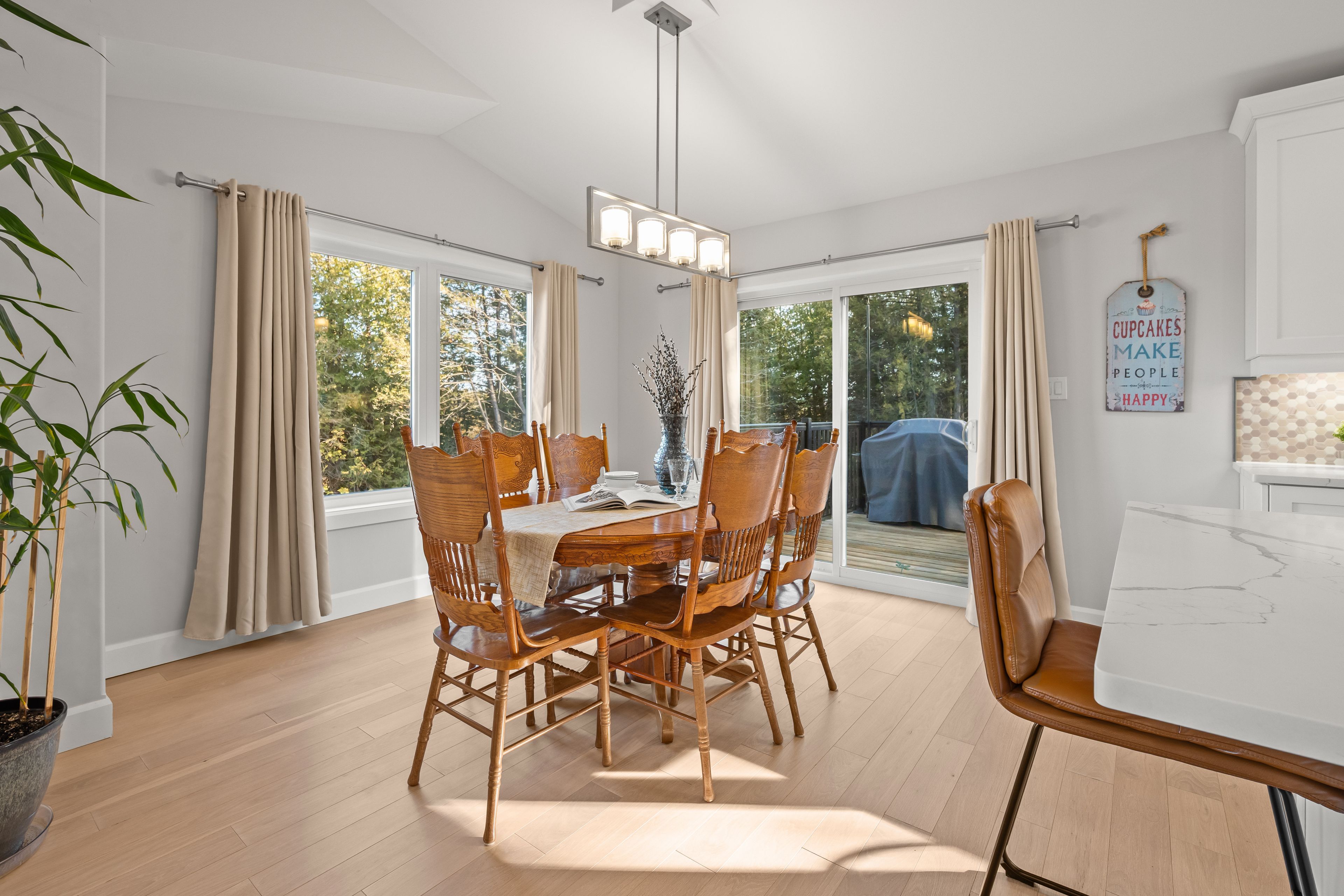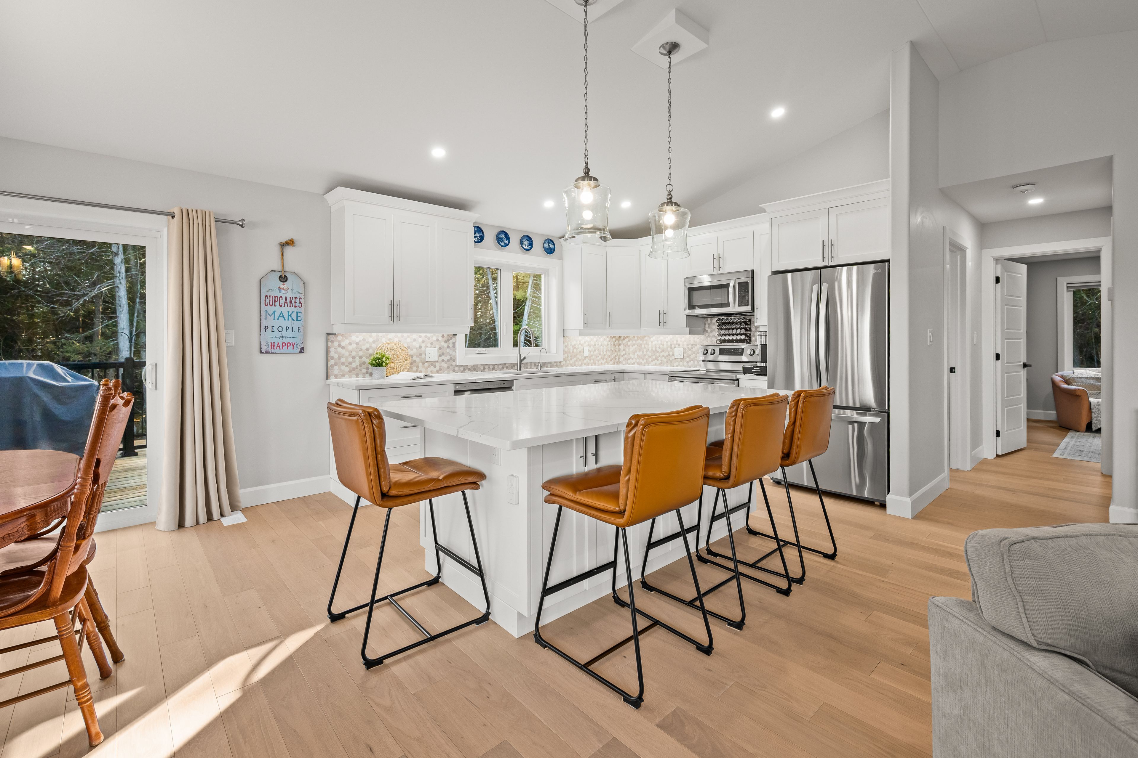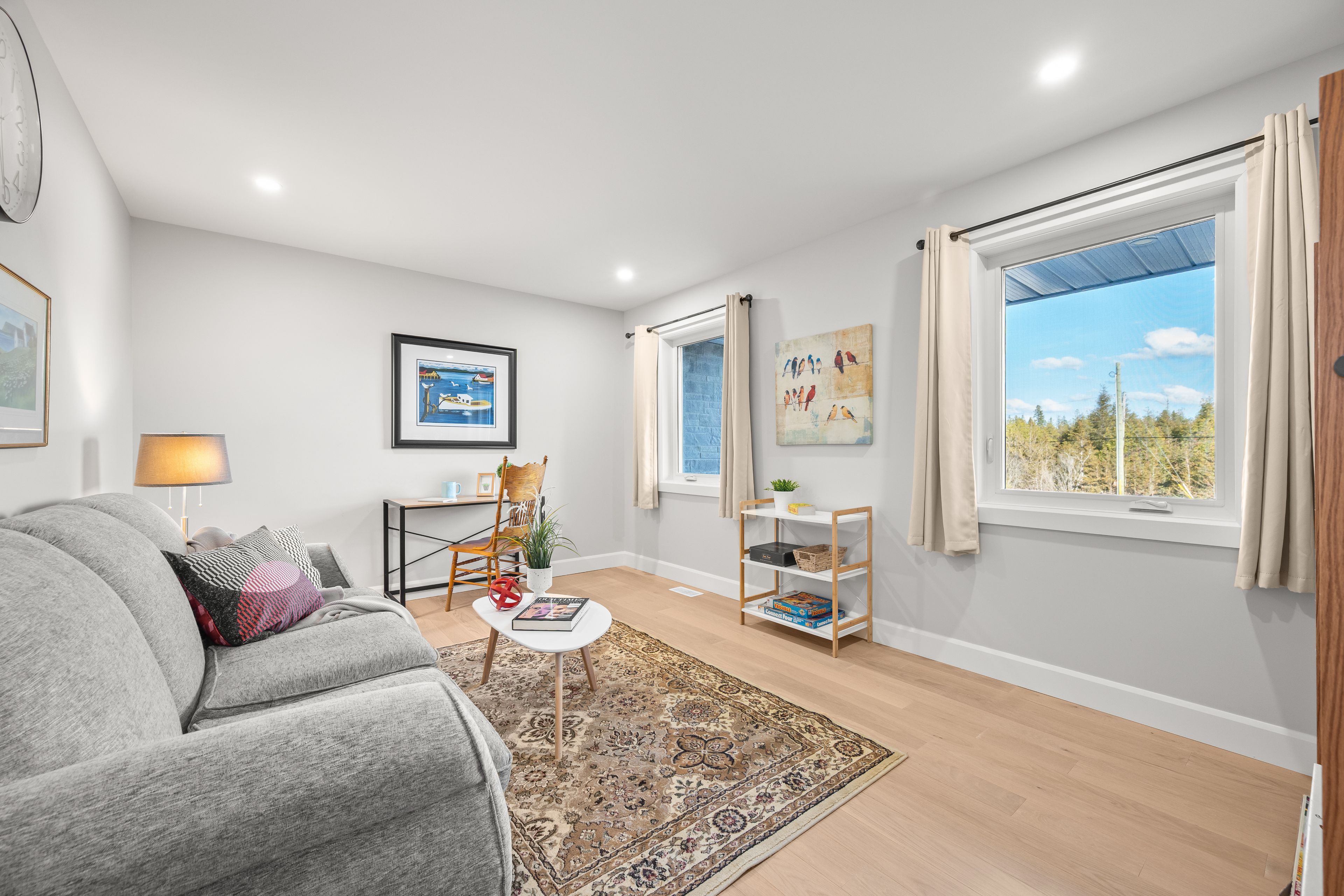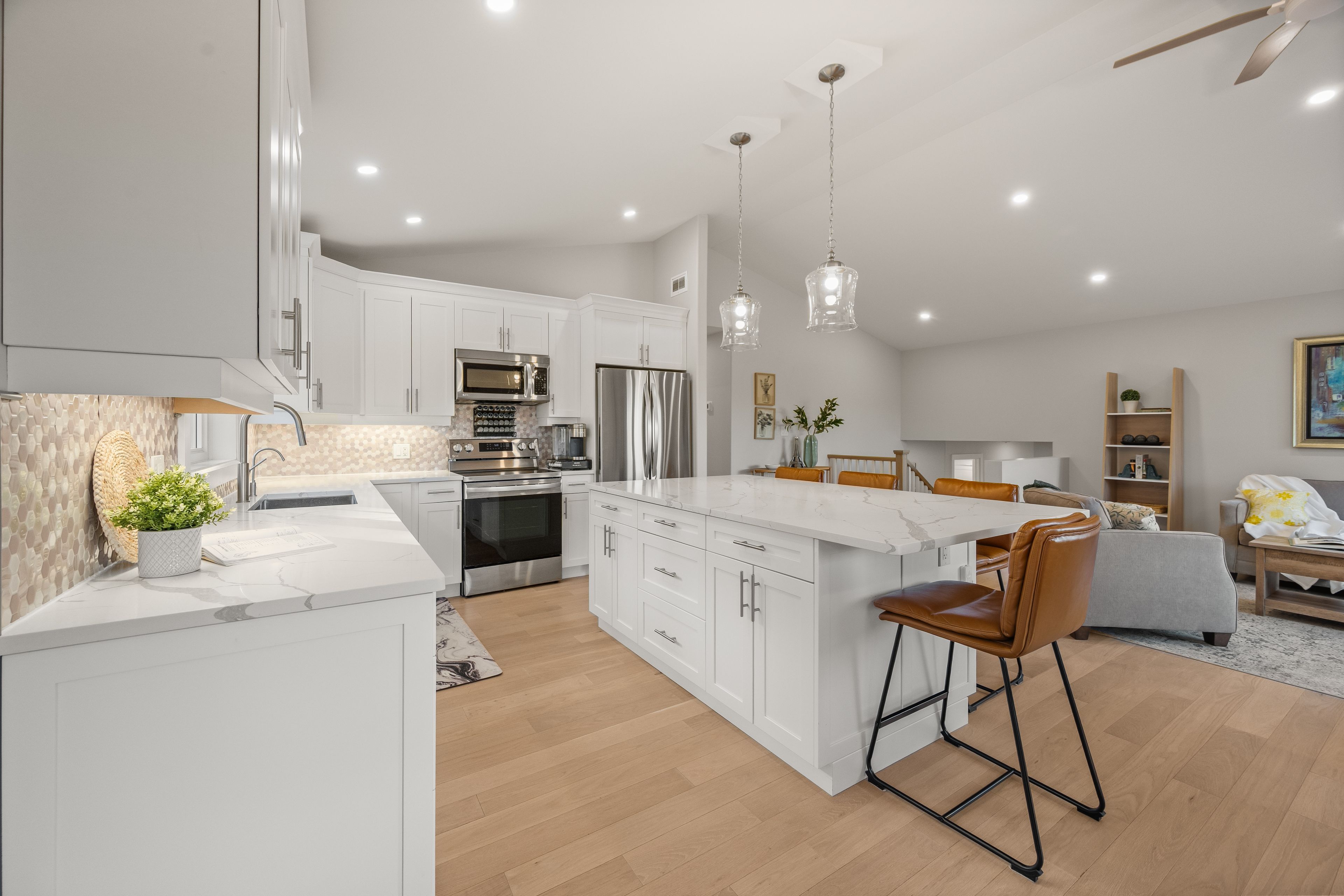 • Bright, open-concept upper level with vaulted ceilings and large windows.