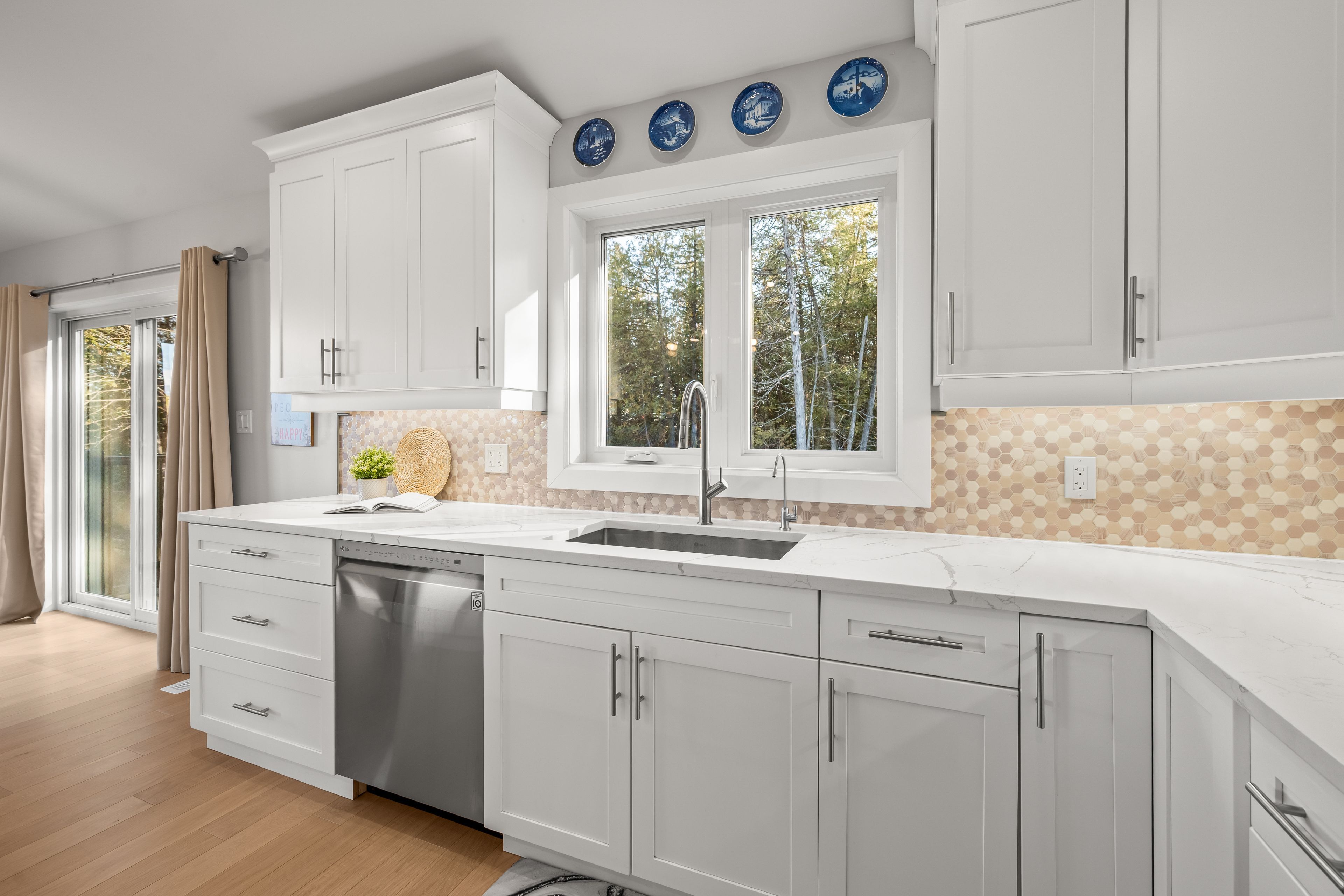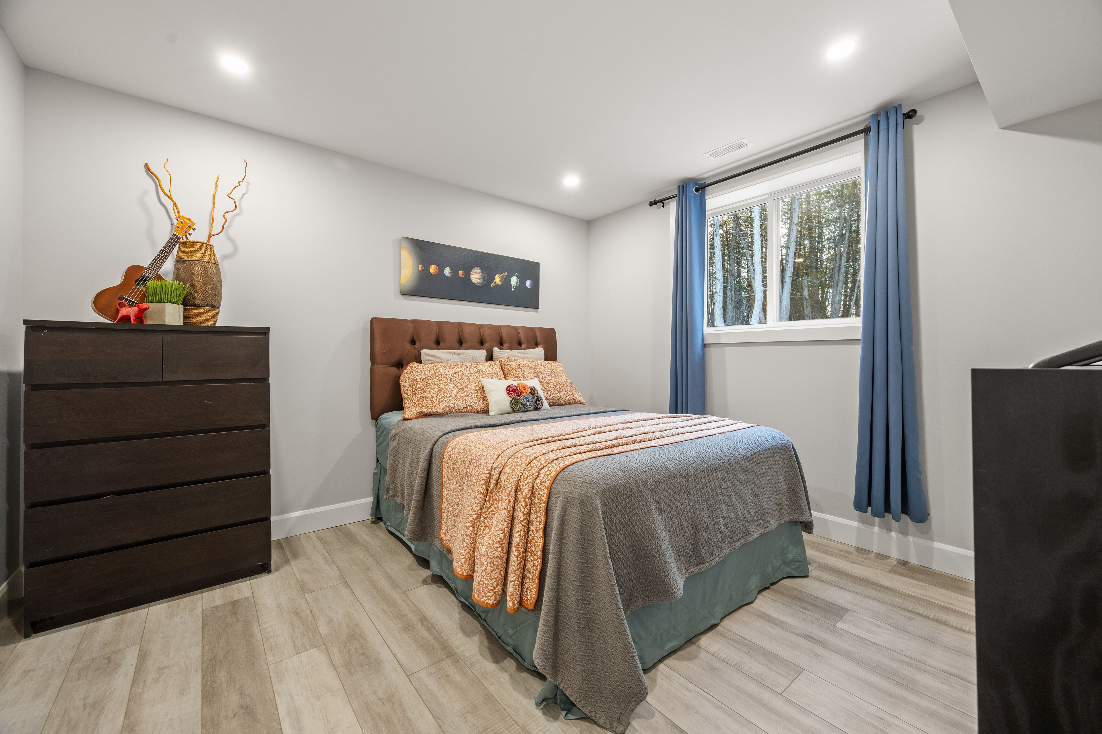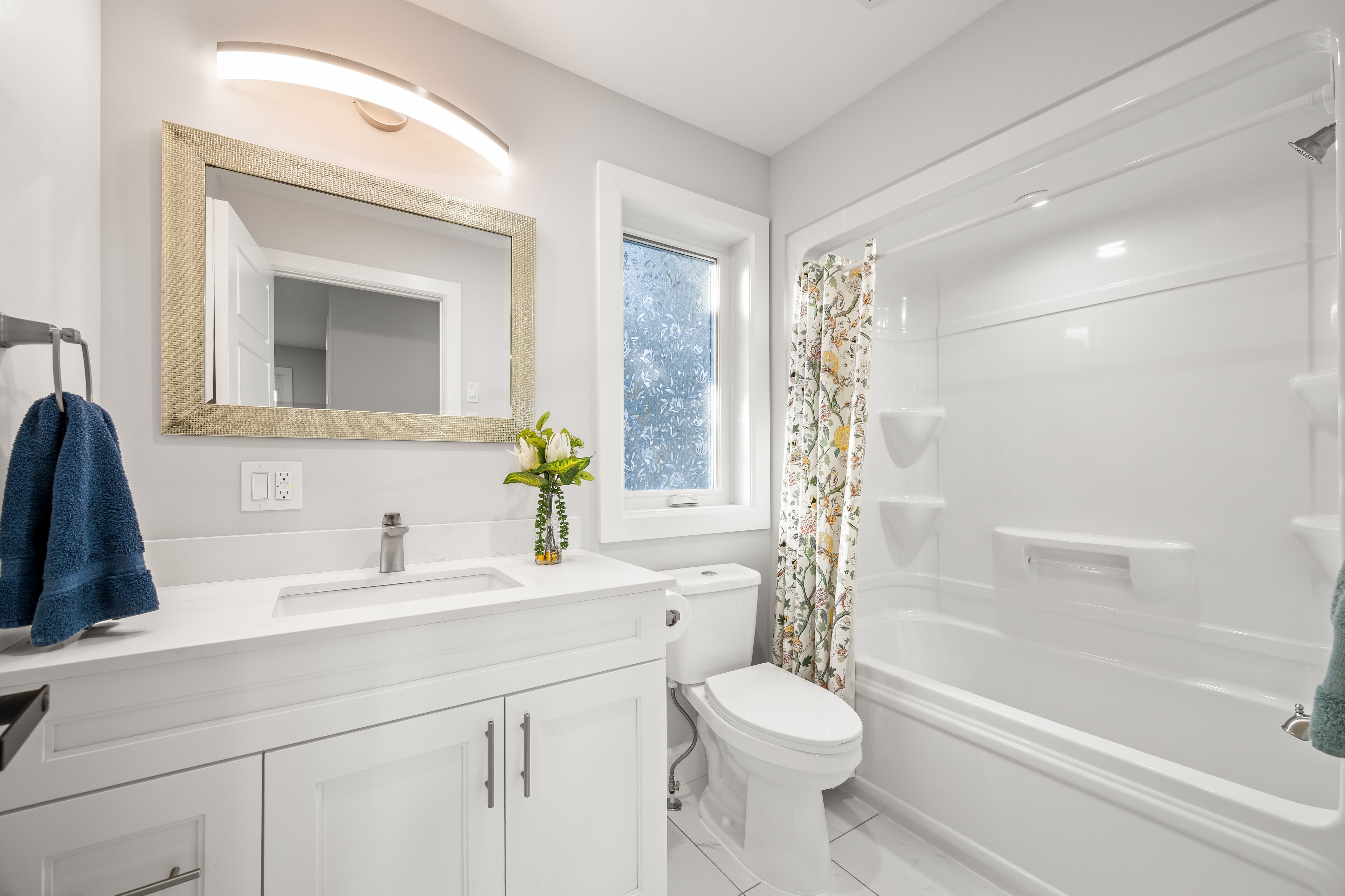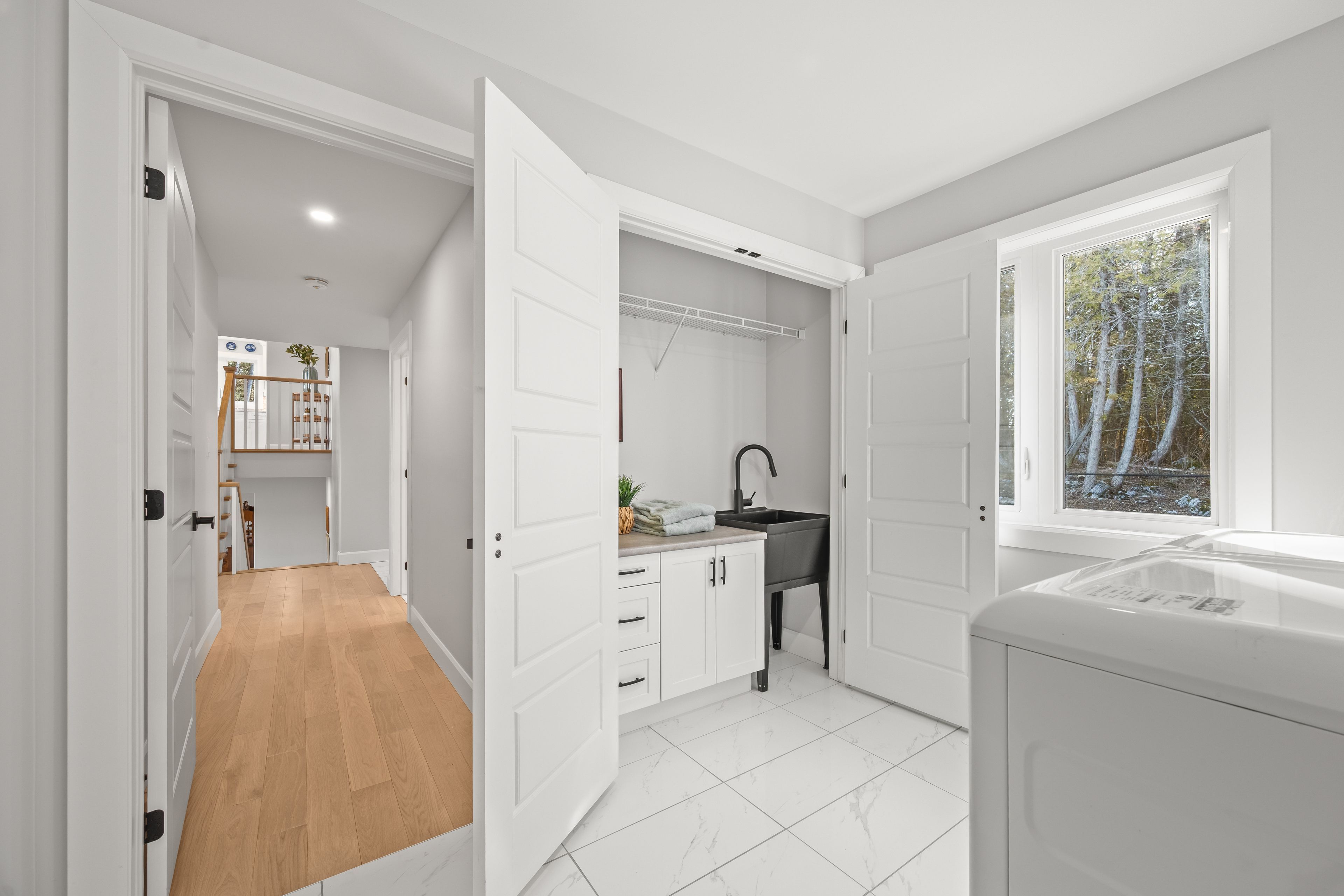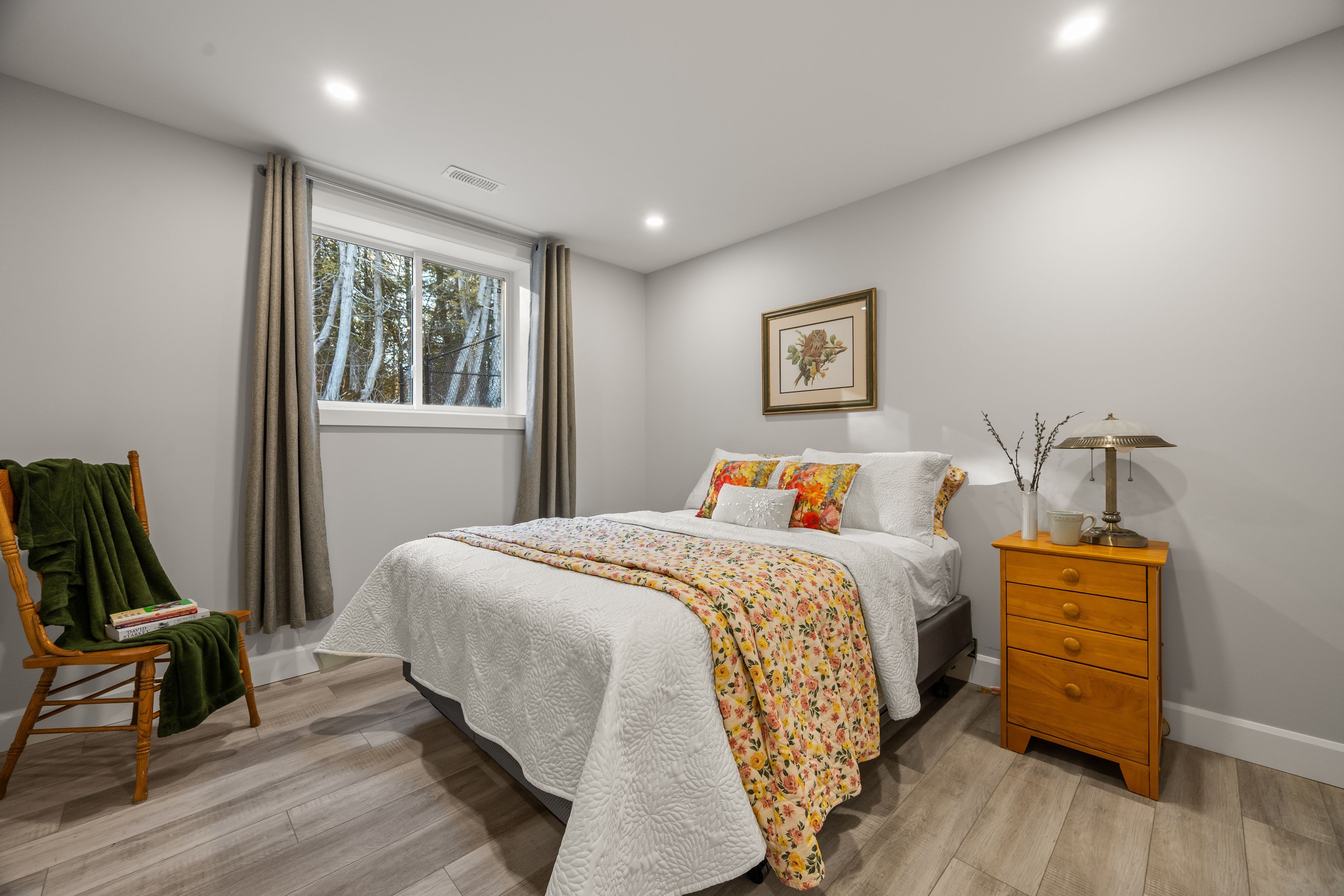 • Bright, open-concept upper level with vaulted ceilings and large windows.