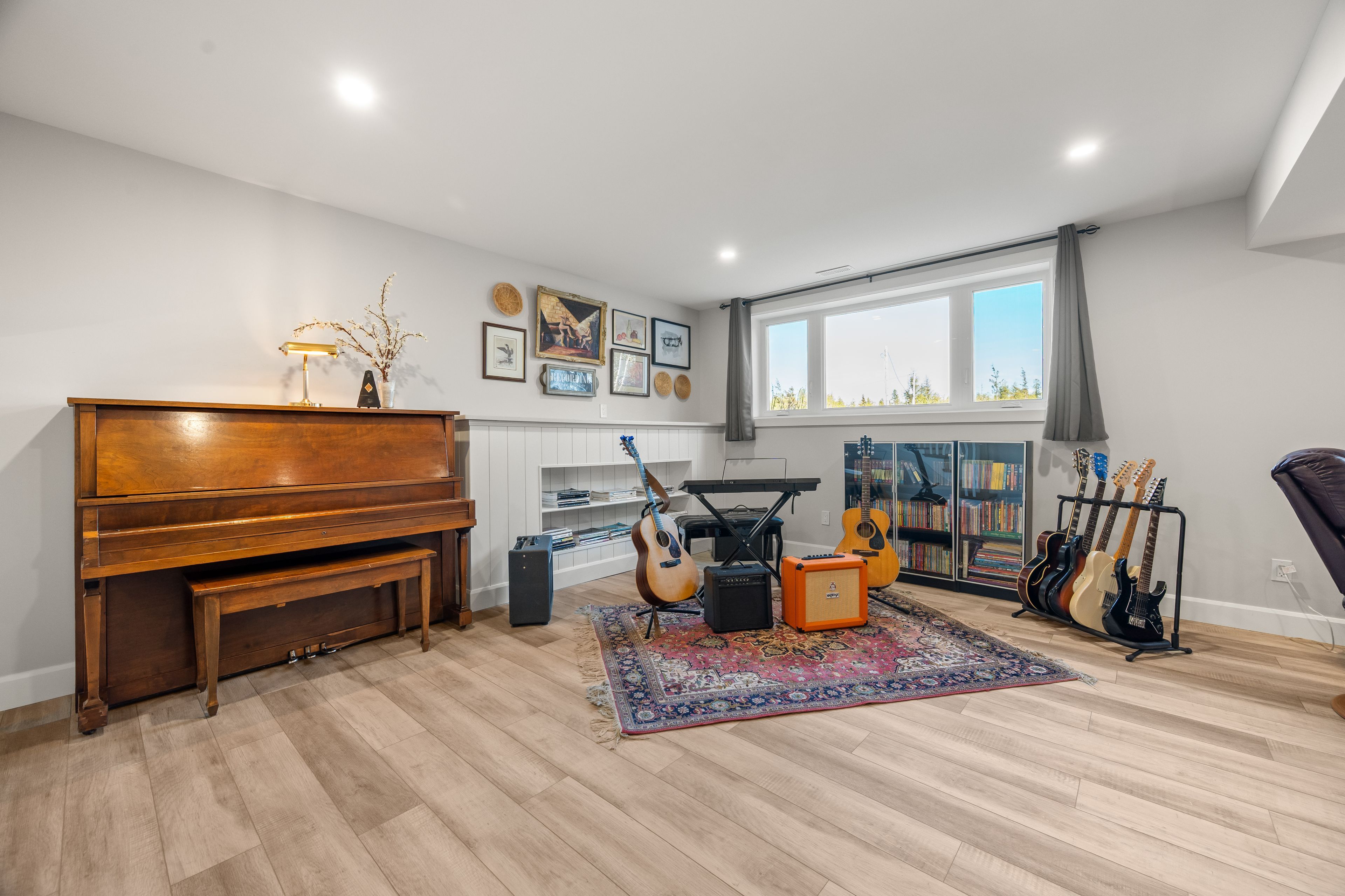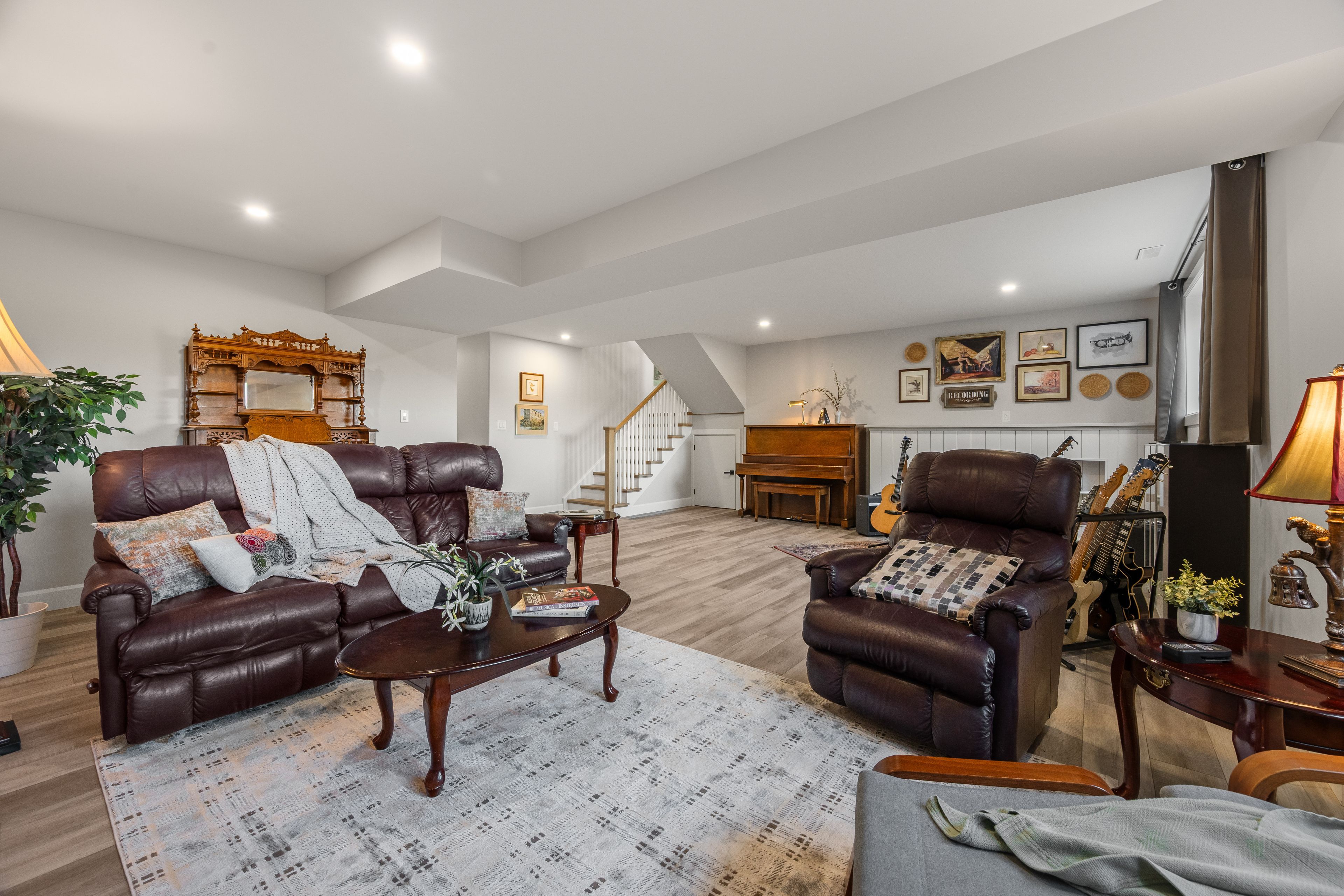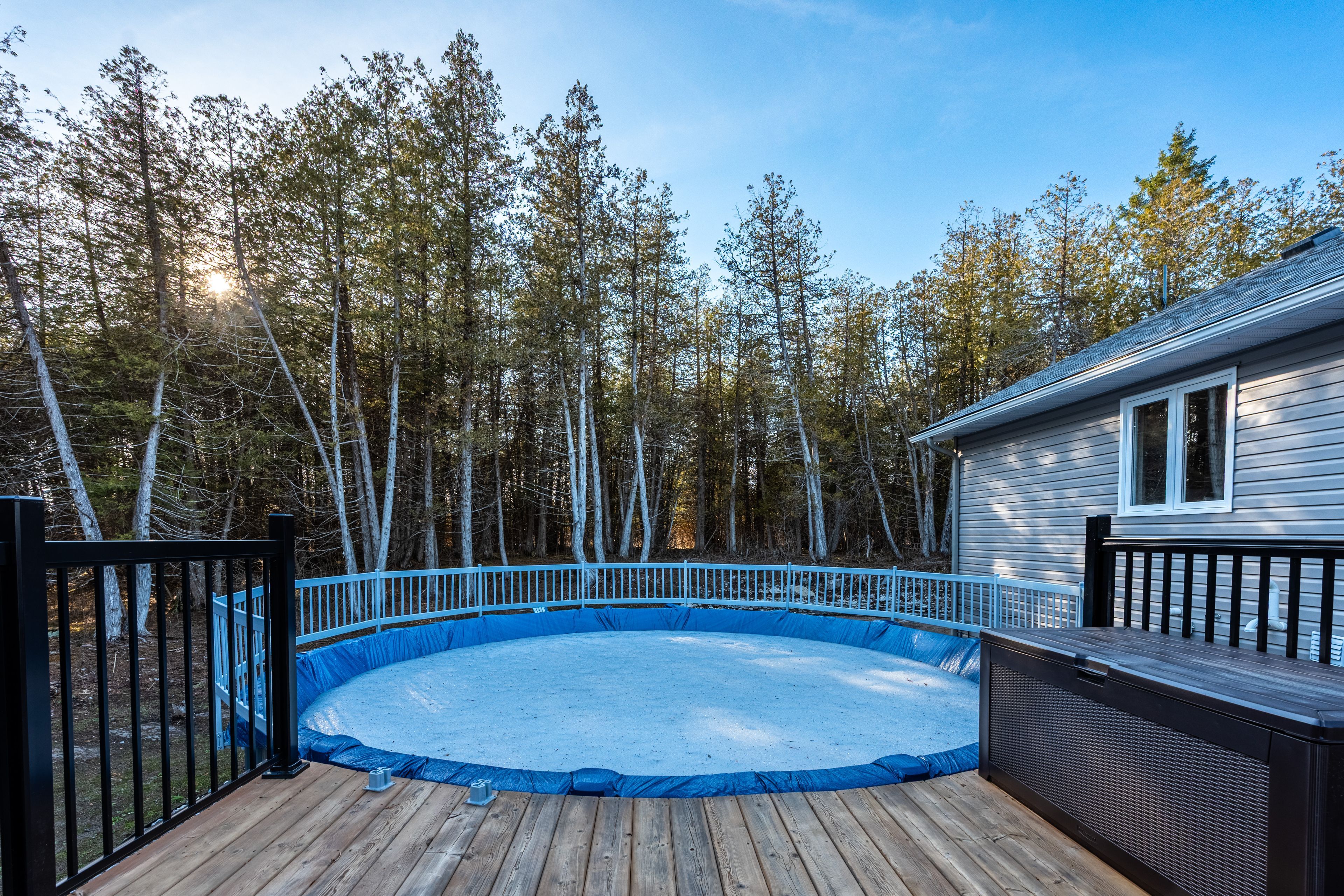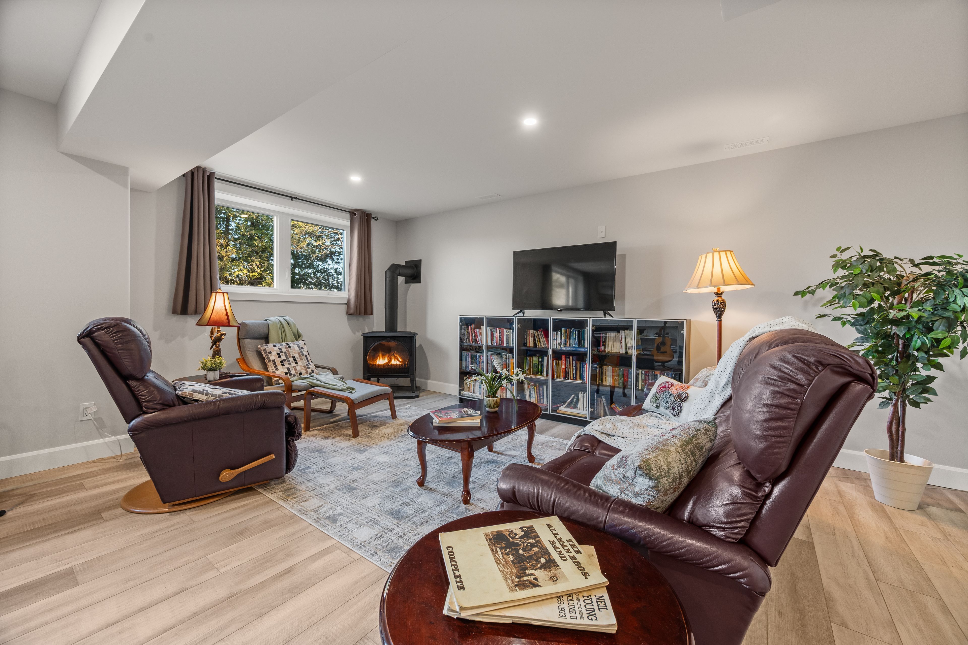 Set on a private, tree-lined lot, this well-executed newer side-split delivers a strong combination of functional design & usable space across every level. From the moment you arrive, the scale is evident with a wide driveway, oversized double car garage, & a setting framed by mature trees that carries throughout the property. Inside, the upper level is defined by its vaulted ceilings & open-concept layout, creating a bright, expansive feel across the living & dining areas. Large windows draw in natural light, while direct access to the elevated deck extends the living space outdoors. The kitchen is anchored by a substantial center island with seating, ample quartz counter space, & full-height cabinetry, positioned to overlook the main living area. The primary suite is both spacious & well-appointed, featuring a walk-in closet & a 3pc cheater ensuite. A second bedroom completes the upper level. The main level is thoughtfully laid out with a dedicated office, a full laundry room, & a 4pc bath, along with interior access to the double car garage creating a functional separation of space within the home. The basement extends the home with a substantial amount of additional living space, highlighted by a large rec room with a propane fireplace, along with two bedrooms, & multiple storage & utility areas. The scale of this level allows for a wide range of uses, from family living to guest accommodation. Outdoors, the property continues to deliver. The elevated deck overlooks a private backyard complete with an above-ground pool, a defined fire pit area, & open green space fully usable & framed by mature trees. A property that stands on its own defined by its scale, its setting, & a layout that delivers from the moment you walk in.