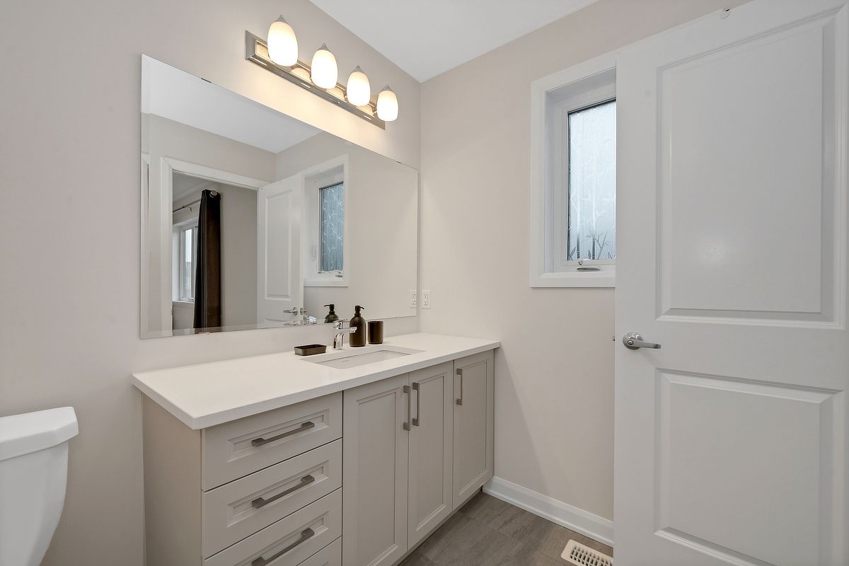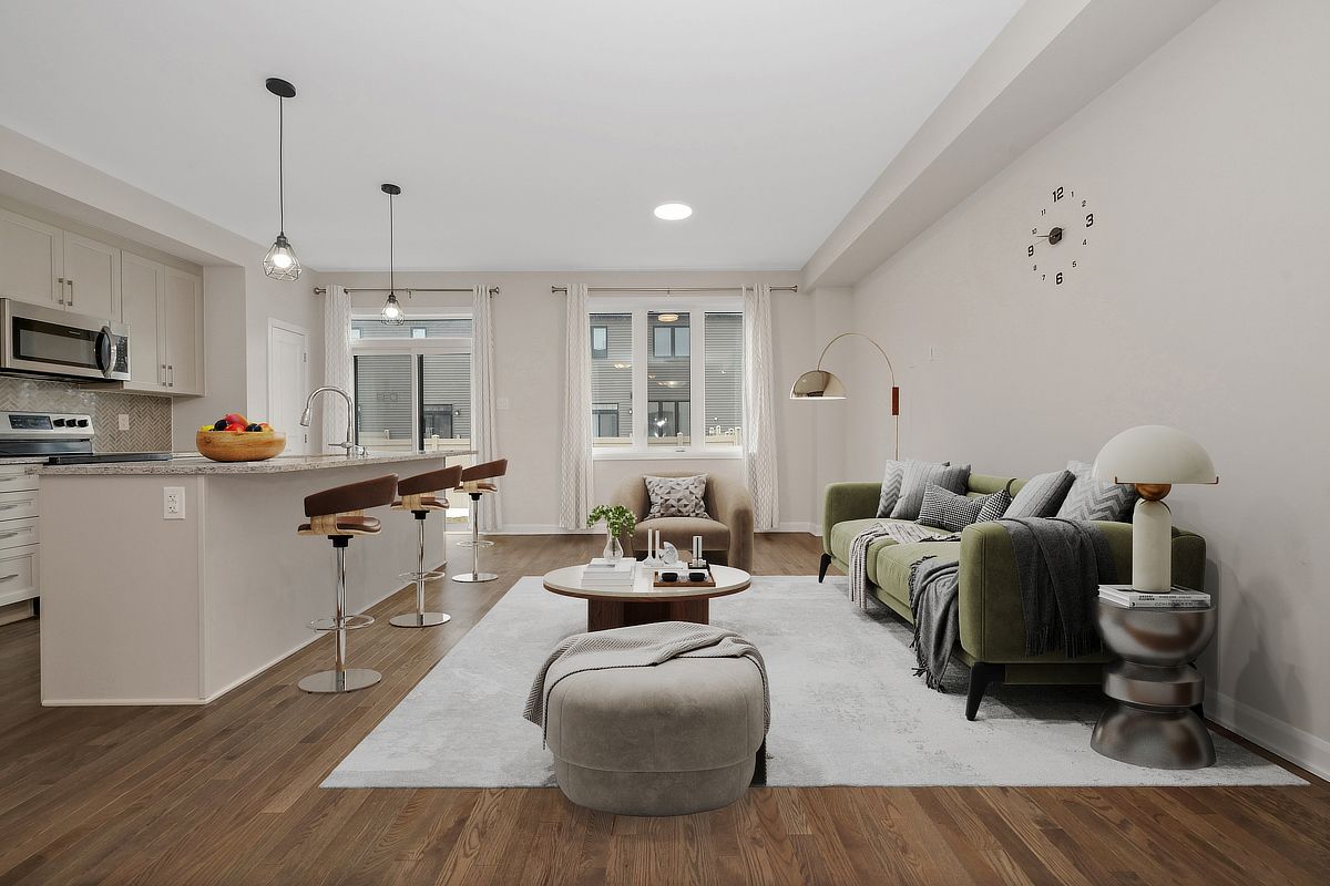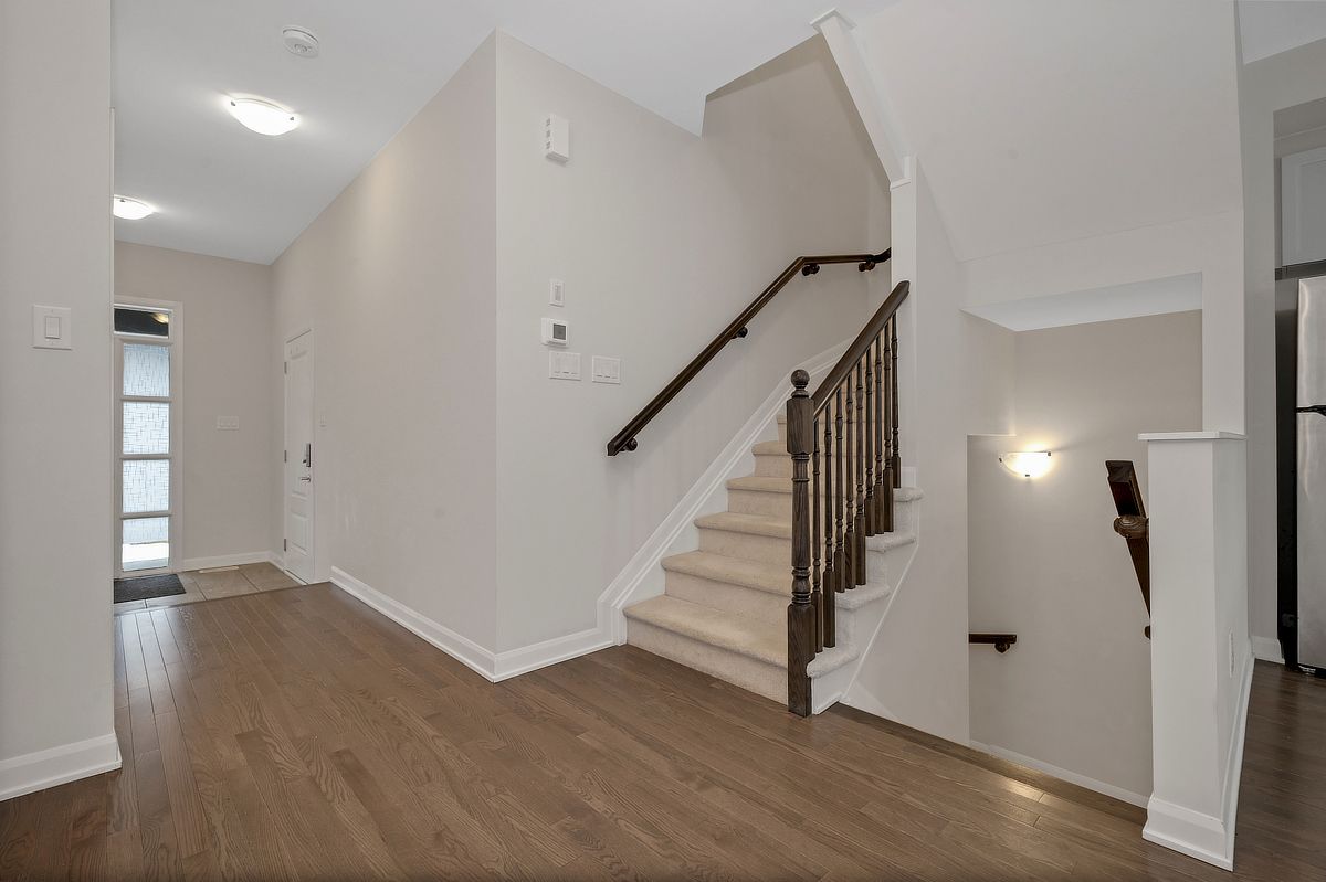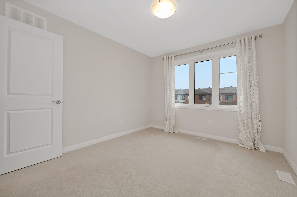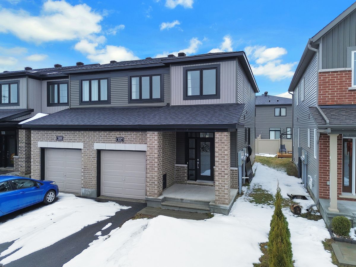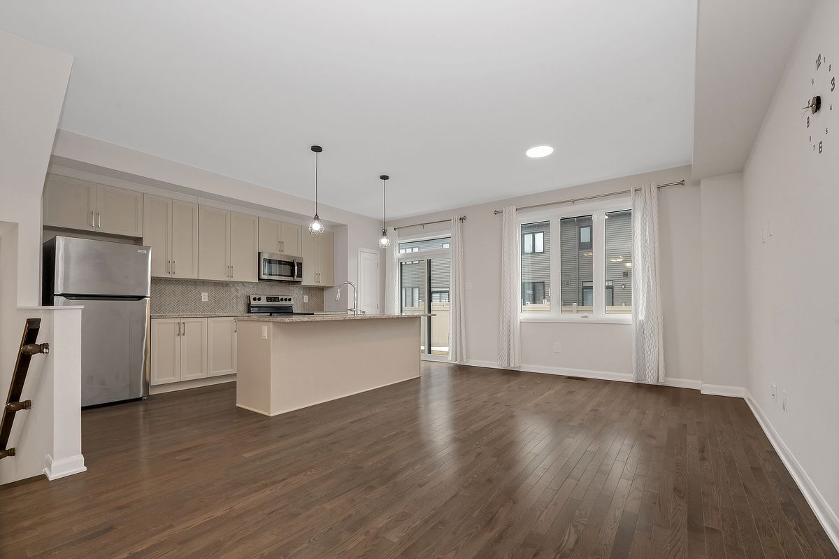 Sunlight lingers a little longer here. Built in 2022, this beautifully maintained monterey end unit townhome in quinn's pointe offers the extra windows, added privacy, and enhanced curb appeal that make end units so desirable, all in one of ottawa's fastest growing, family friendly communities. Step inside to an open concept main floor where hardwood flooring and expansive windows create a bright, welcoming atmosphere. The spacious living and dining area flows effortlessly, ideal for both everyday living and entertaining. At the back of the home, the kitchen is both functional and inviting, with ample cabinetry, generous counter space, and a sunlit eat in area overlooking the backyard. Upstairs, the primary bedroom offers a peaceful retreat with a walk in closet and private ensuite bathroom. Two additional well proportioned bedrooms and a full bathroom provide flexibility for family life, guests, or a home office. The finished basement extends your living space with a versatile recreation area, perfect for movie nights, a playroom, or a quiet workspace. Bright, functional layout located in sought after quinn's pointe, close to parks, schools, shopping, and transit, this home delivers the ideal balance of modern living, space, and convenience. Some photos have been virtually staged.