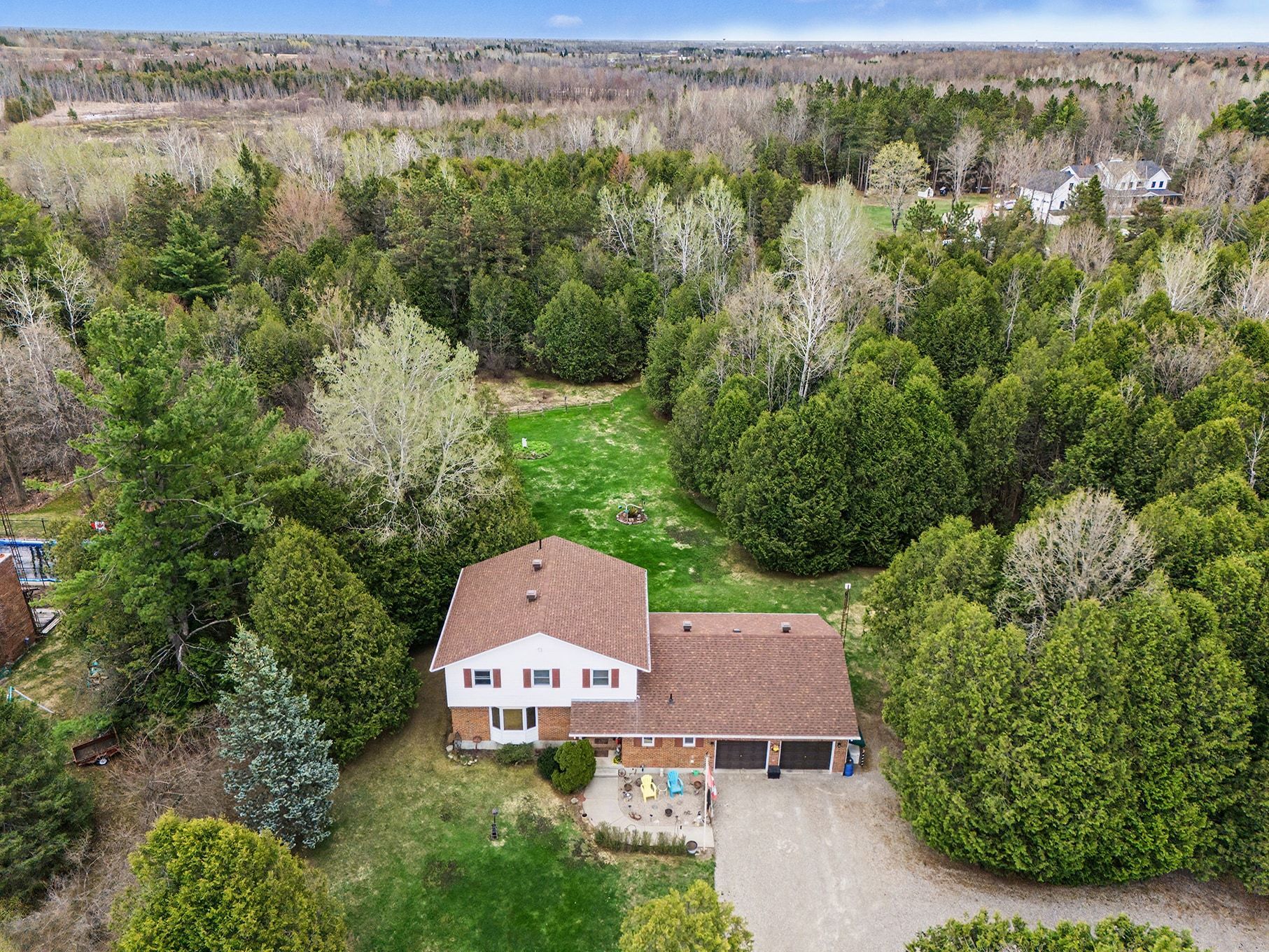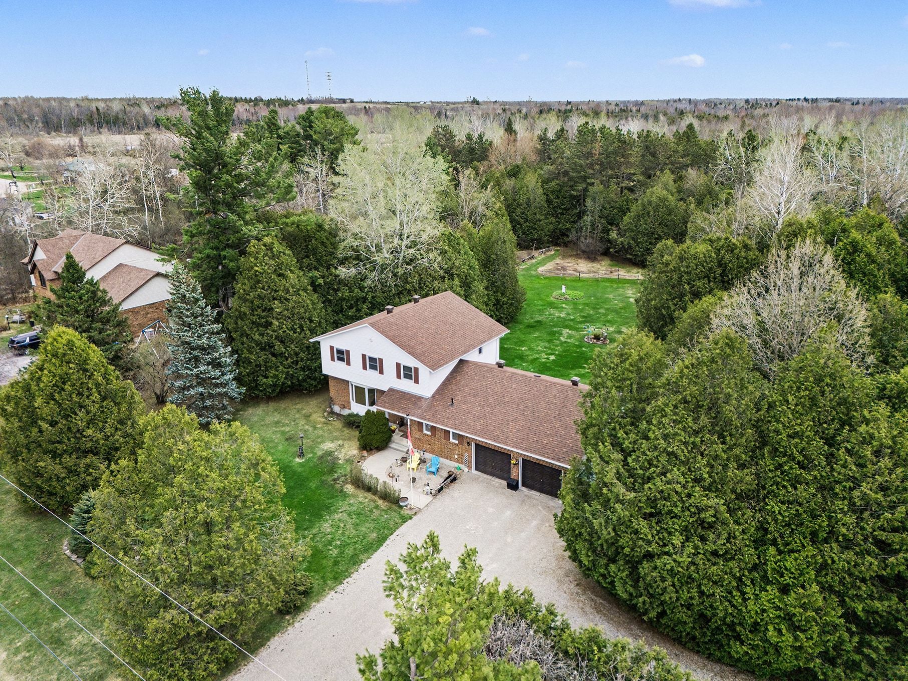 This wonderful property offers a serene and peaceful country setting. Located on over 2 acres & nestled among the tress this home provides plenty of privacy & an expansive backyard to enjoy. Gather around the firepit & make smores with the kids for dessert after dinner. Or relax in the 3 season sunroom & watch the young ones play. As you enter the home you are welcomed into the generous foyer where you can then enter the inviting living room with bay window overlooking the front yard. Adjacent to the living room is the dining room with patio doors to a deck. Next is the thoughtfully & recently renovated kitchen with island, plenty of storage & a breakfast nook with bay window. From the breakfast nook you move into the large sunken family with propane free standing stove to enjoy on cooler nights & also has access to outside. Off the family room is the 3 season sun room. The main floor is also home to the laundry/mudroom with garage access & a 2 pc bath. The spacious & conventional lay out of this home has the 4 bedrooms, including the large master suite on the second level. The other 3 bedrooms are of a generous size & share a 5 pc bath. The master has a 5 pc ensuite with jacuzzi tub & double closet. The lower level is home to an oversized recreation room, home office, utility room and cold cellar pantry as well as additional storage & workshop. Your are only a minute to the village of numogate on hwy 15 & access to the ovrtrail where you can take a leisurely bike ride to franktown or carleton place. Please note the home is wired with a generac & the garage has a 240 volt outlet. A list of updates are in the realtor remarks.