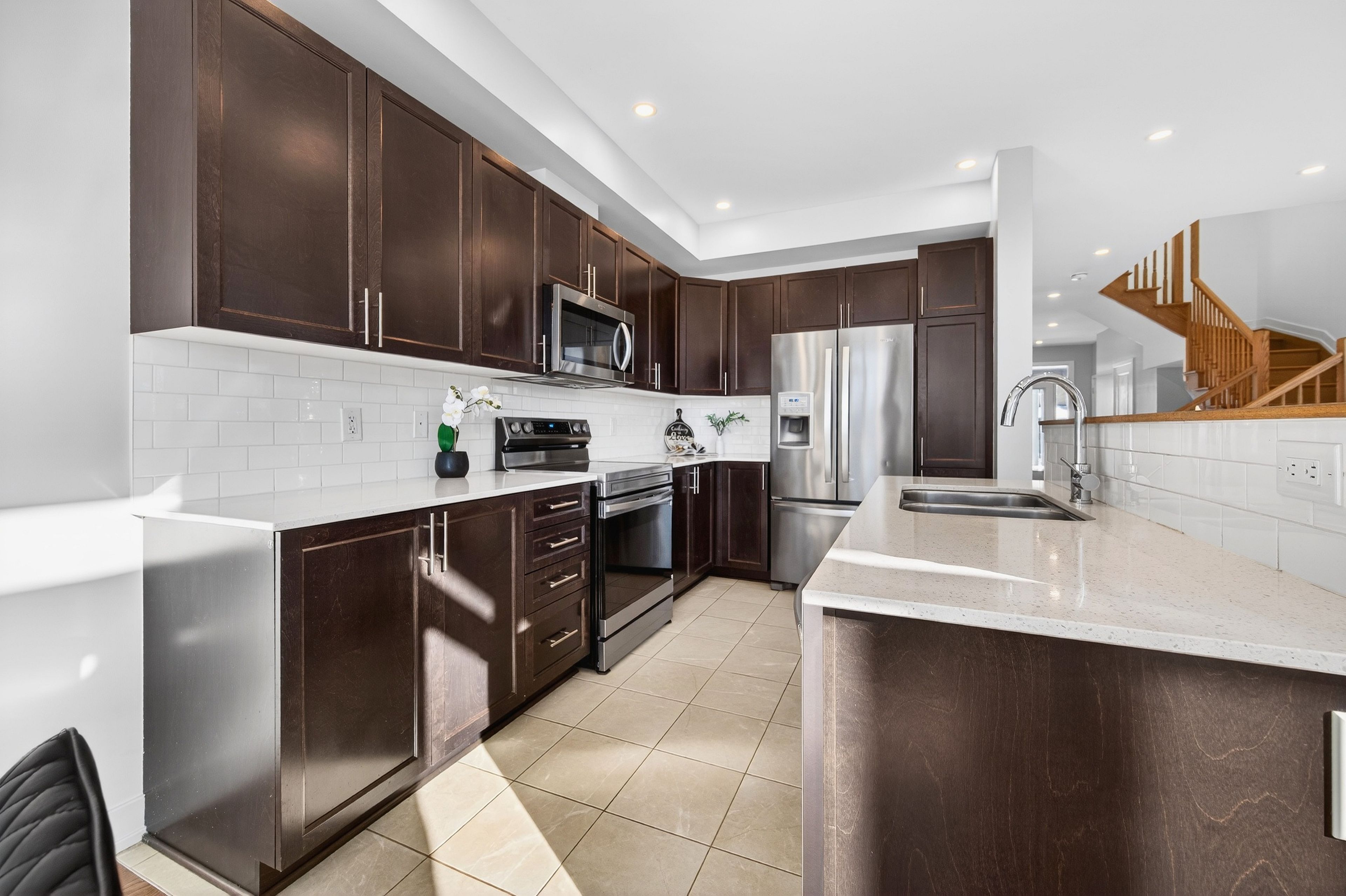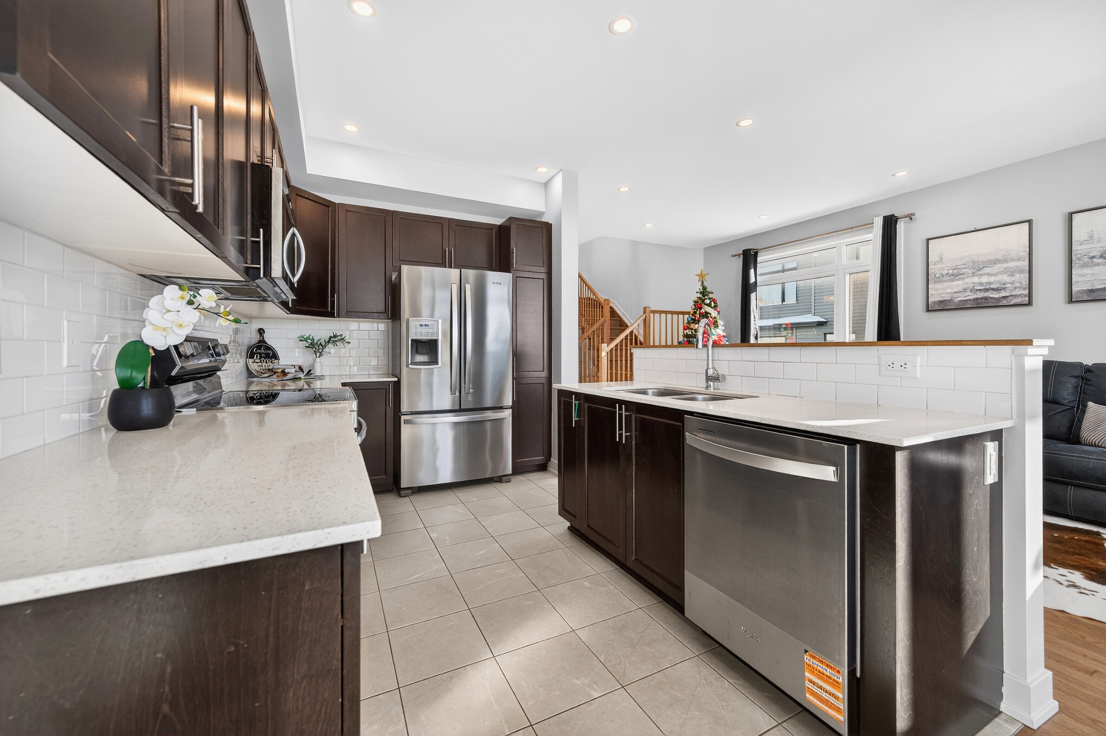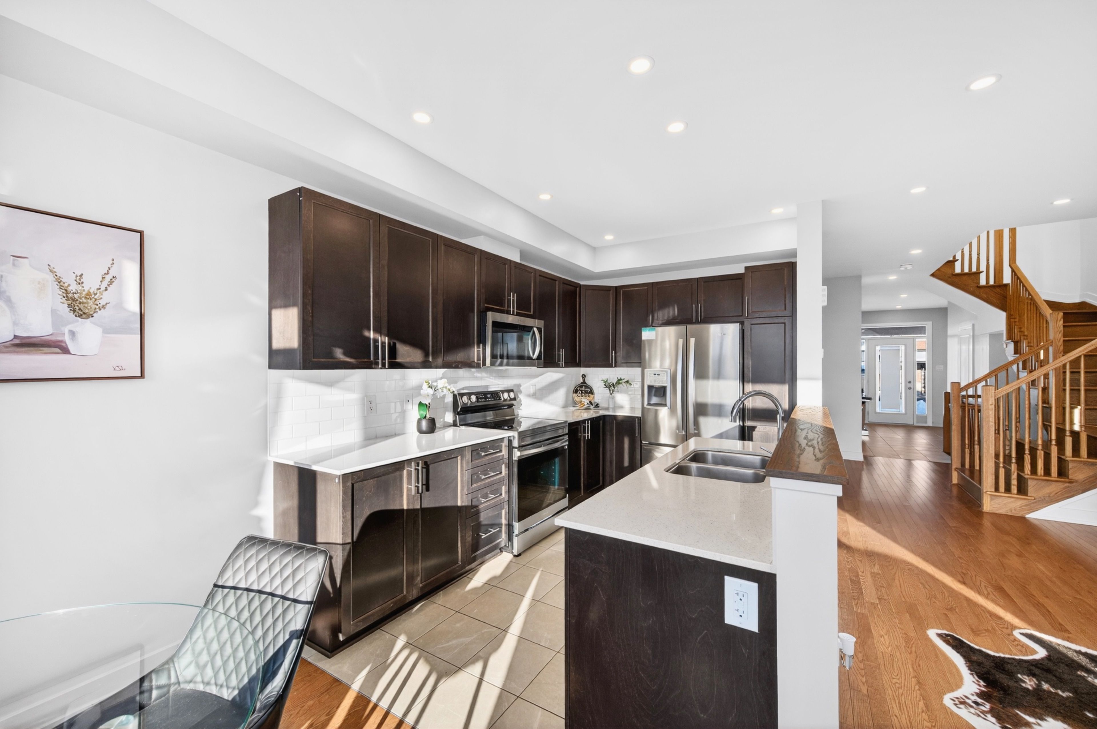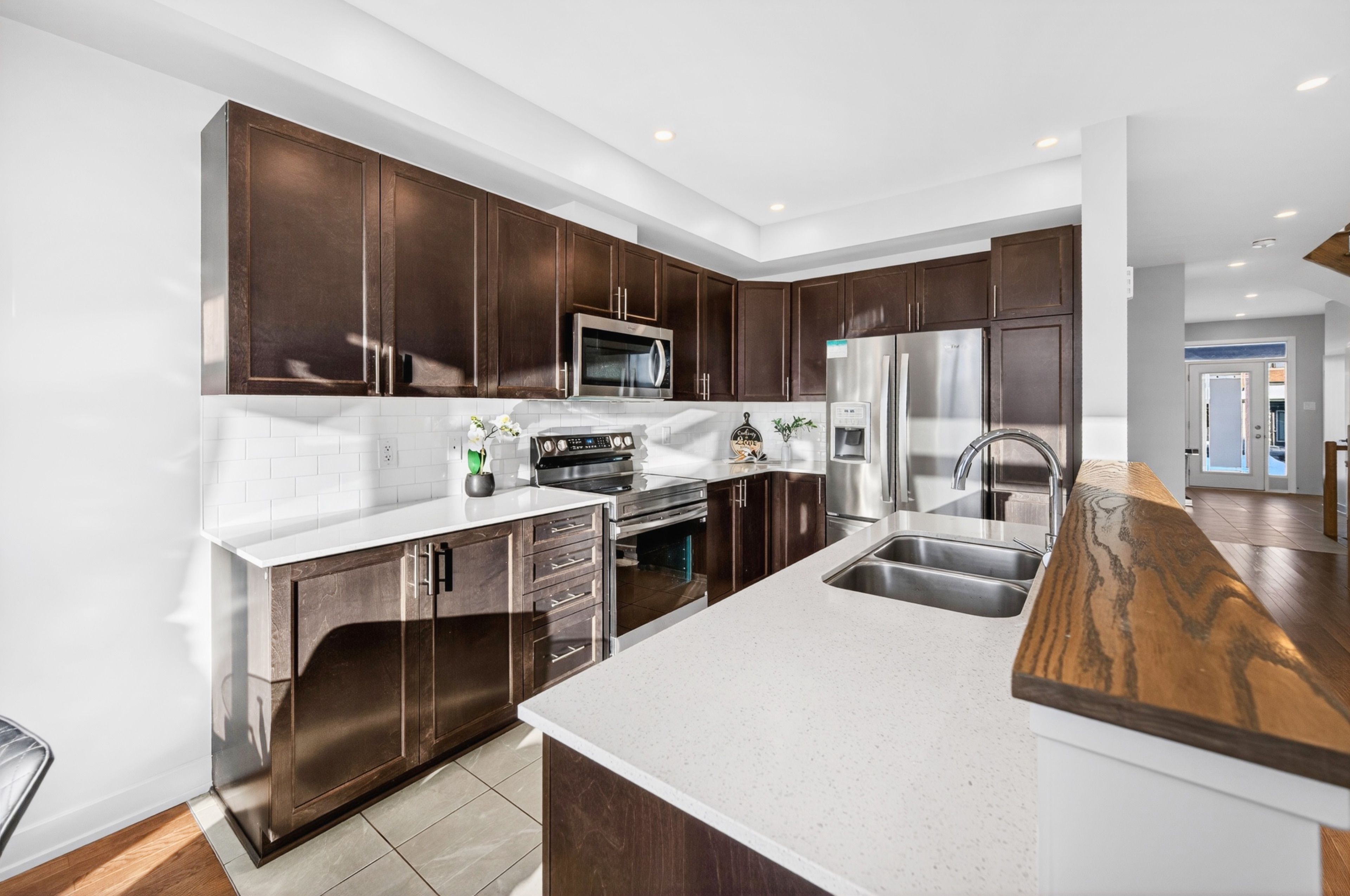 Rare gem - best-in-class end unit with no rear neighbours! Experience elevated living in this stunning claridge-built cypress end unit townhome, perfectly situated on a premium lot with exceptional privacy. Built in 2021 and lovingly maintained, 307 ibanez walk offers 3 bedrooms, 2. 5 baths and an unbeatable combination of space, style, and turn-key convenience. Enjoy a large west-facing, fully fenced backyard (pvc done in 2023) with no direct rear neighbours - a rare and highly sought-after feature. Inside, the home impresses with a bright, sophisticated layout that is virtually carpet-free, featuring a separate designated dining room, hardwood stairs, and tasteful finishes throughout. Recent high-end upgrades (2025) include modern lighting, pot lights, and new stainless steel stove and dishwasher. Upstairs, the hardwood floors continue throughout, leading into the spacious primary bedroom features a luxurious ensuite with double sinks-perfect for busy mornings along with a walk-in closet. The finished basement adds valuable living space with a cozy rec room and gas fireplace, and is the only area with carpet, making it an ideal retreat. Offering 1,985 sq. Ft. Of total living space (including a 335 sq. Ft. Finished basement), plus a practical extended interlock walkway extension (2023), this home checks every box. Located in a family-friendly community close to schools, parks, and all amenities, this is the one you've been waiting for; don't miss out!