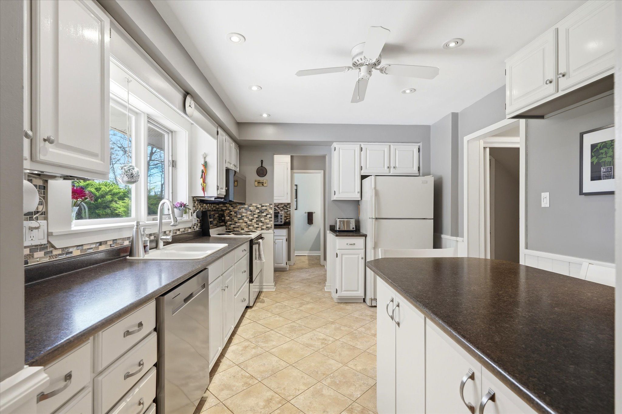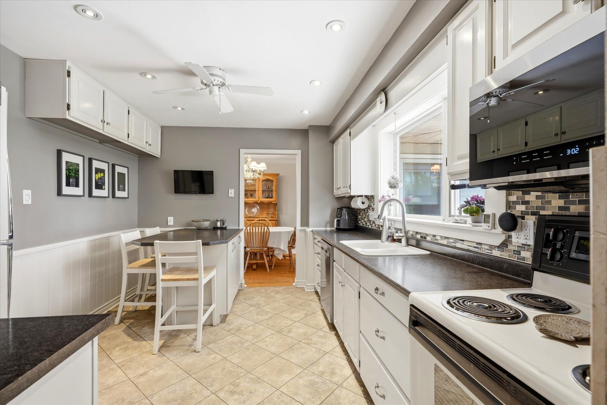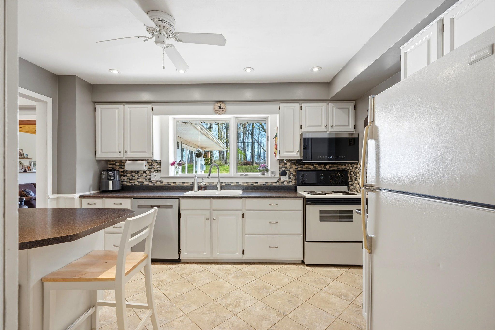 • Spacious family room with vaulted ceilings and oversized windows.
