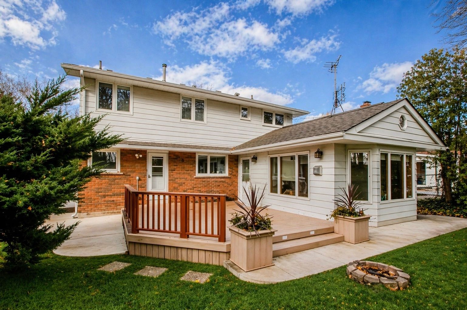 Welcome to this beautifully maintained family home in burlington's highly sought-after palmer neighbourhood, offering space, warmth, and an incredible setting on a private 50 x 150 ft lot backing onto green space. Surrounded by mature trees and nestled in a family-friendly community close to schools, parks, trails, shopping, transit, and highway access, this is the kind of home families wait for. Inside, you'll find a functional layout with an abundance of natural light, featuring both a formal living room and separate dining room, ideal for entertaining and everyday living. The heart of the home is the stunning rear family room, showcasing soaring vaulted wood ceilings, exposed beams, a gas fireplace, skylight, and oversized windows overlooking the peaceful backyard - a truly special space filled with character and charm. The home offers 5 spacious above grade bedrooms, making it an excellent option for growing families or those needing flexible work-from-home space. The finished basement adds even more versatility with a large rec room and a cozy fireplace. Enjoy outdoor living from the expansive front and rear vinyl decks, perfect for relaxing or hosting family and friends. Additional highlights include a 4-car driveway, attached garage, butler's pantry for exceptional storage, updated furnace (2024), roof (2023), a/c (2018), and hot water tank (2026). Lovingly cared for and full of timeless appeal, this is a rare opportunity to own a spacious home on one of palmer's most desirable lots.
