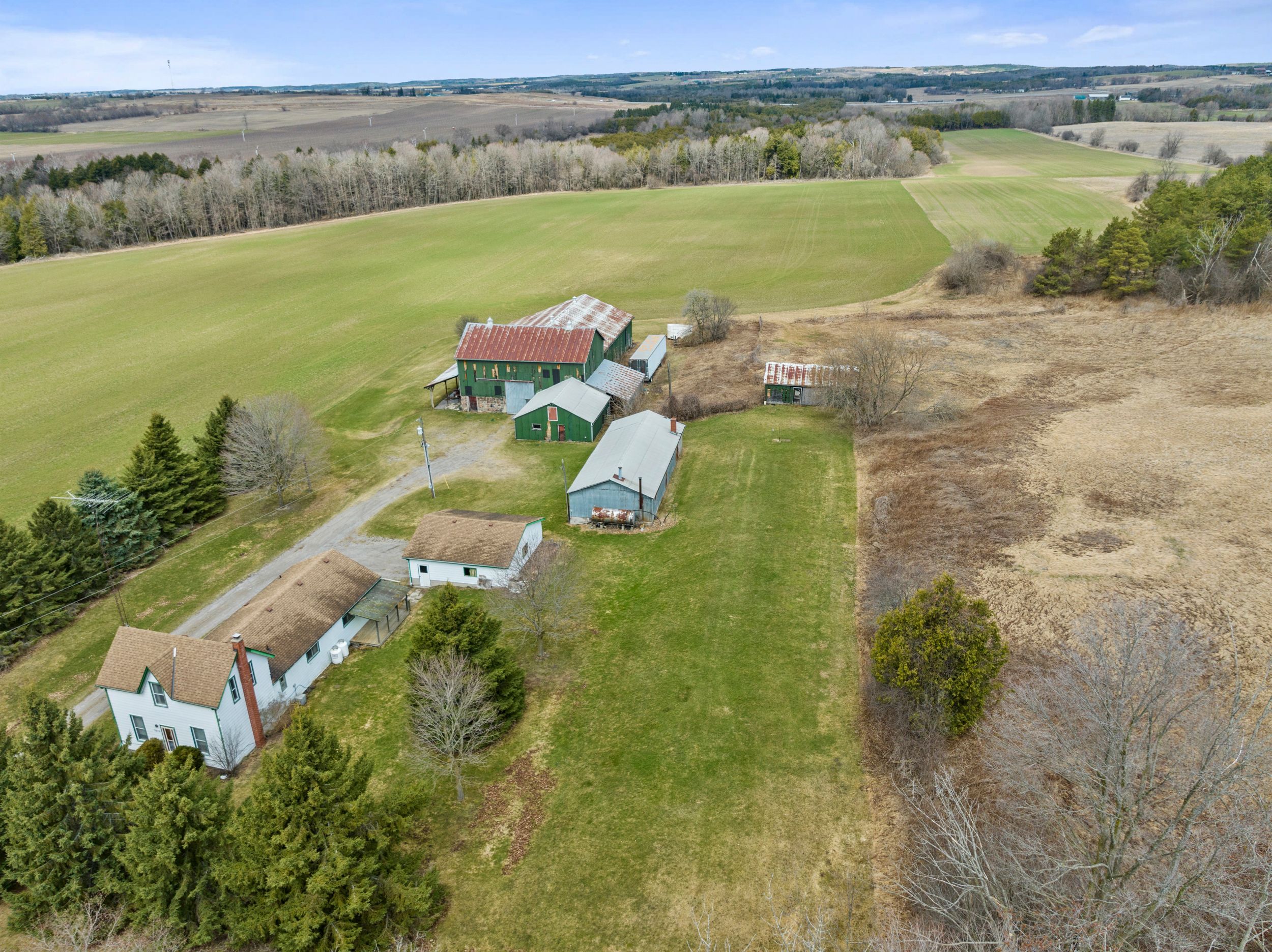 Set on 97. 921 sprawling acres of scenic countryside, this picturesque 1871 farmstead offers a rare opportunity to own a piece of rural paradise with incredible potential. Abundant water source on the property with a live flowing stream that runs through which can be used for irrigation of food crops! The charming 1. 5-storey main house offers four bedrooms and two full kitchens, one on the main floor and one in the basement, making it possible for multi-generational living or future rental possibilities. The upper level offers a cozy den and additional bedroom in a thoughtfully designed upper-level addition. Built on a solid stone foundation, the home's water is fed by a natural stream located on the property, adding to its authentic country character. A fully serviced detached bachelor layout bunkie, complete with its own kitchen, bathroom, water, and separate septic system, provides the perfect setup for guests or possible rental income. The property also includes a detached 2-car garage, a practical toolshed, and a spacious barn, all with hydro, offering endless space for equipment, hobbies, or agricultural use. Whether you're dreaming of a hobby farm, income property, or simply a peaceful place to call home, this unique offering delivers space, charm, and functionality across nearly100 acres of opportunity.