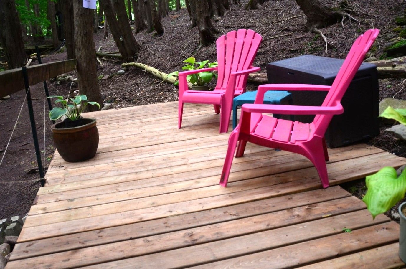 • Beautiful outdoor spaces with pathways, gardens, and apple trees for relaxation.