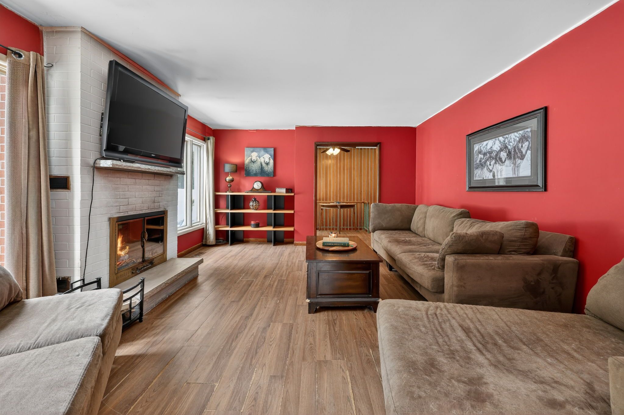 • Bright living room with a wood-burning fireplace for cozy winter evenings.
