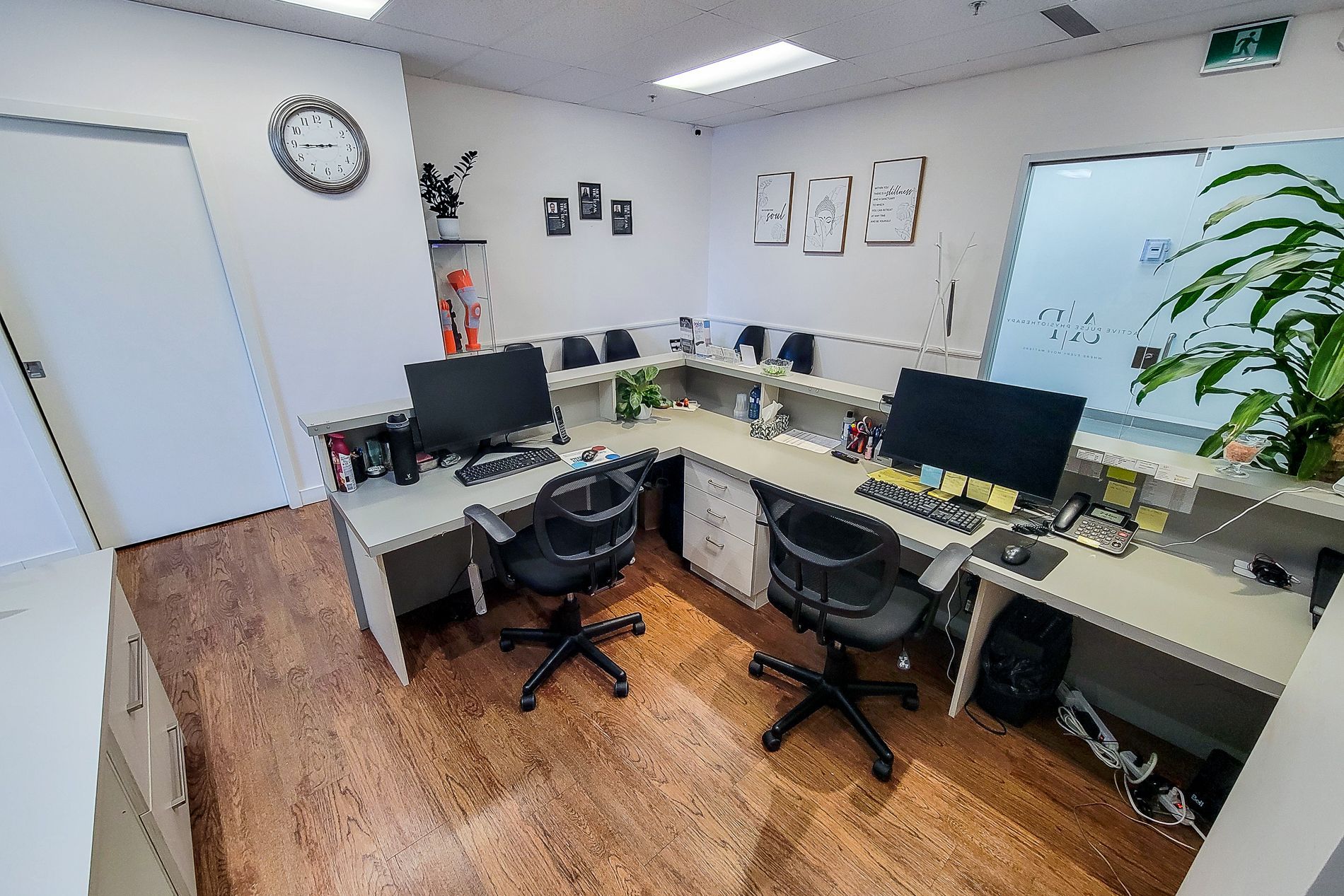 • Includes 3 private offices and a dedicated washroom for convenience.