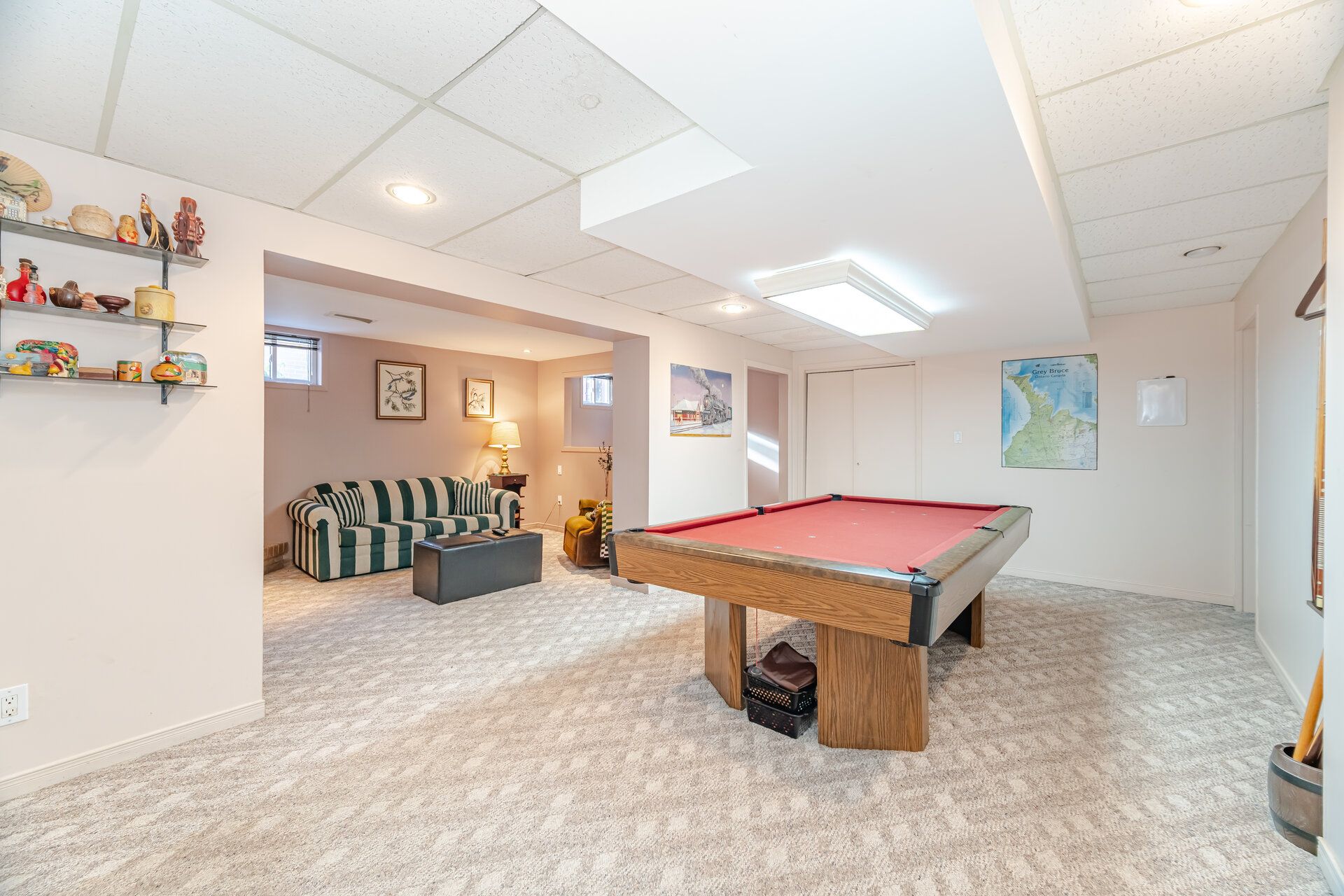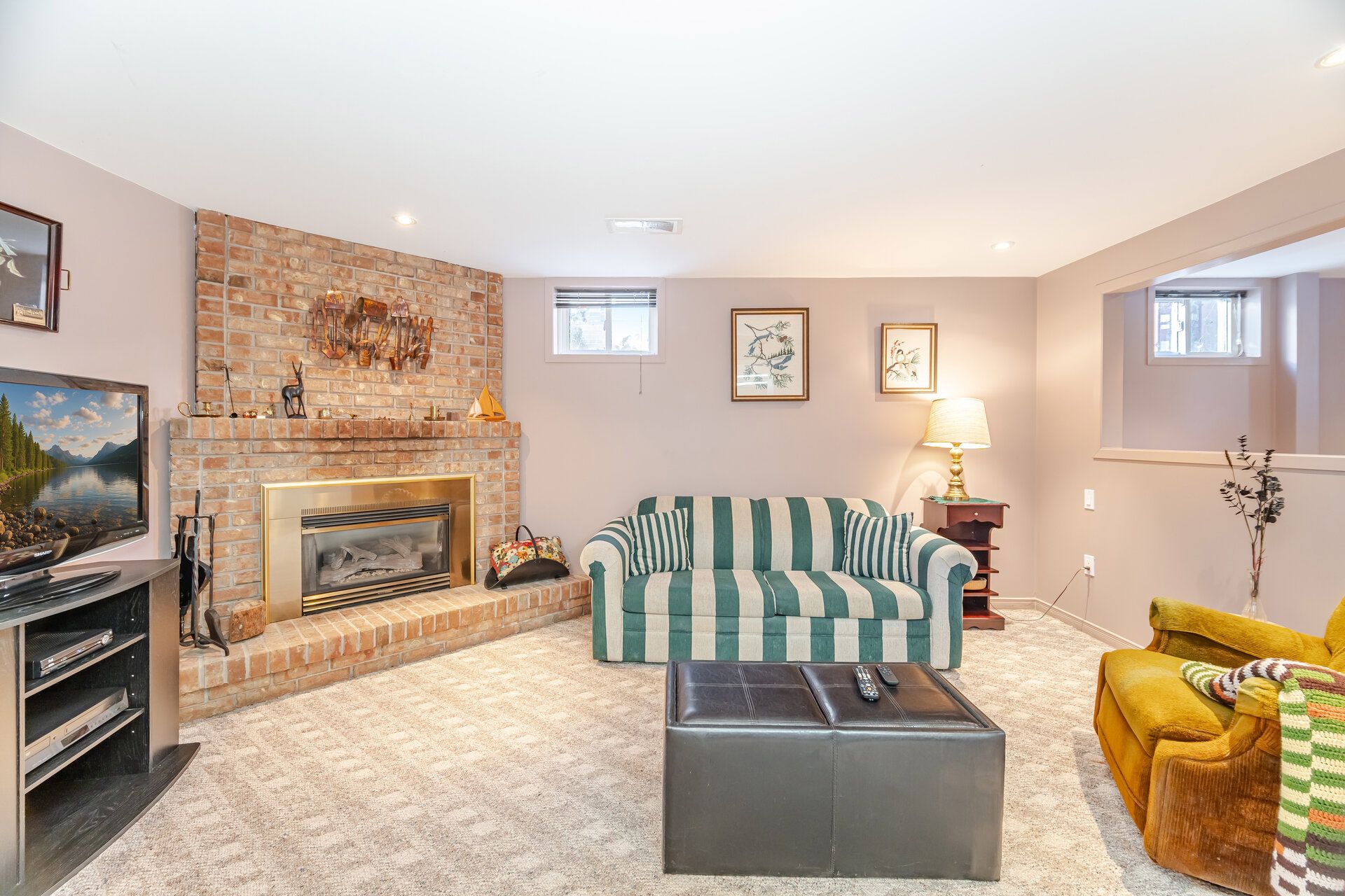 • Finished basement with gas fireplace and additional living spaces.