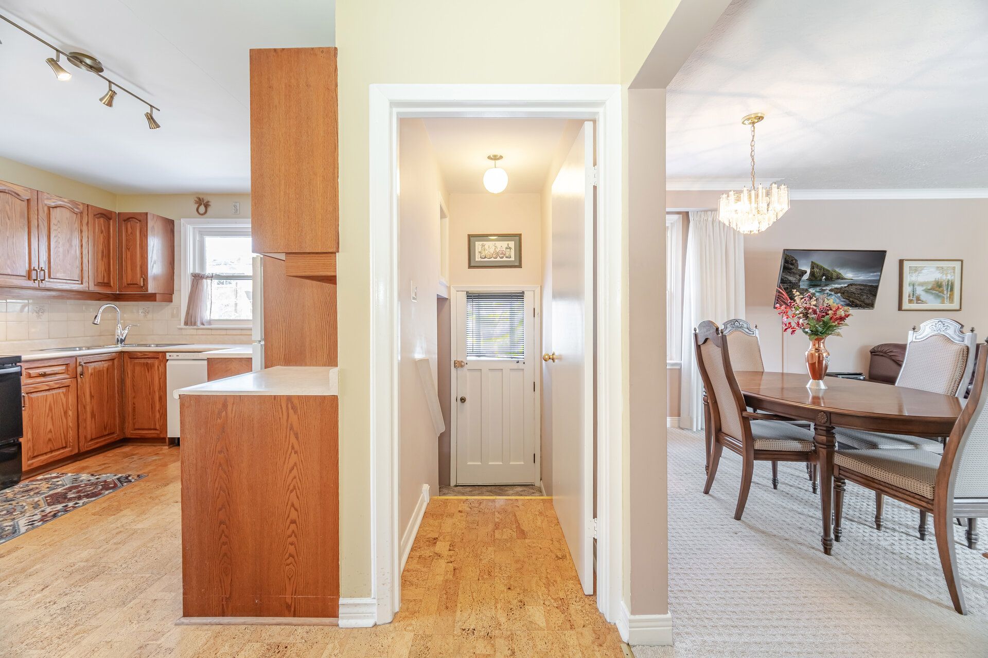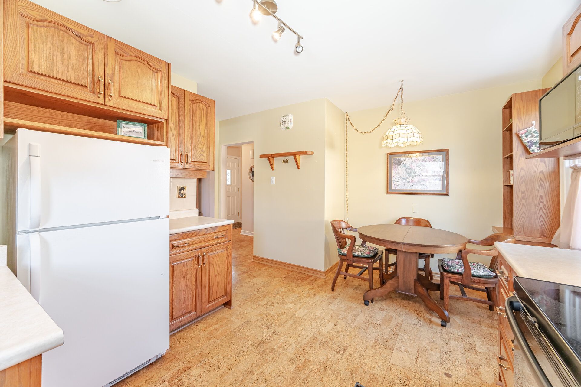 • Durable cork flooring in the kitchen for easy maintenance.