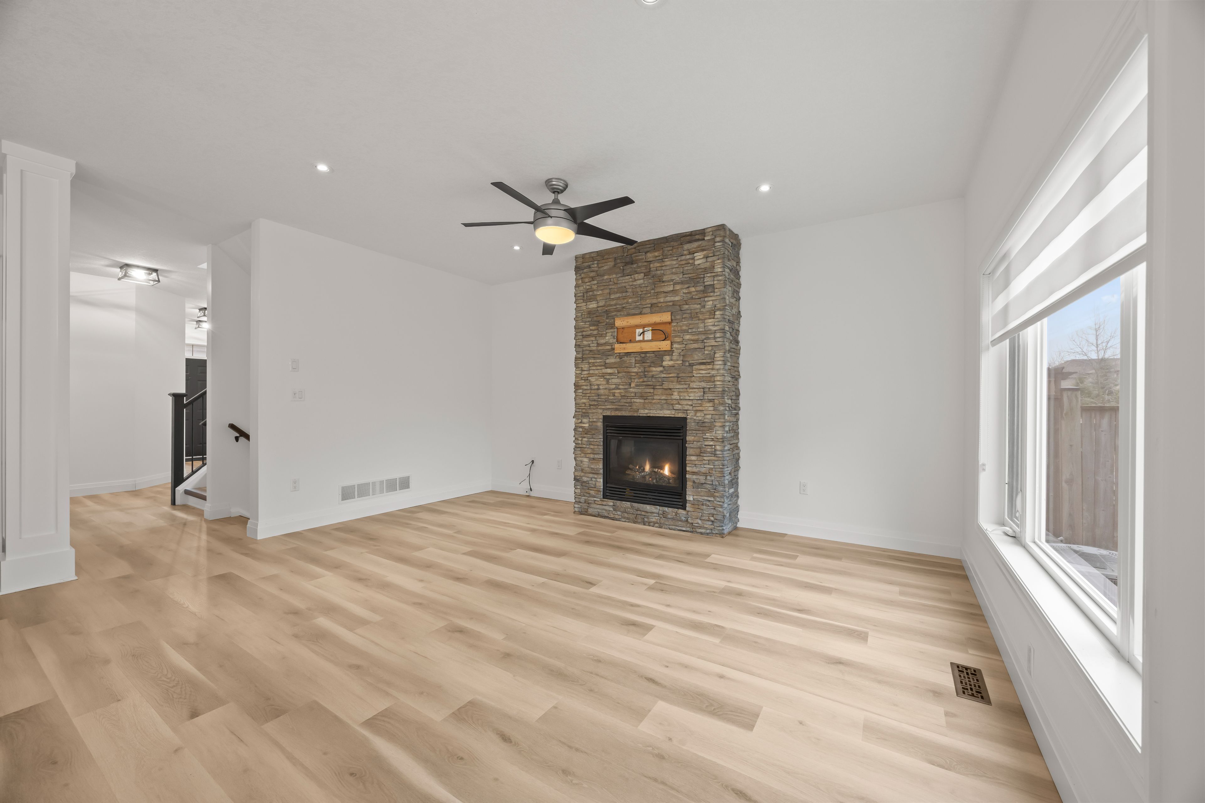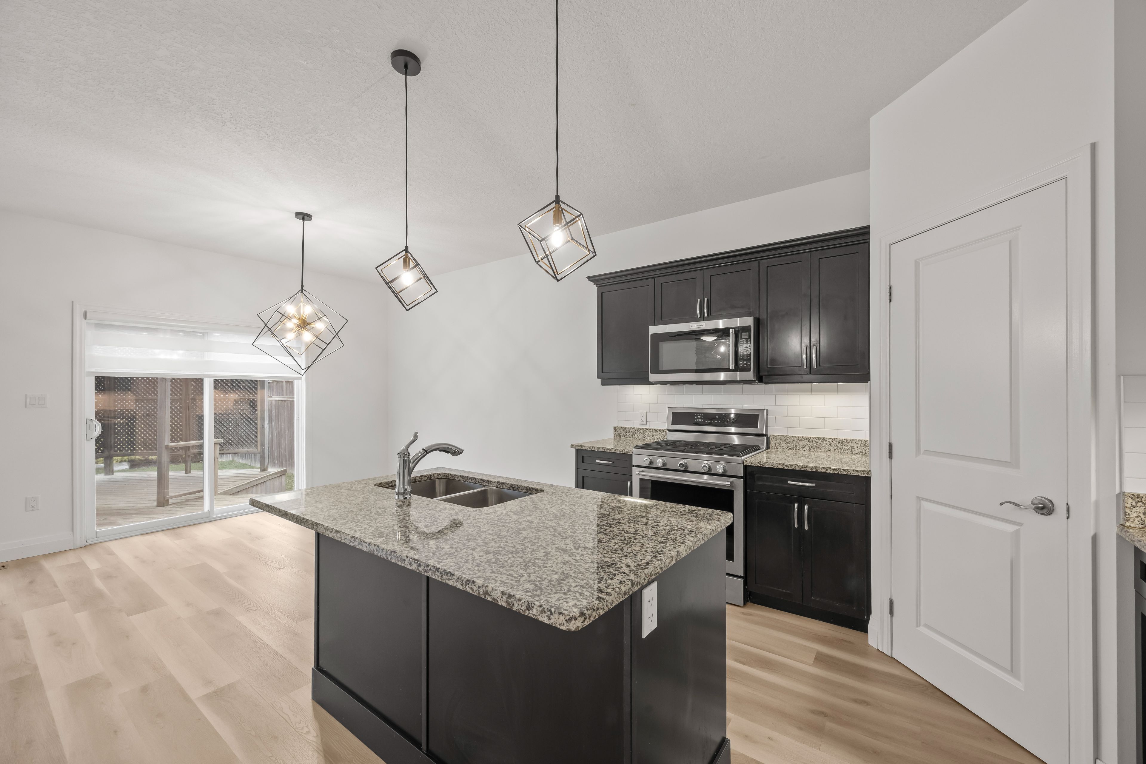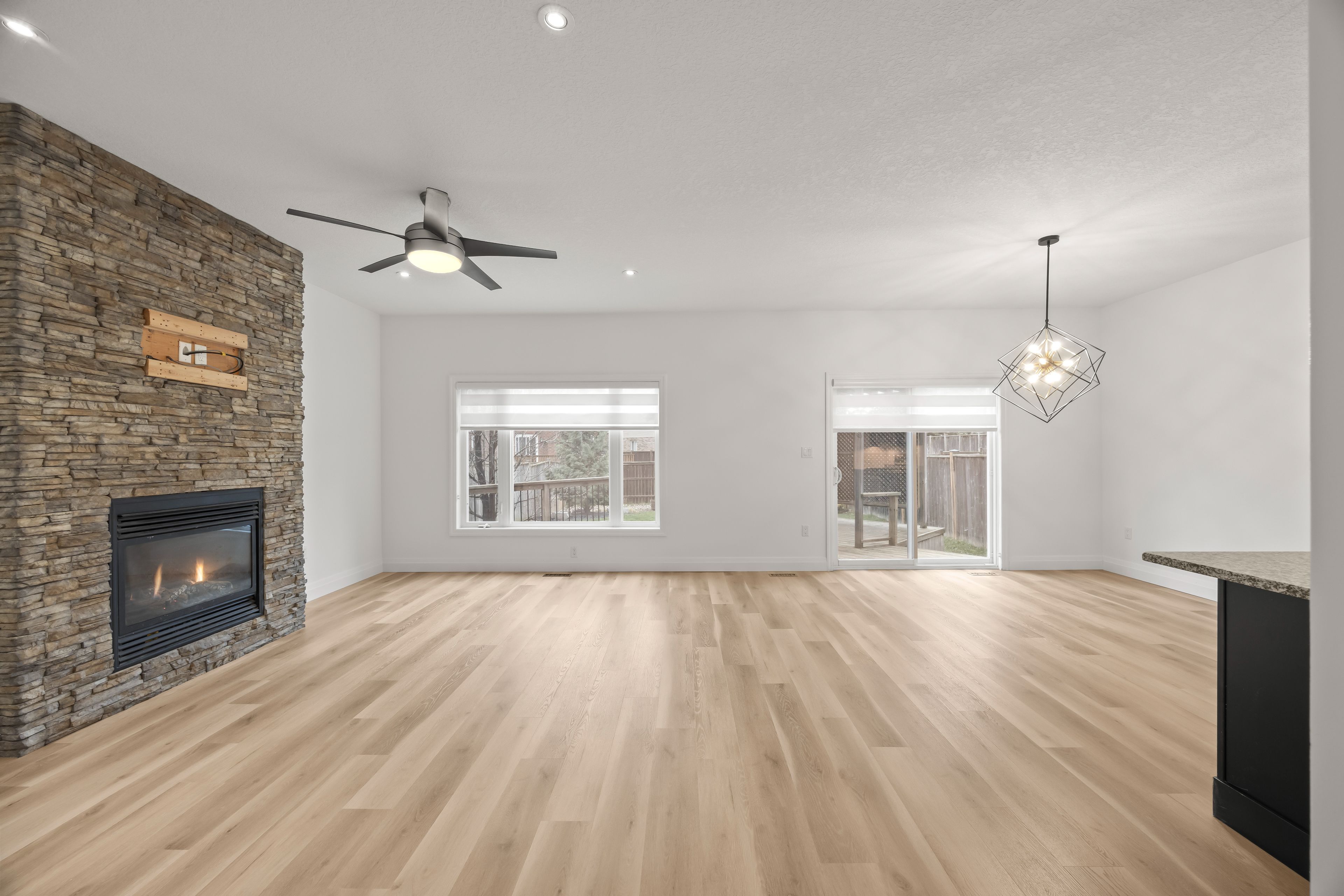 • Open concept main floor with cozy living room and modern kitchen.