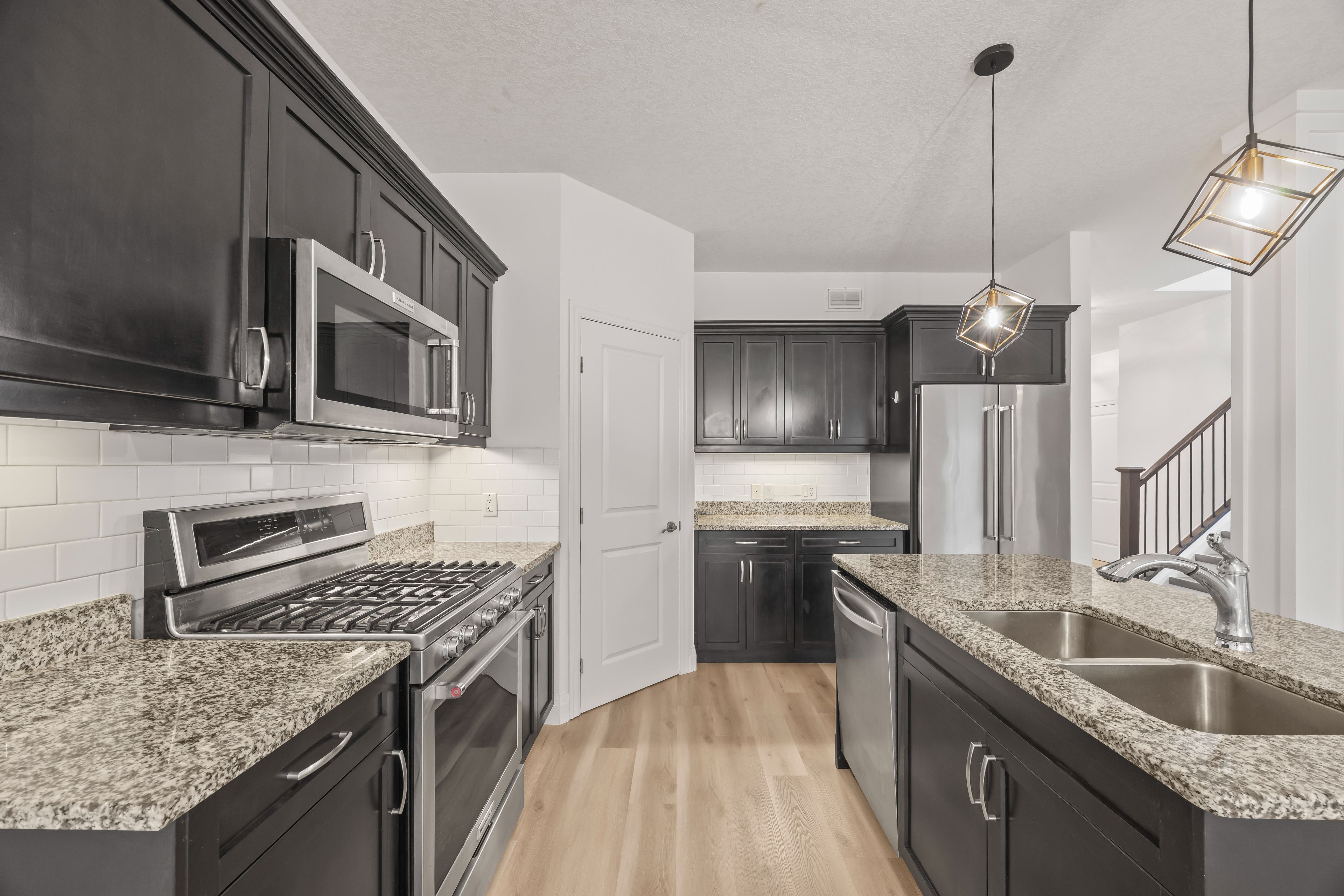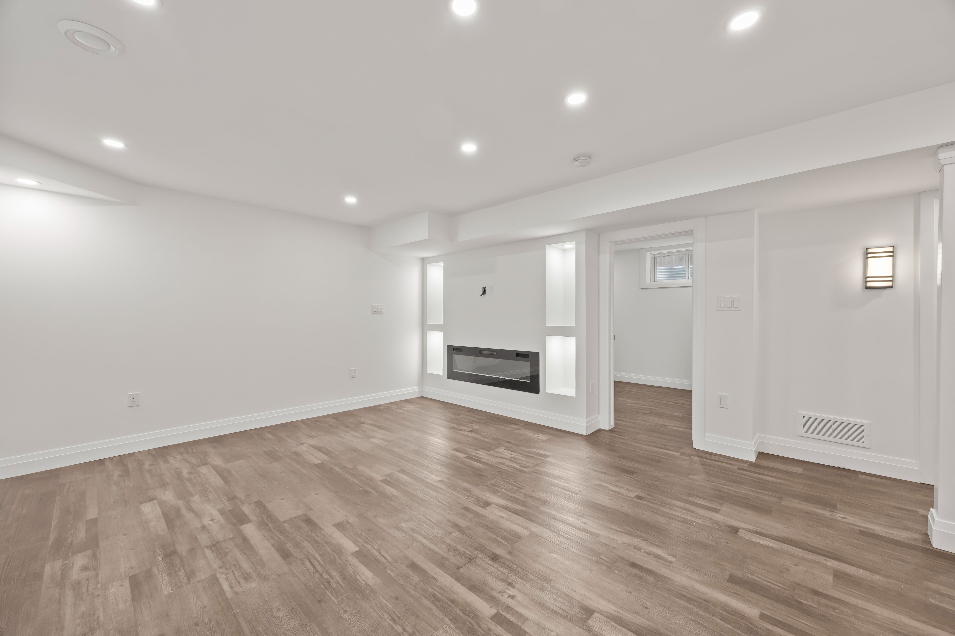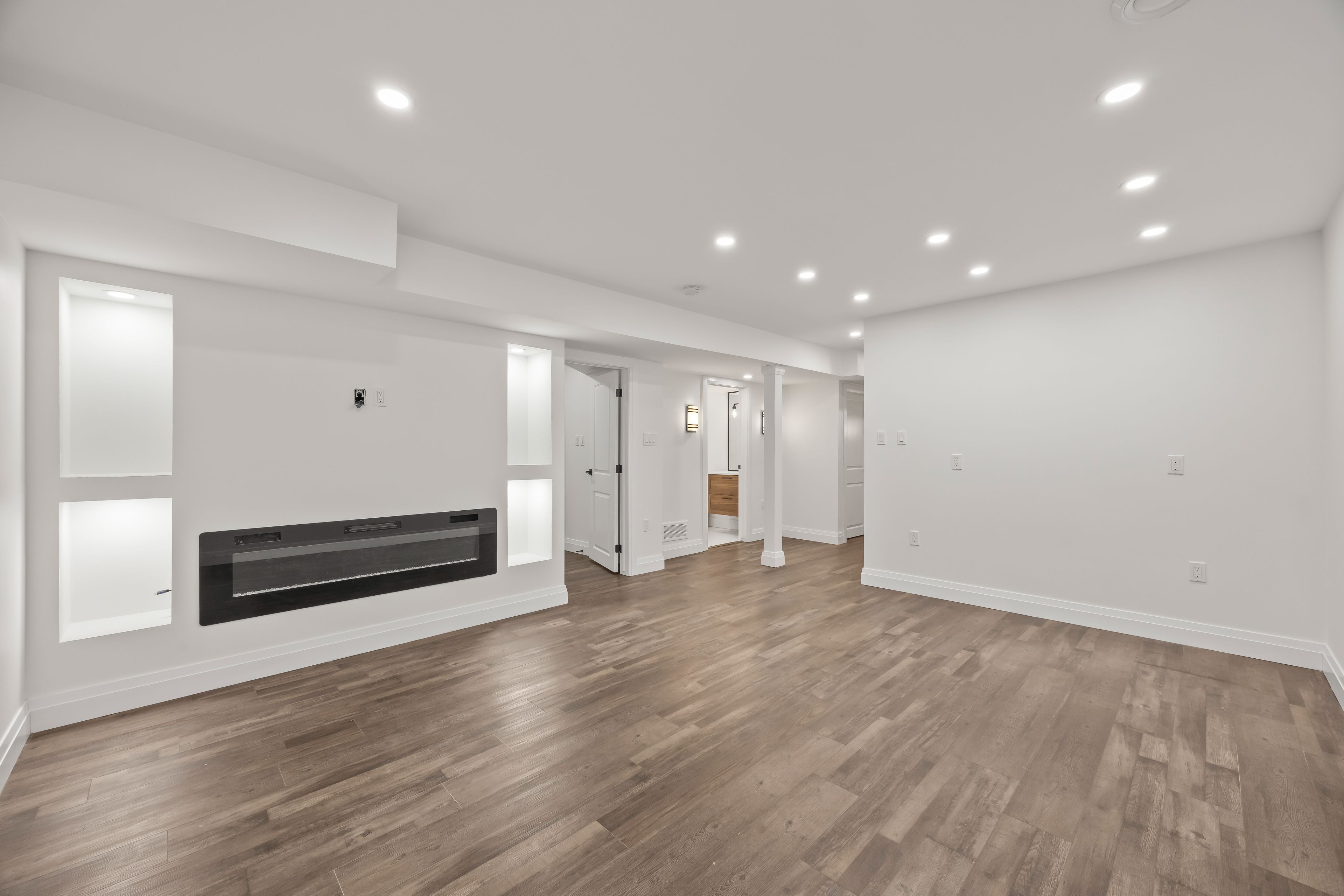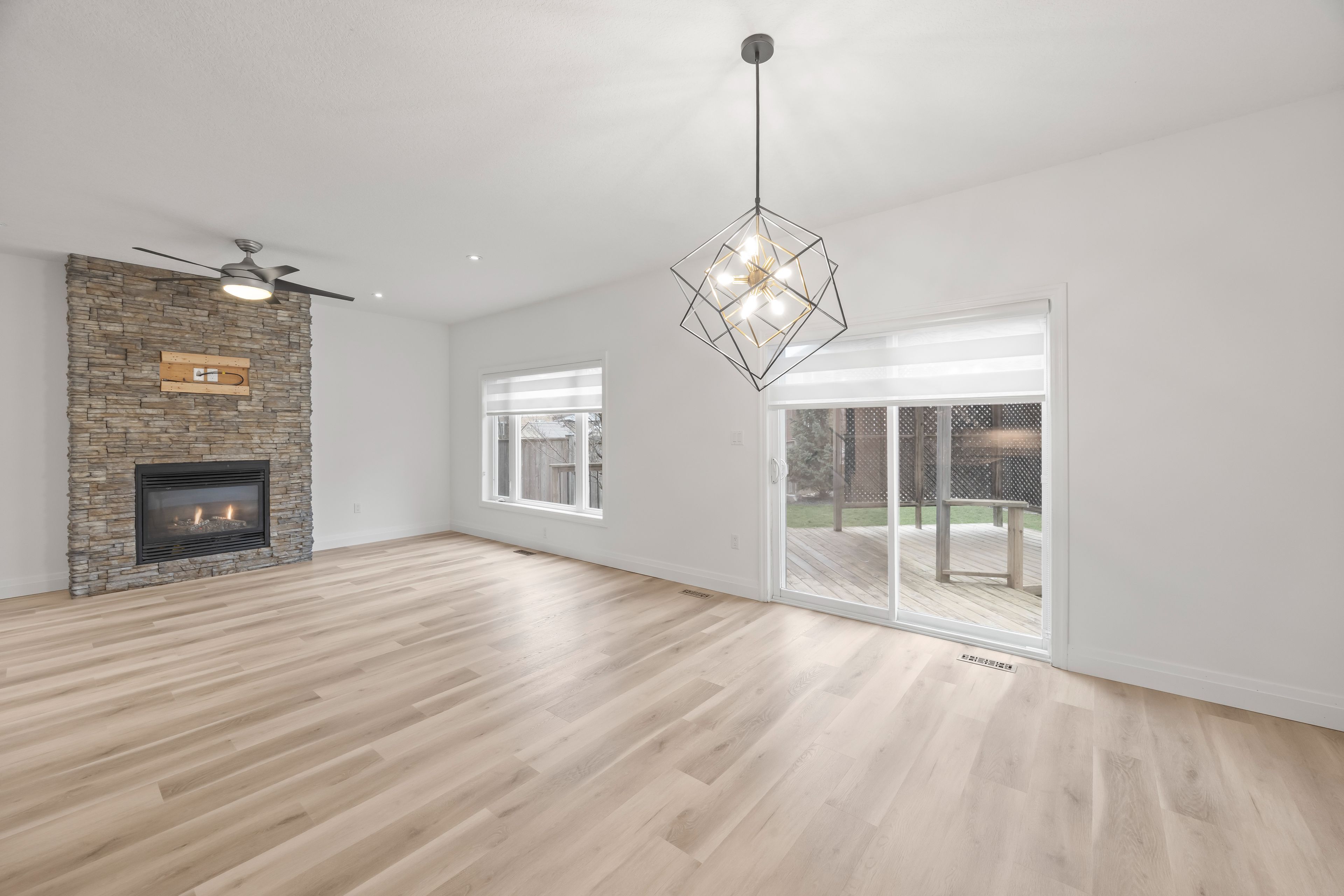 • Open concept main floor with cozy living room and modern kitchen.