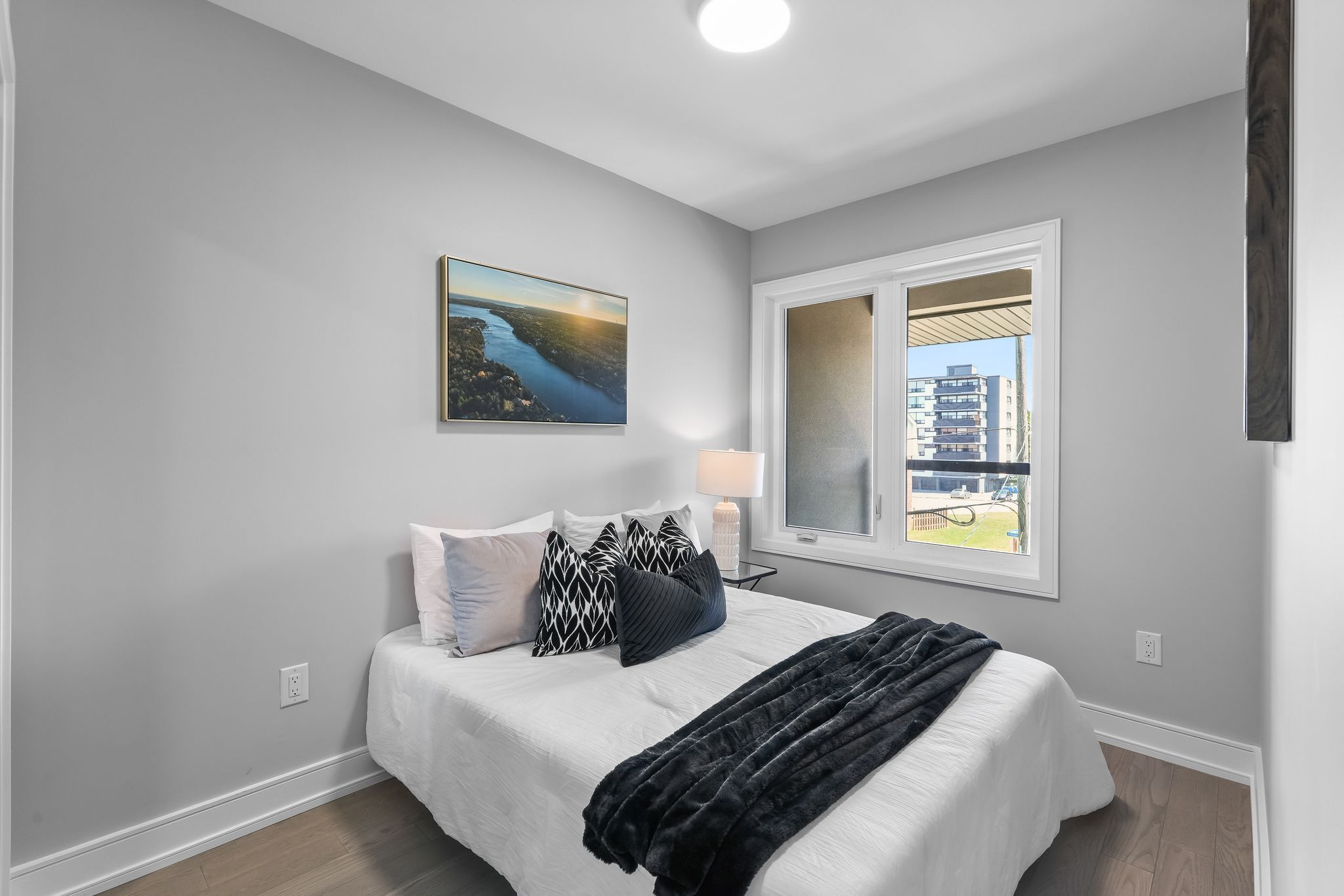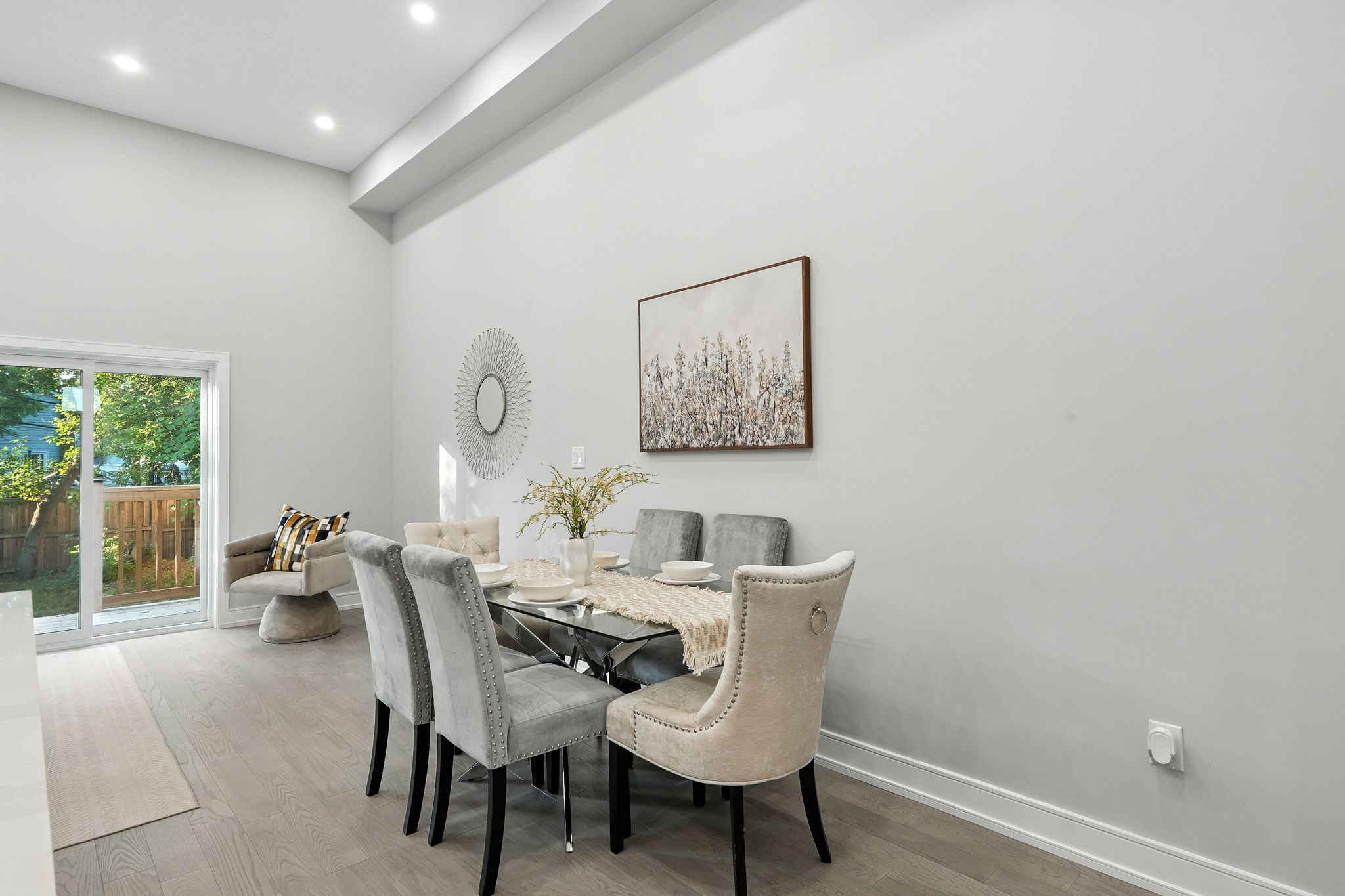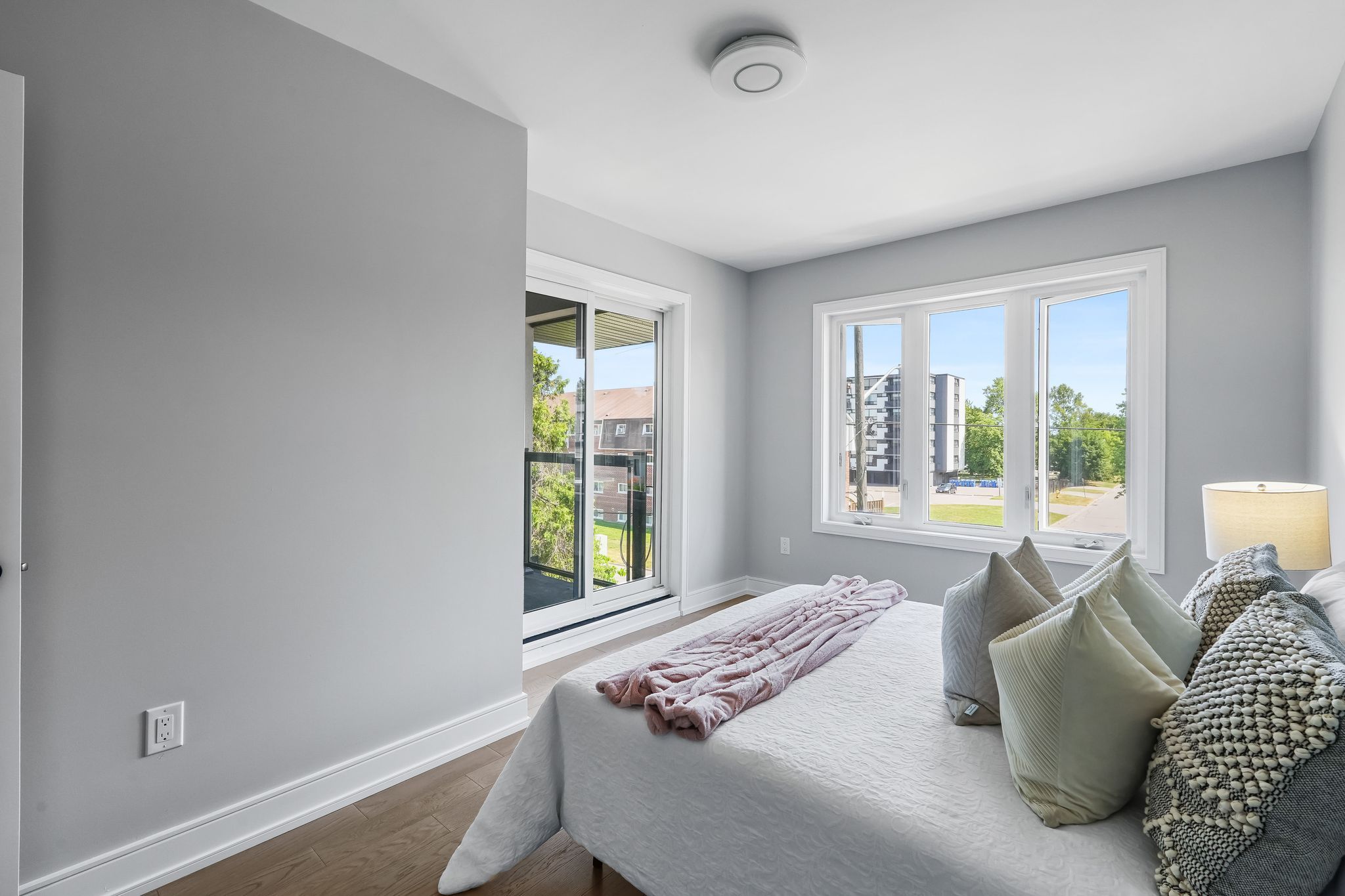 • Open-concept main level with 12-ft ceilings and large windows.