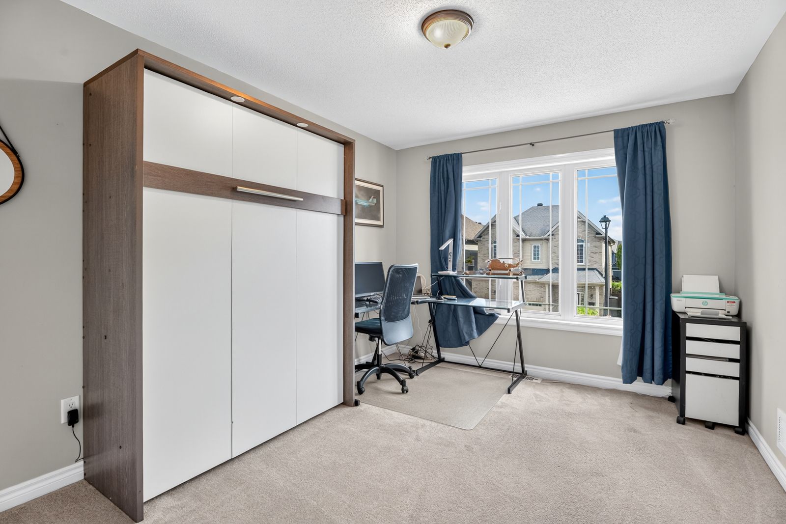 Welcome to the award-winning meadowbrook model by glenview homes elegant design, premium upgrades, spacious living , private balcony, step into luxury with the meadowbrook - a thoughtfully crafted, award-winning home that blends architectural sophistication with everyday comfort. Boasting over 2700sq ft of beautifully finished space, this residence offers a layered open-concept layout, soaring ceilings, and premium finishes throughout. Main floor highlights-grand entrance opens to a formal living and dining area with rich hardwood flooring, main floor laundry room for added convenience. Second floor retreat: ascend the hardwood staircase to a dramatic family room with 13' ceilings cozy up by the gas fireplace or step through double french doors to your private balcony, a perfect space for entertaining, relaxing, or enjoying sunset view. Fully finished basement spent over $10,000 upgrading to legal 2-piece bathroom - ready to upgrade to a full bath (roughed-in for full bath). Ideal for a home gym, media room, or guest suite. Exterior upgrades: over $26,000 spent on professionally upgraded front and backyard landscaping. Location highlights: ideally situated close to schools, shopping centers, nature trails, parks, and quick access to hwy 416 - perfect for families and commuters alike