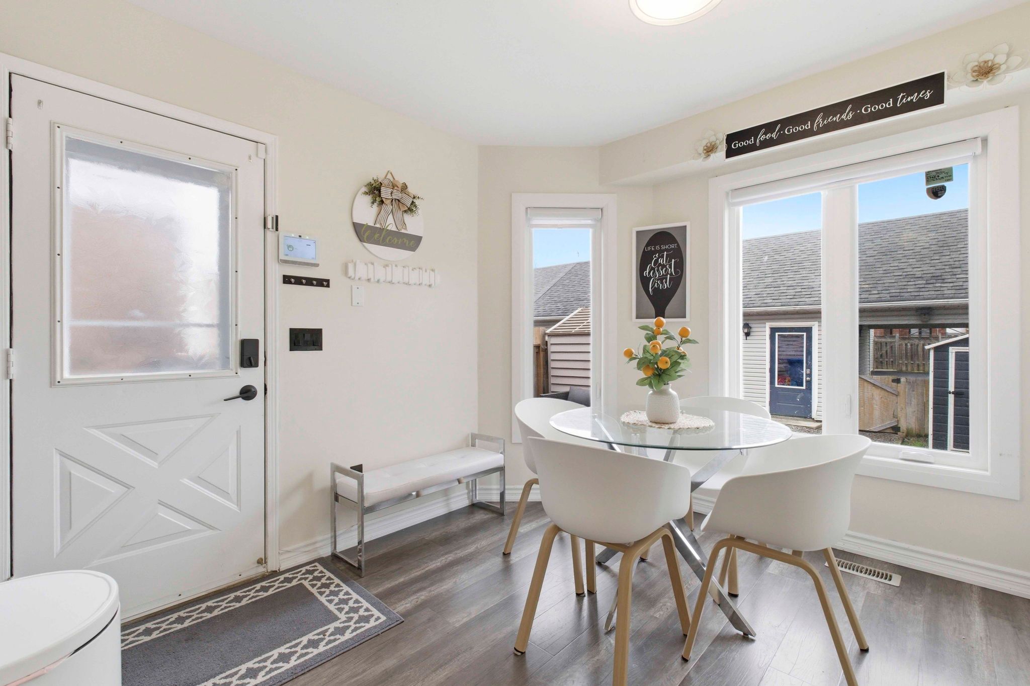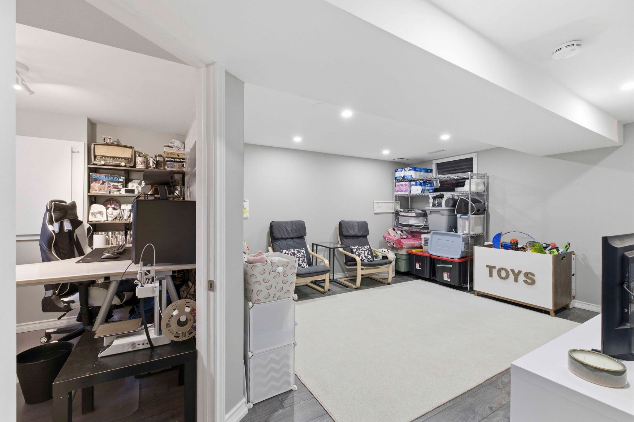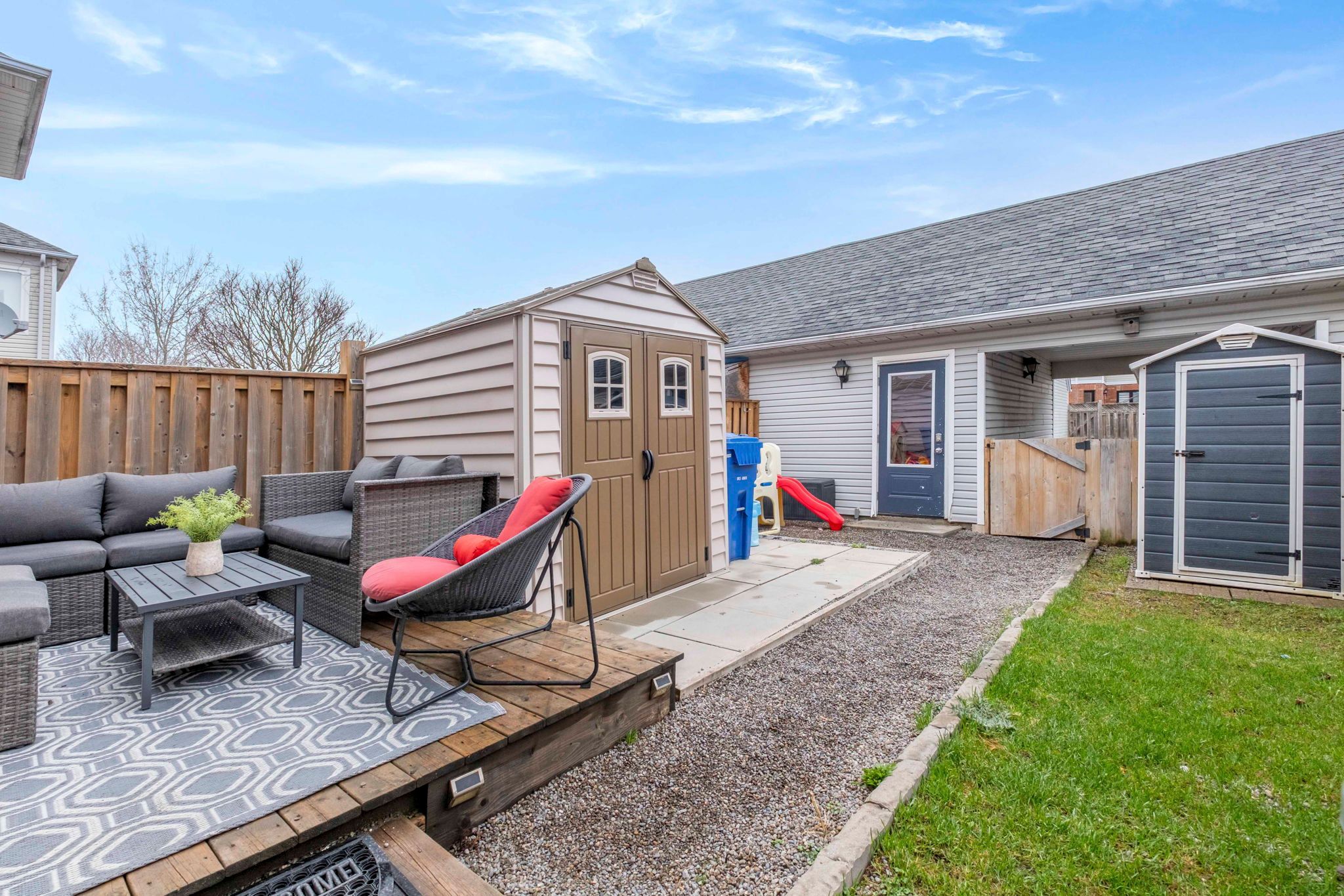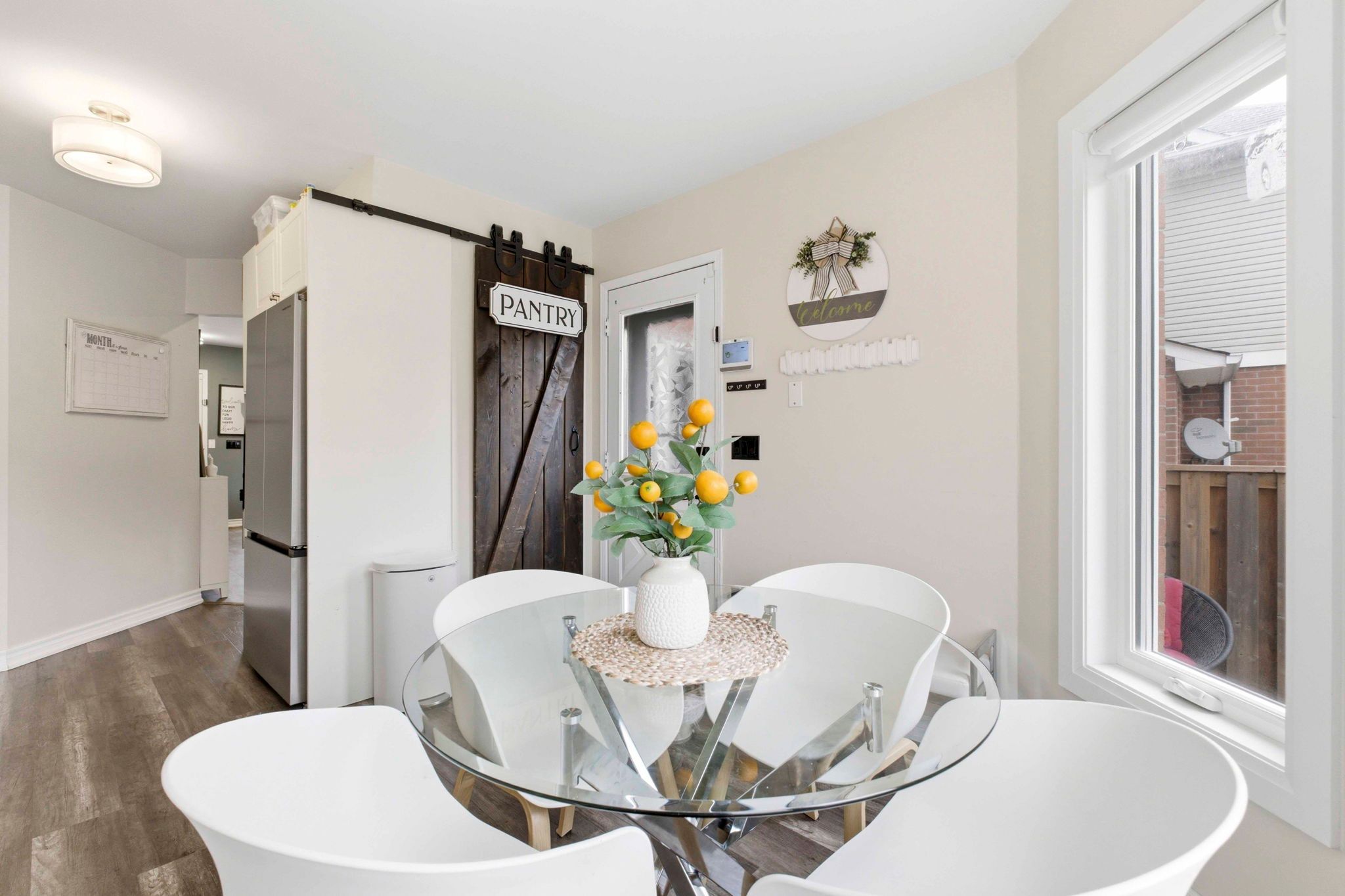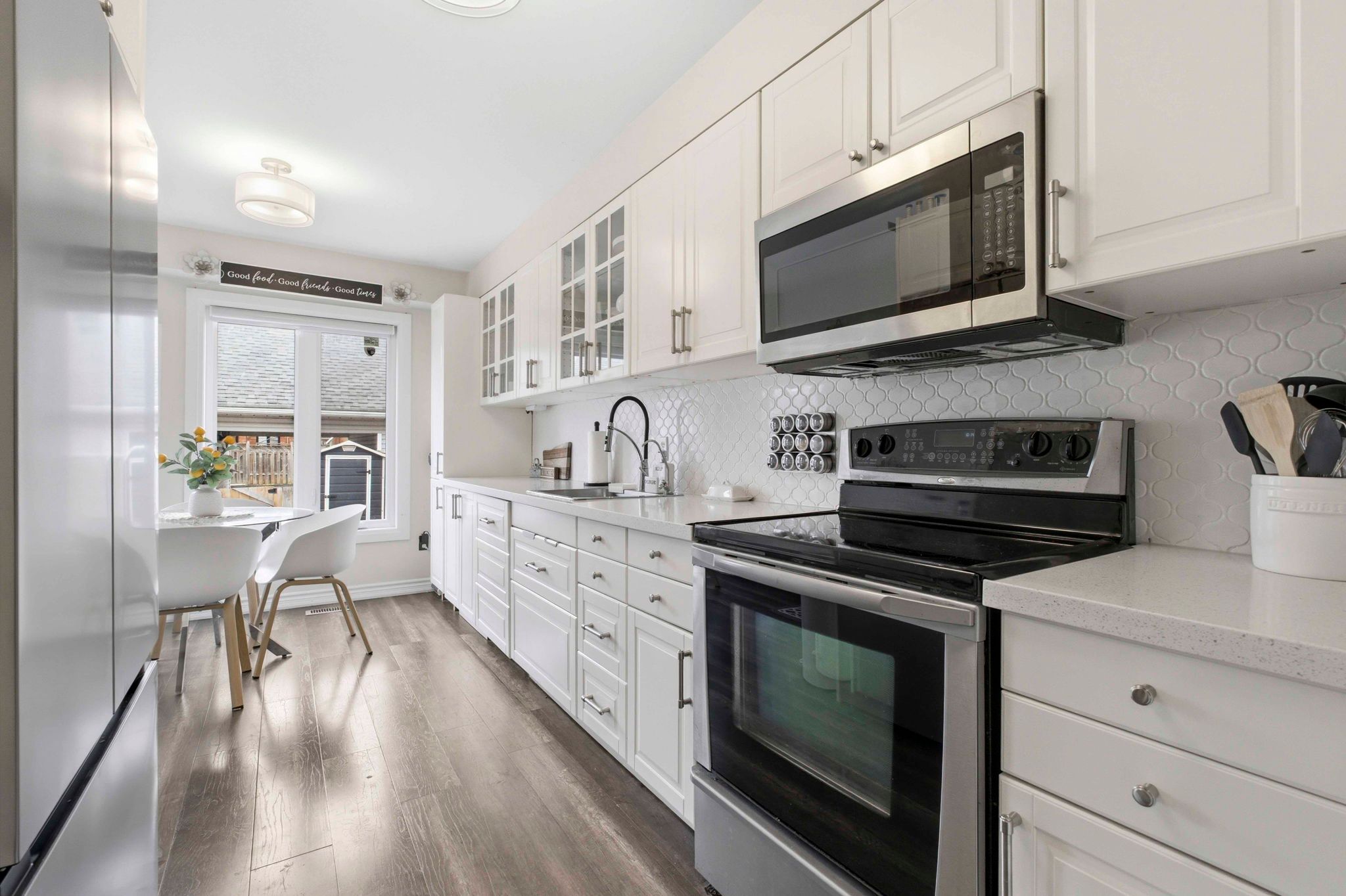 Welcome to this bright beautiful freehold townhouse with no monthly rentals, modern updates throughout located in a prime family friendly neighbourhood * this home features 3 + 1 bedrooms and 3 bathrooms * walk into a bright open concept dining and great room with a stone decor wall, smooth ceilings and potlights * your dream white kitchen with an eat-in breakfast area, new quartz counters, s/s appliances, tiled backsplash, pantry closet, ample cabinet space, and filtered water faucet. Walks out to the deck and outdoor fully fenced patio area that paves to detached garage. Garage has a loft above for storage and an extra covered parking. Two (2) outdoor garden sheds and newly installed gas line for bbq hook up * all spacious bedrooms include great sized closets and large windows * primary closet has newly installed built-in closet organizers * bathrooms upgraded with quartz countertops and all new modern mirrors * fully finished basement rec room with smooth ceilings, potlights and a bathroom * bsmt office with built-in shelves and lots of extra storage space * all potlights and smart thermostat can be programmed to google alexa. All new windows throughout ('24,'25), zebra blinds (2024), new fridge ('25), main floor new light fixtures, ducts cleaned (2024), furnace (2017), roof (2014), washer/dryer (2024), new shed ('25), newer fencing, smart home system with telus - can be taken over. Walking distance to alder street recreation centre, parks, elementary and secondary schools and only a short distance to shopping, groceries, restaurants, downtown, hospital, georgian college, hwy 9 and much more!! A must see!!