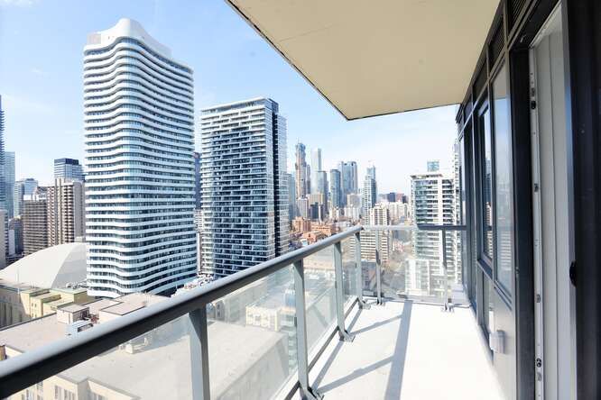 Experience modern urban living 9 feet ceiling two-bedrooms + den condo with two balconies at jac condos, located in the heart of downtown toronto. This thoughtfully designed unit features premium finishes, including quartz countertops and backsplash, italian stainless-steel appliances, ample cabinet space, en-suite laundry, and floor-to-ceiling windows that flood the space with natural light. Enjoy a carpet-free interior with generous closet space and a sleek, contemporary aesthetic throughout. Ideally located steps from toronto metropolitan university, the university of toronto, the eaton centre, yonge-dundas square, and allan gardens, this condo offers unparalleled access to public transit, top schools, shopping, dining, and entertainment. Ideal for students or professionals, the building boasts top-tier amenities in a vibrant, walkable neighbourhood. Actual floor colour may differ slightly from images. Tenants are responsible for transferring utilities into their name. Don't miss the opportunity to call this stunning downtown condo your new dream place to live.
