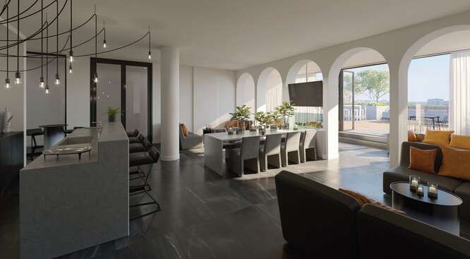 • Premium finishes like quartz countertops and stainless-steel appliances.