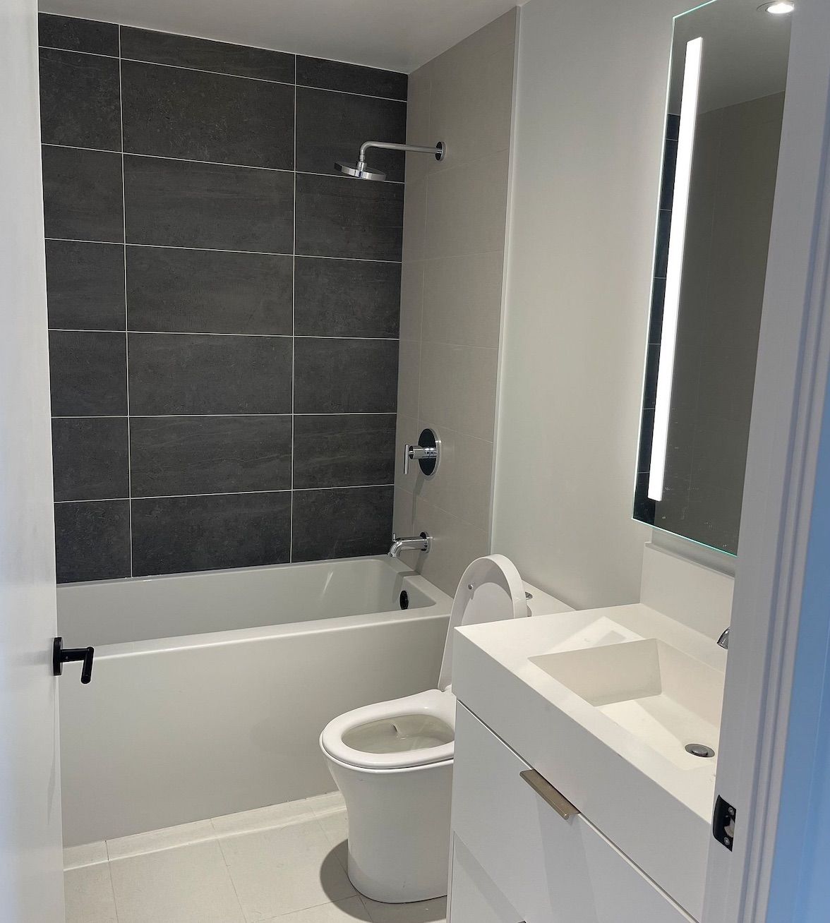 • Modern kitchen with quartz countertops and built-in appliances for convenience.