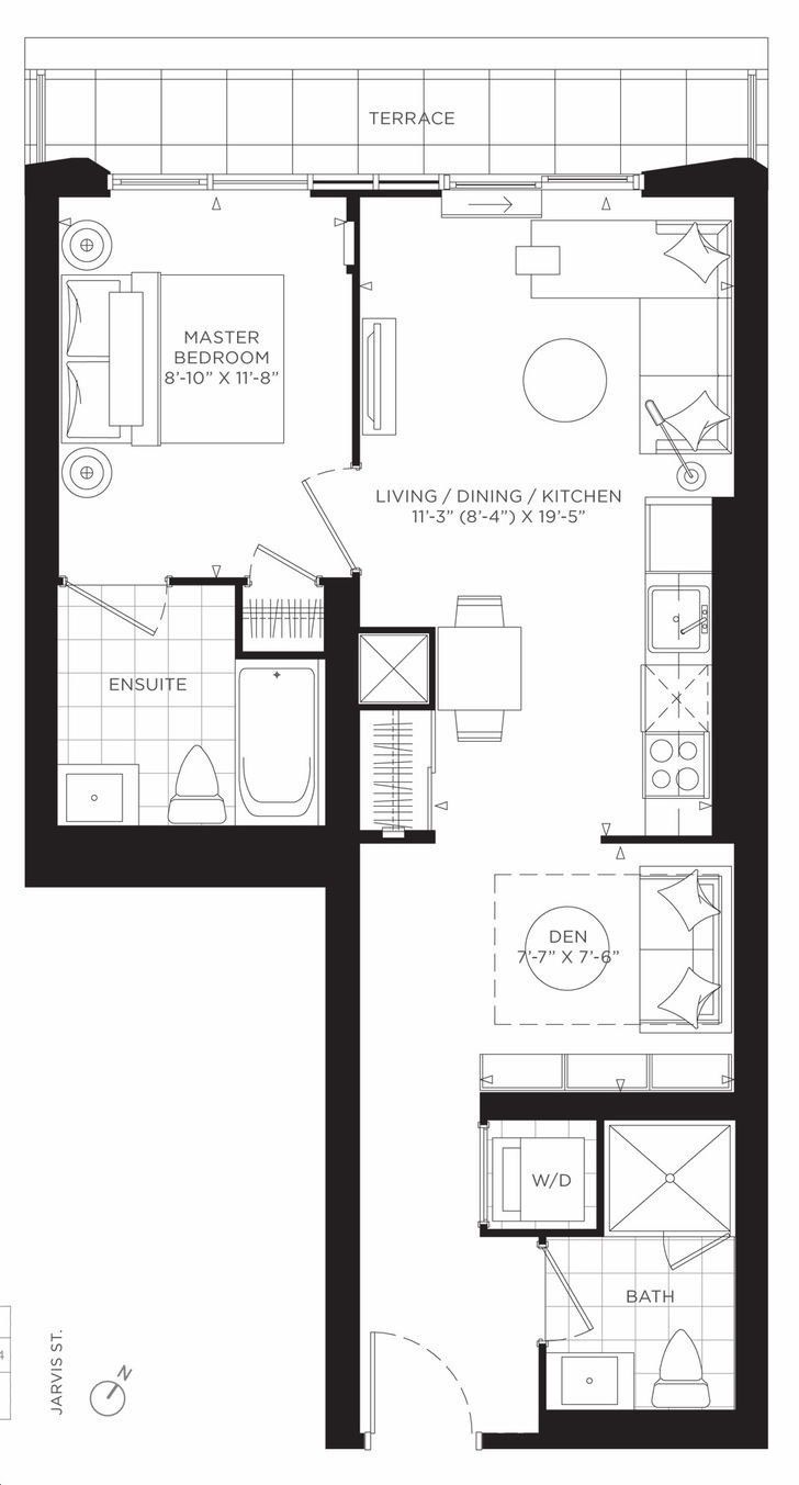 Largest 1+den in the building! Rare opportunity! 678 sqft + huge 100 sqft balcony with unobstructed views. Bright, open-concept layout with zero wasted space-perfect for professionals or small families. Floor-to-ceiling windows flood the unit with natural light. Functional den ideal for home office or guest space. Modern galley kitchen with built-in appliances & ample storage. Sleek laminate flooring throughout. Enjoy a massive private balcony-perfect for relaxing or entertaining. Luxury, resort-style amenities: concierge, fully equipped gym, yoga studio, pet spa, media & music rooms, bbq terrace, party & meeting rooms, and more. Unbeatable downtown location! Steps to yonge/college subway, tmu, u of t, george brown, eaton centre, restaurants, shops & entertainment. Heat included. Students & newcomers welcome. Won't last!