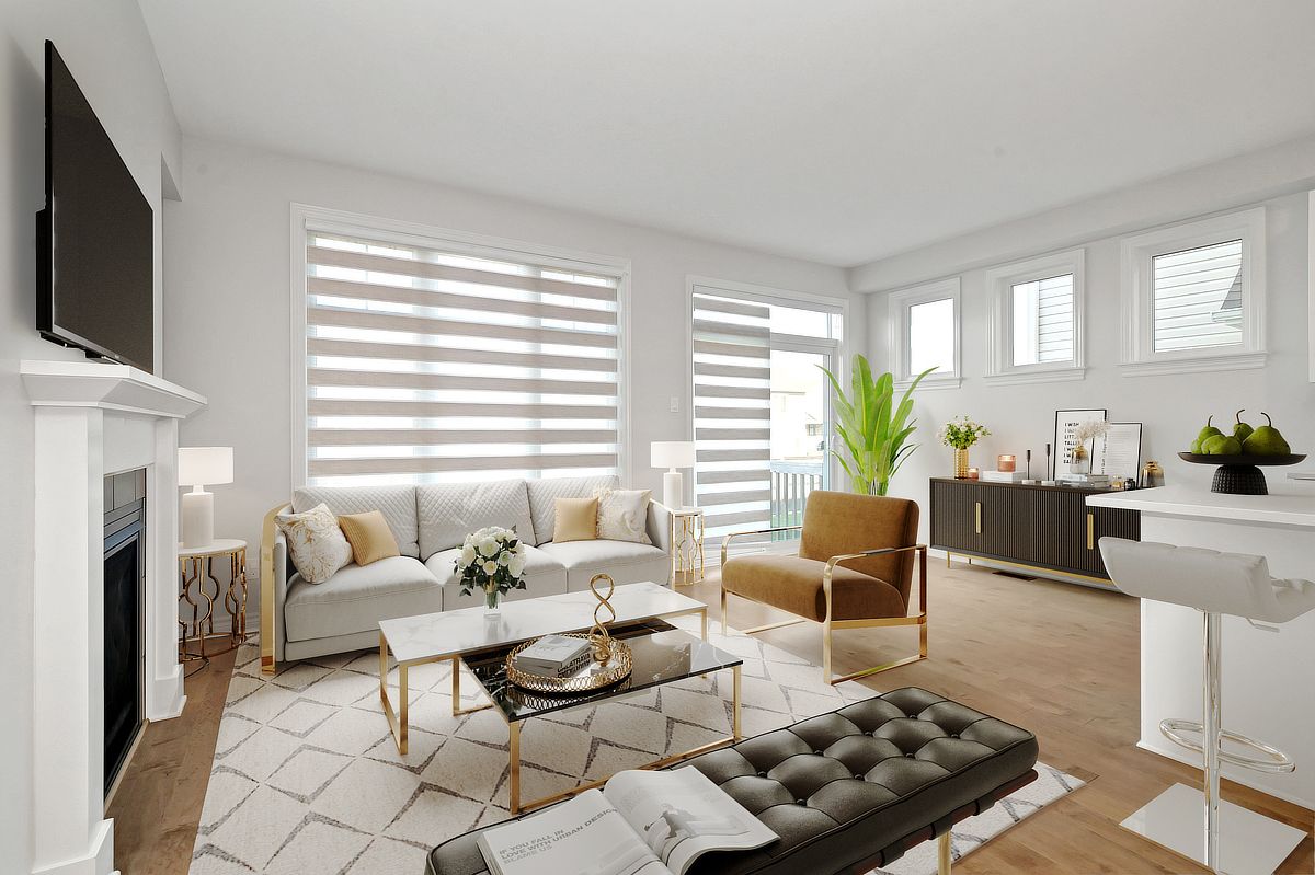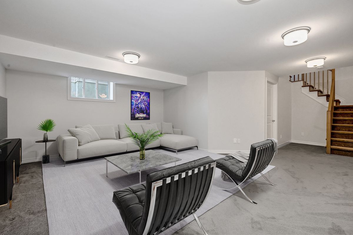 • Open-concept main floor with high ceilings and hardwood flooring.