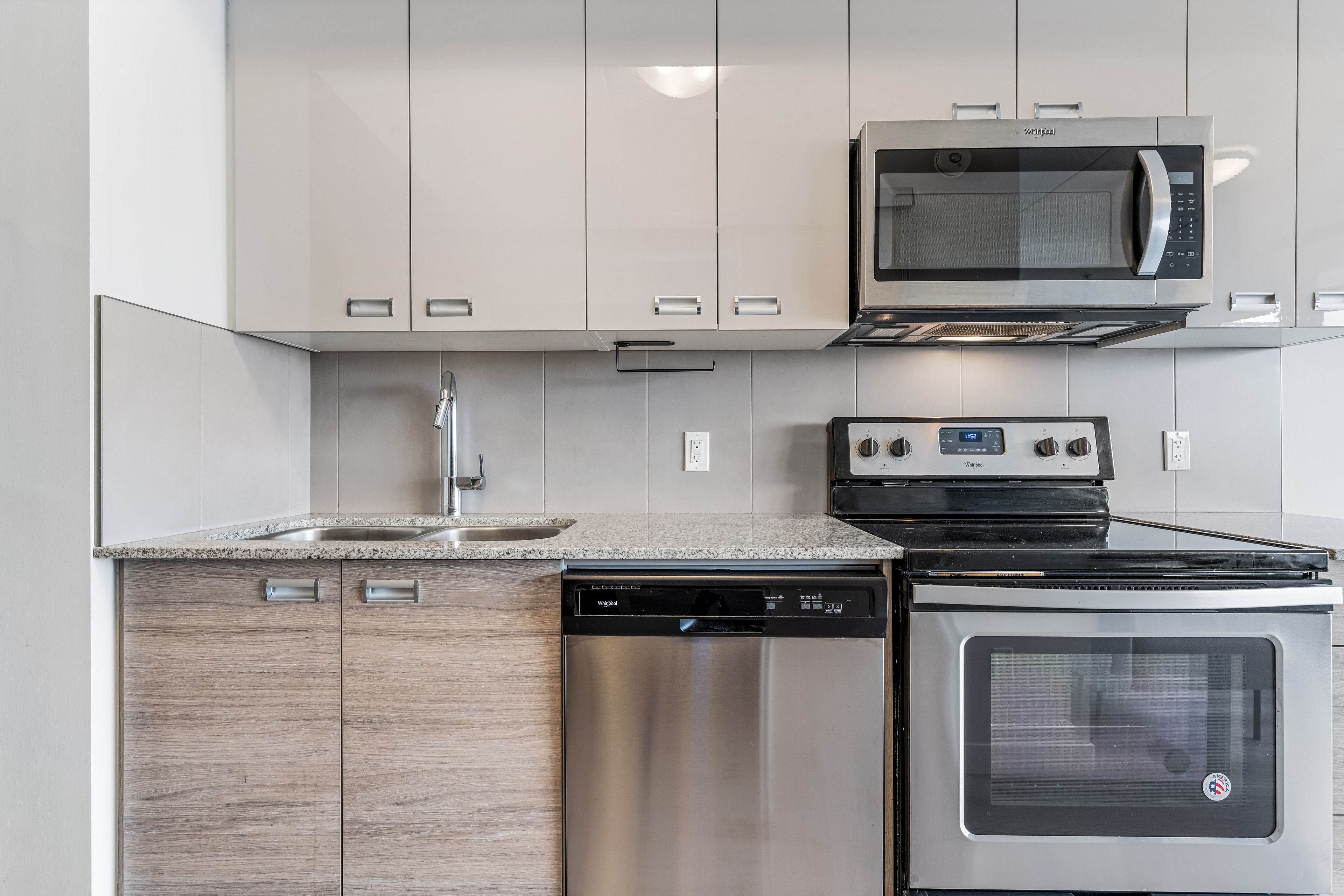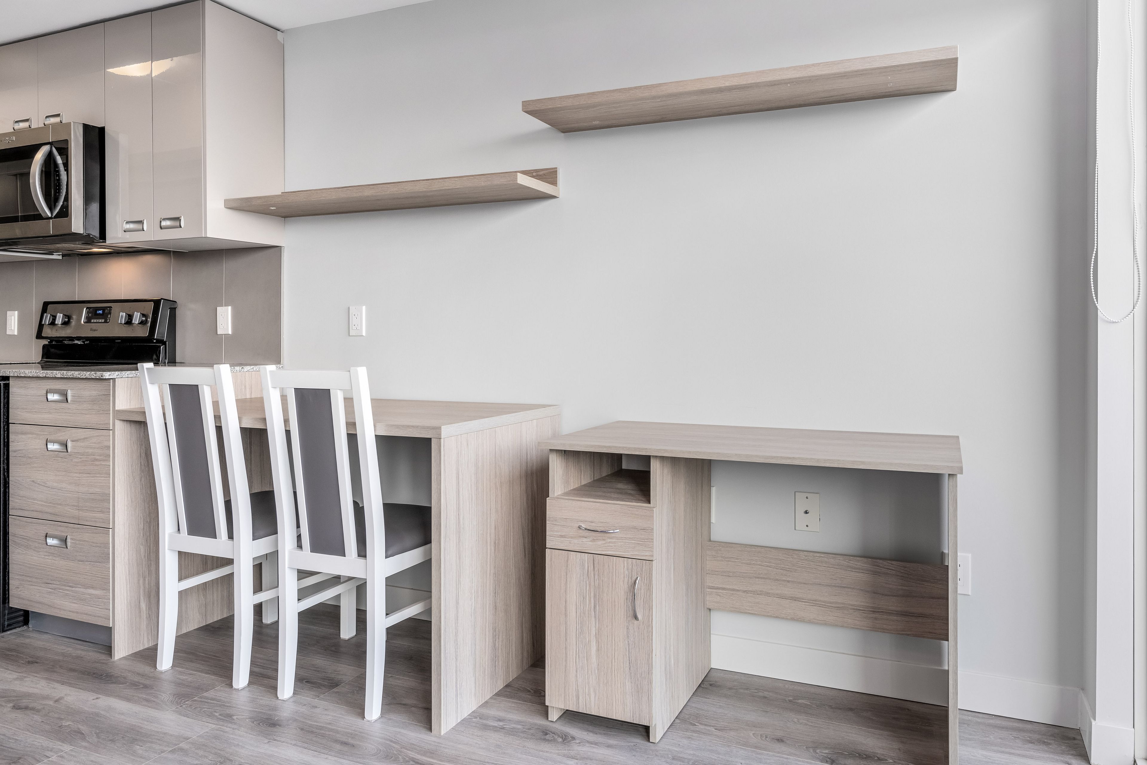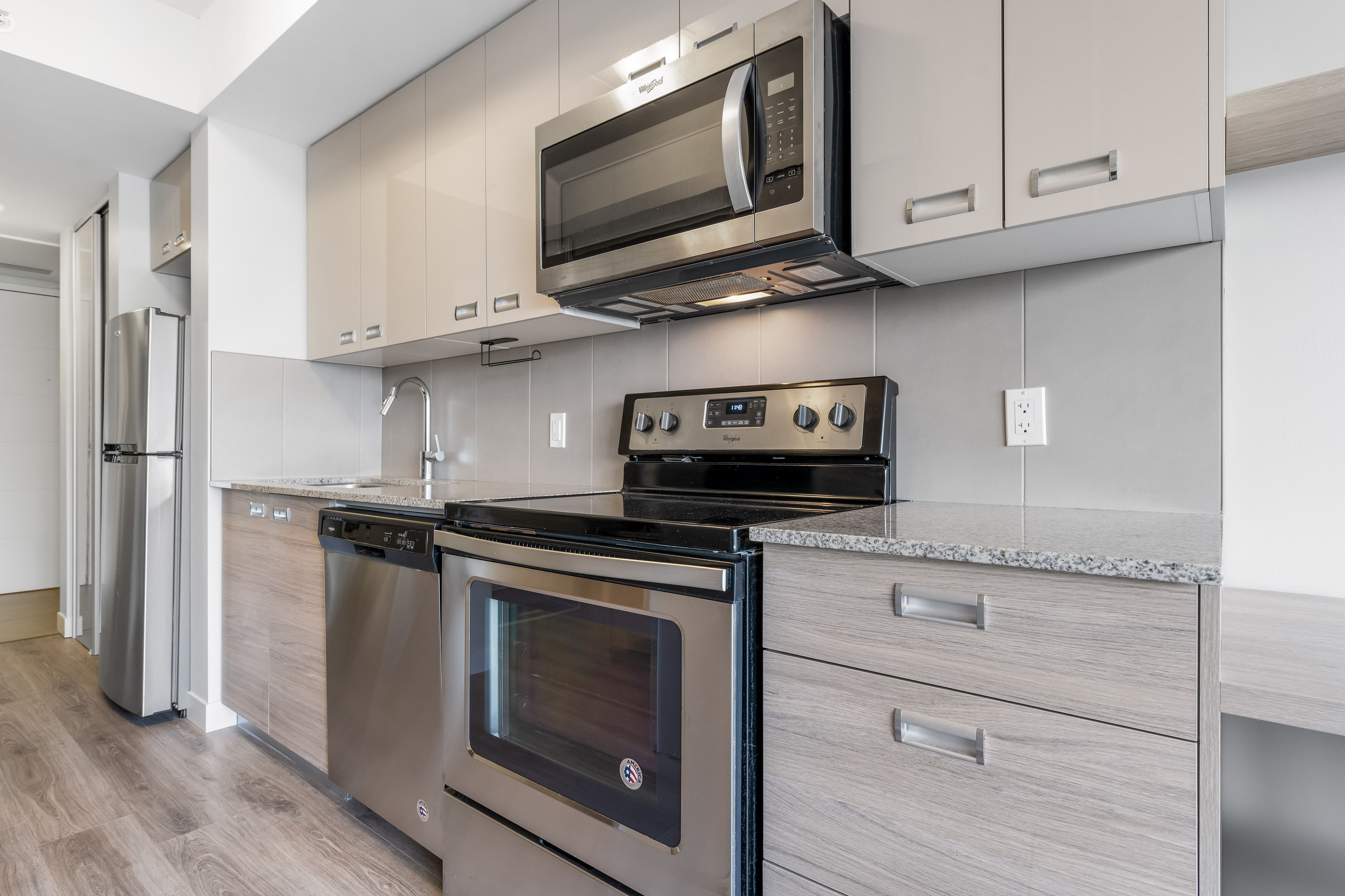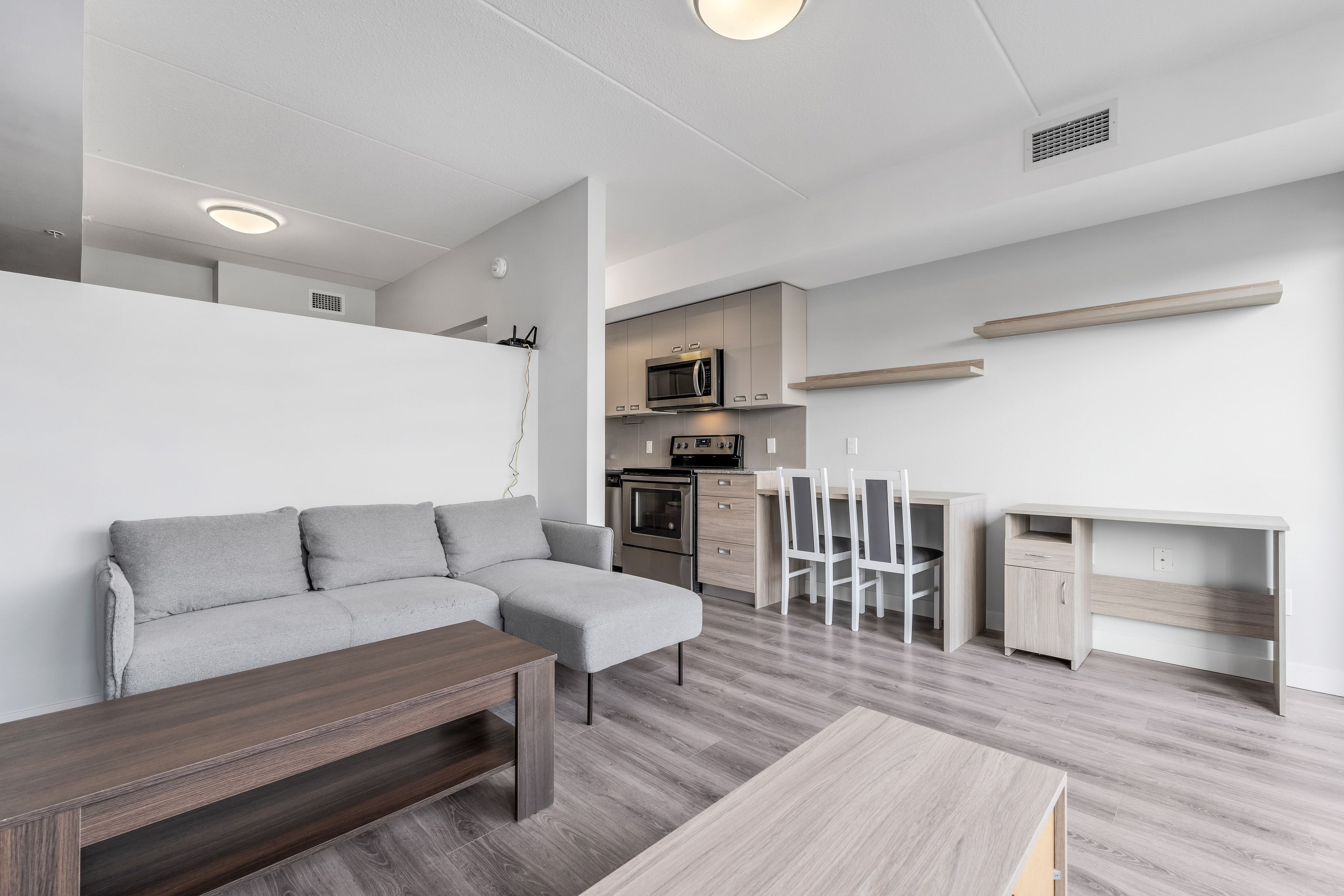 • Modern one-bedroom condo with stylish finishes and laminate flooring.