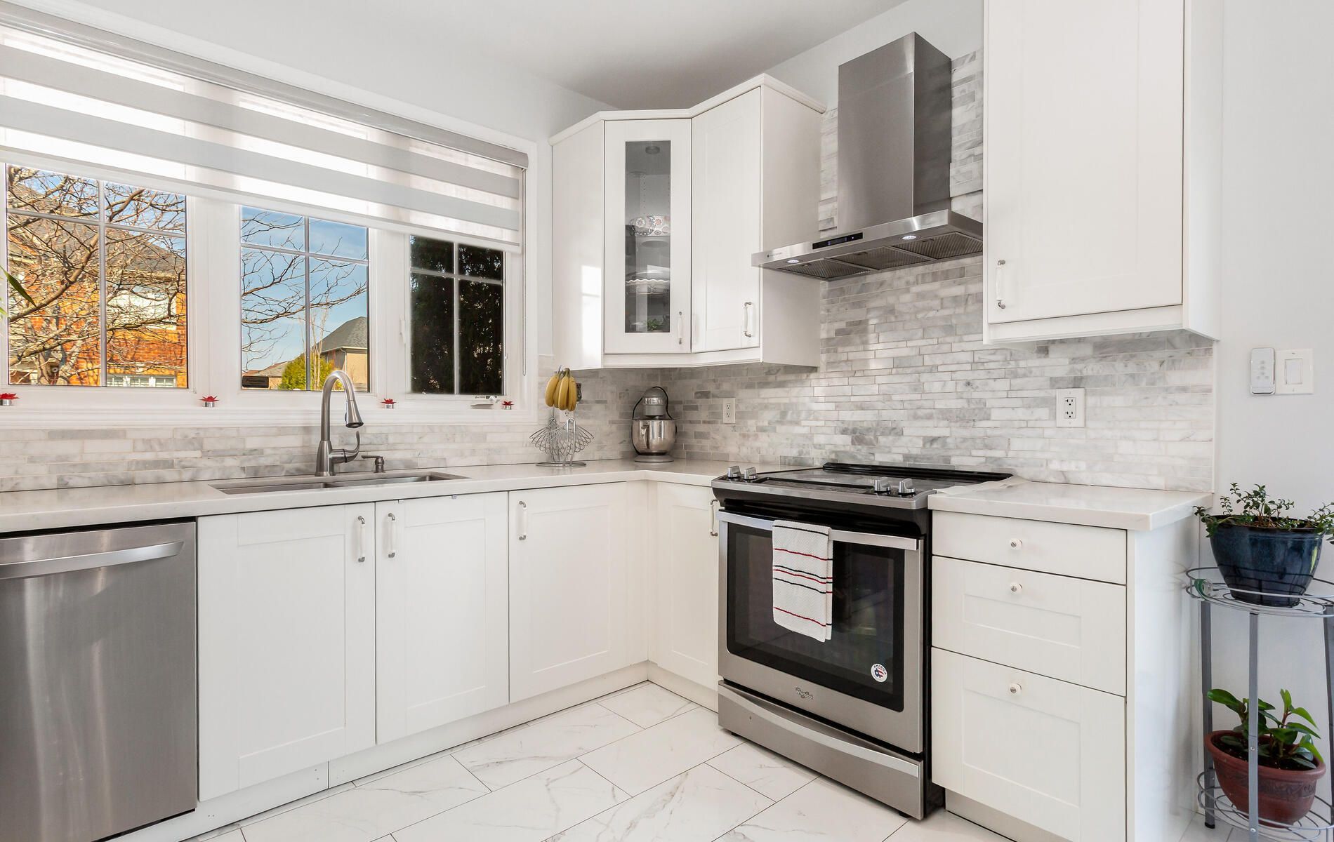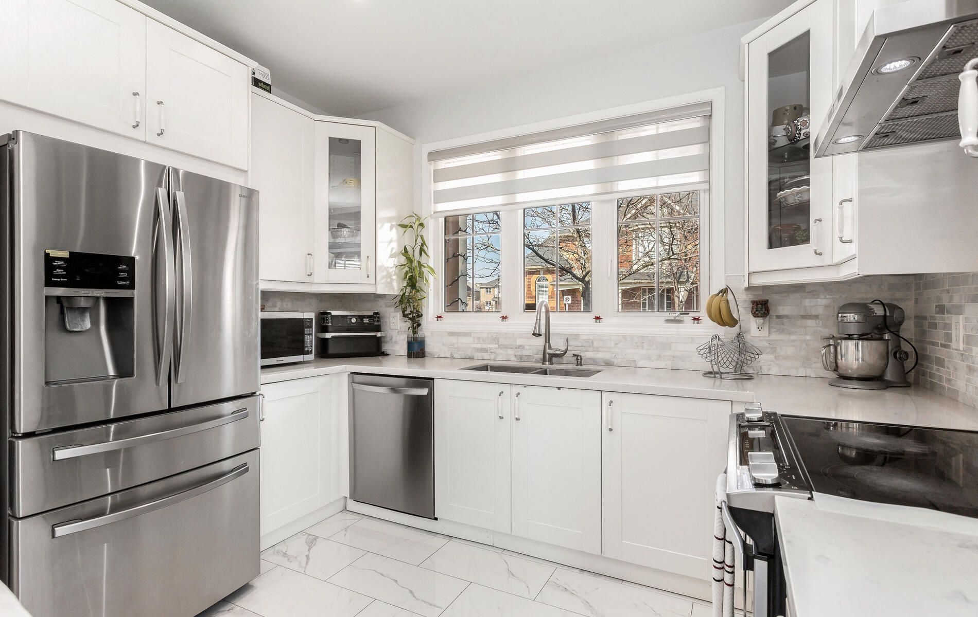 • Upgraded kitchen with granite countertops and modern finishes.