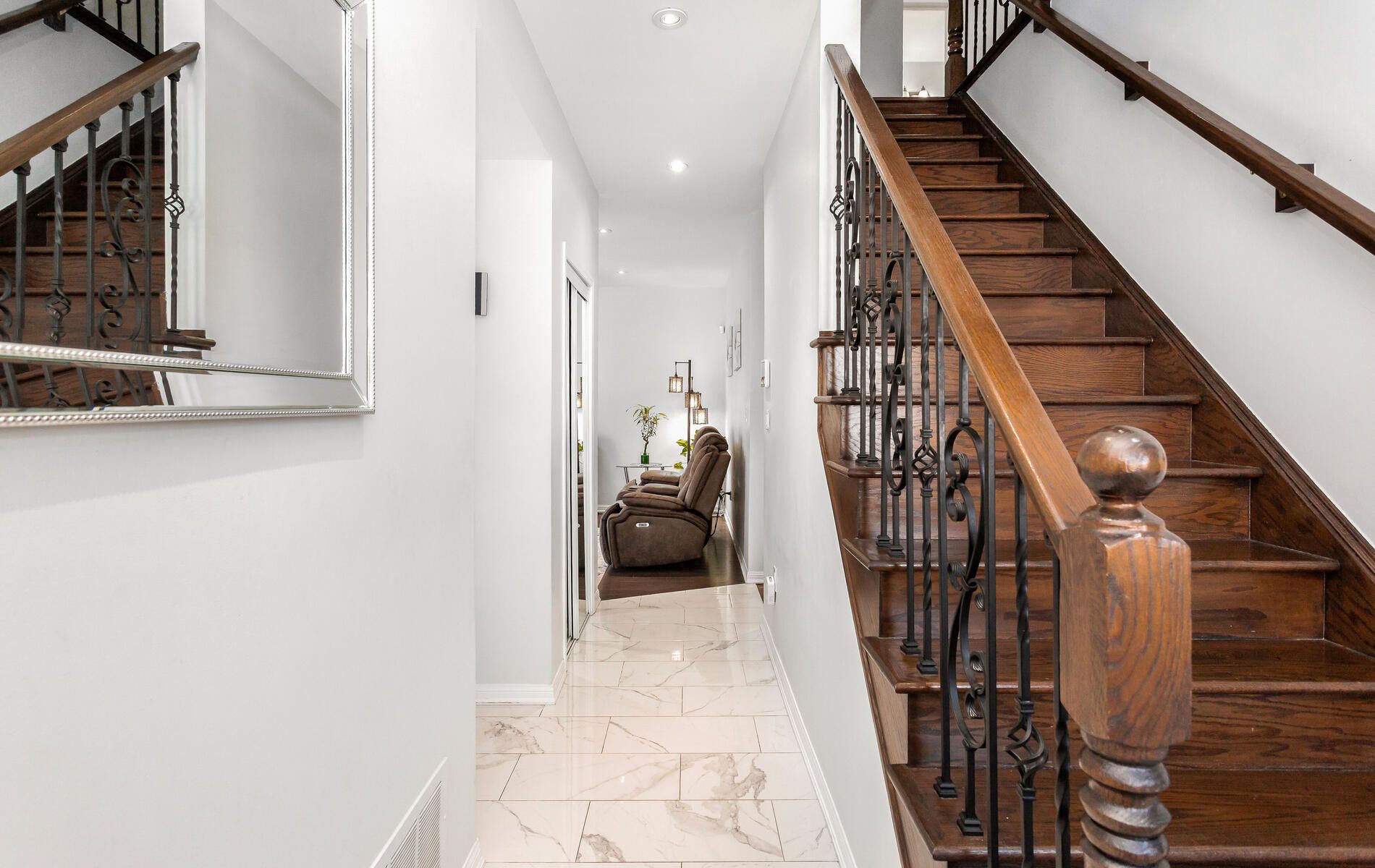Welcome to the beautiful corner lovely home, over 2300 aprx. Sq ft of living space, sun-filled bright natural light. Absolutely amazing highly sought-after in the prestigious family-oriented community, 3+1 spacious bedrooms, 3. 5 washrooms, 9' ceilings, separate living & family rooms, ample natural lights, laundry upstairs. Tons of upgrades like gourmet kitchen w/granite backsplash, granite countertops and granite breakfast/dining top, porcelain tiles, rich hardwood flooring, iron pickets, pot lights on main and basement, upgraded 5 pc master bedroom washroom, new roof 2022, new furnace 2025, new a/c 2023. Close to schools, parks, groceries, hospital, community center, transit etc. Finished basement with 1 bedroom & living room, w/large basement windows & full 3 pc bathroom & serving kitchen counter. Perfect for entertaining guests, home office, multi-generational living or guest bedroom. Up to 5 cars space, garage entrance. Don't miss this gem - see and fall into this lovely home! Nothing to upgrade just ready to move-in and enjoy your dream home.